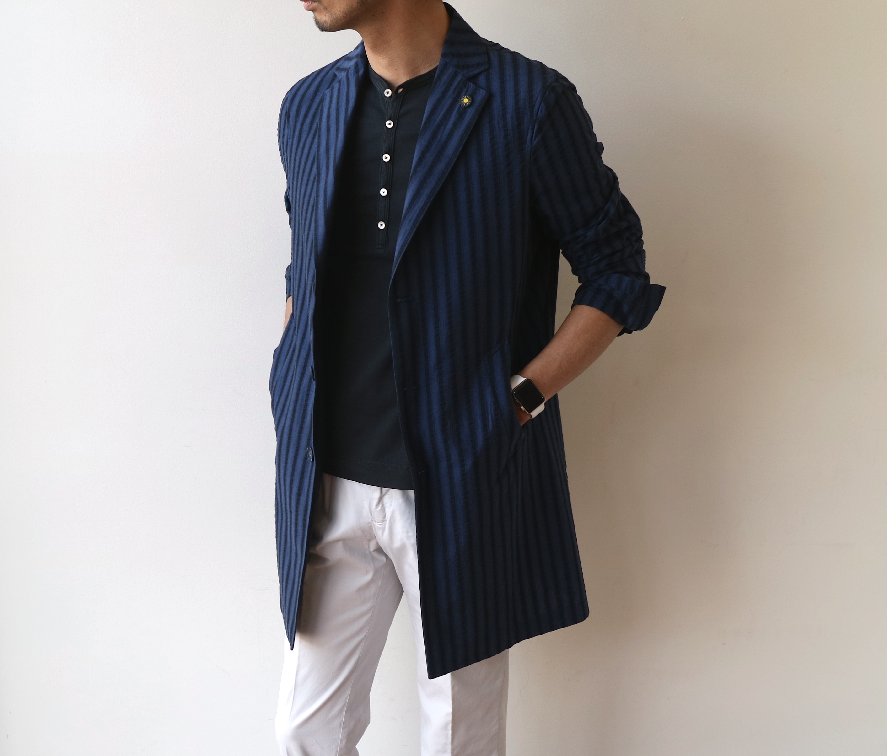 人気の衰えないチルコロのヘンリーネック。毎年色違いで買われる方も多いです。エッセンシャル ワードローブなんてタグには書いてありますが、その秘密はどこにあるのでしょう。エレガントな襟元のデザインが、ジャケットやジレなどに合わせやすいから...どうやらそんな理由がありそうですが、少し時間もあります。オマケで色々と試してみました。