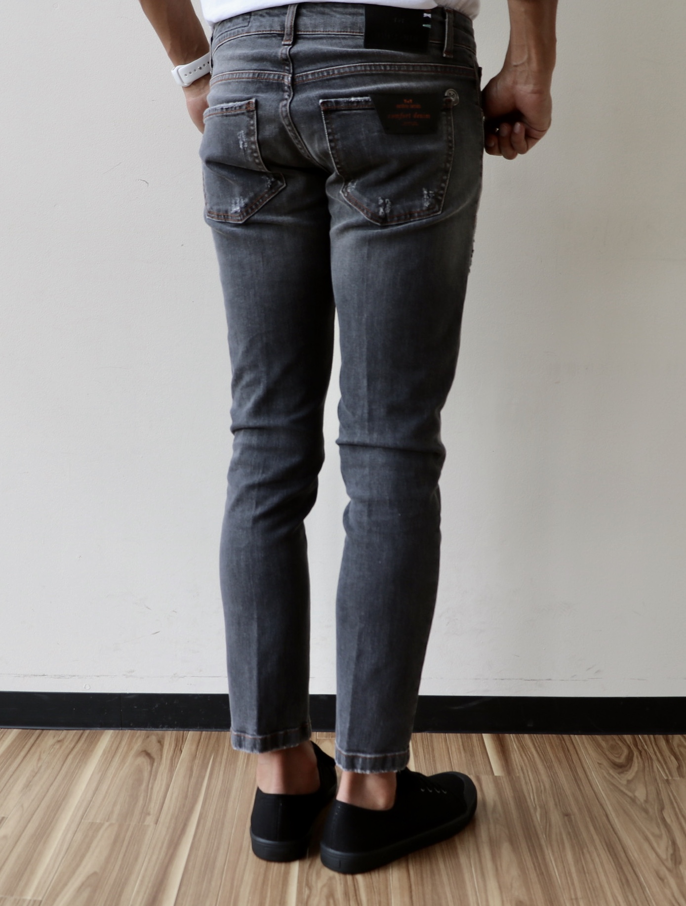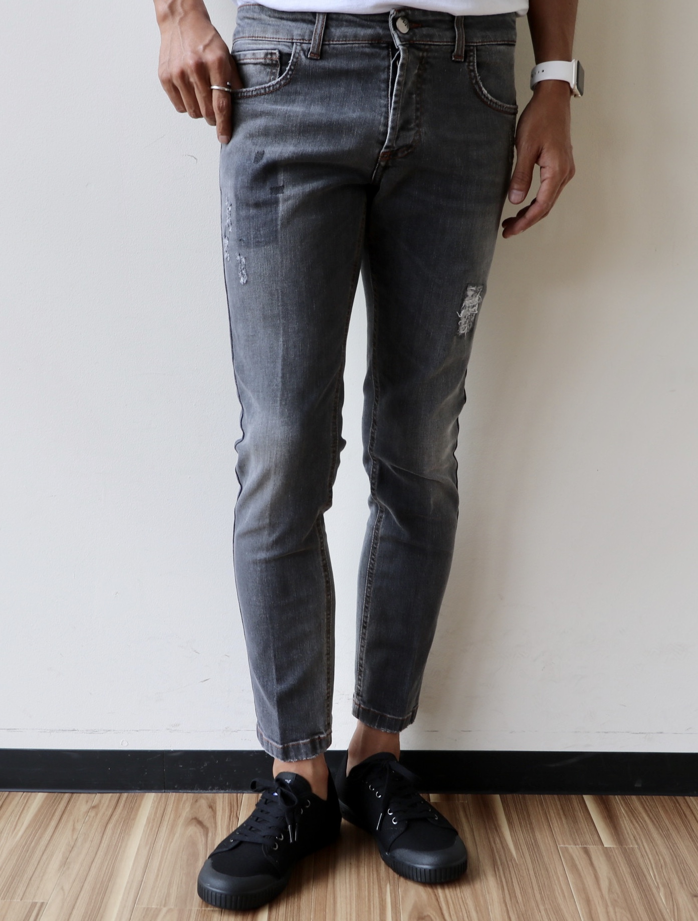MODEL:ダメージ加工 ウォッシュドブラックデニム