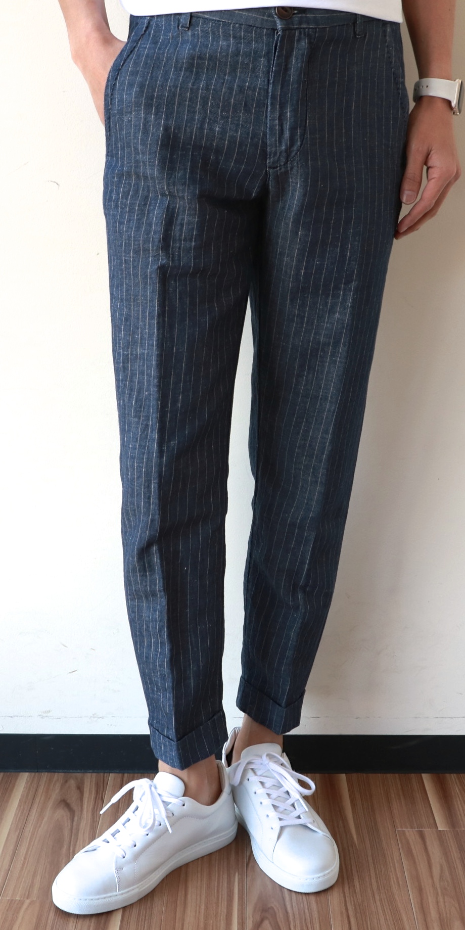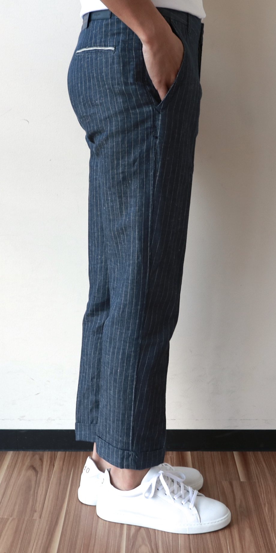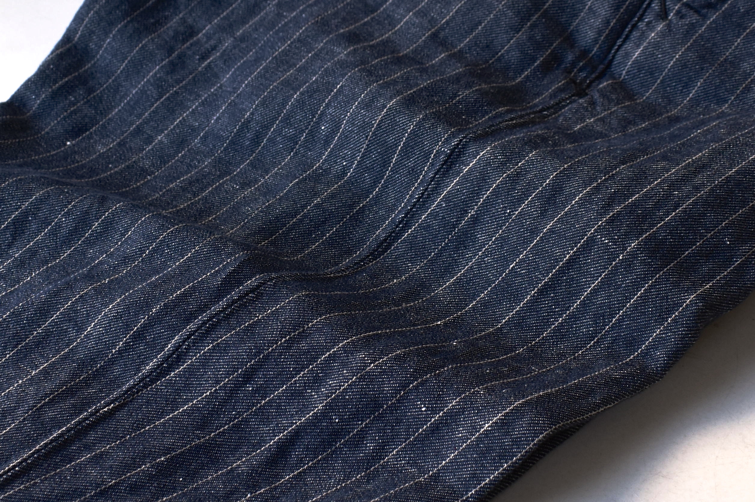 MODEL:「Breeches 156」リネンコットン インディゴストライプ柄デニムスラックス