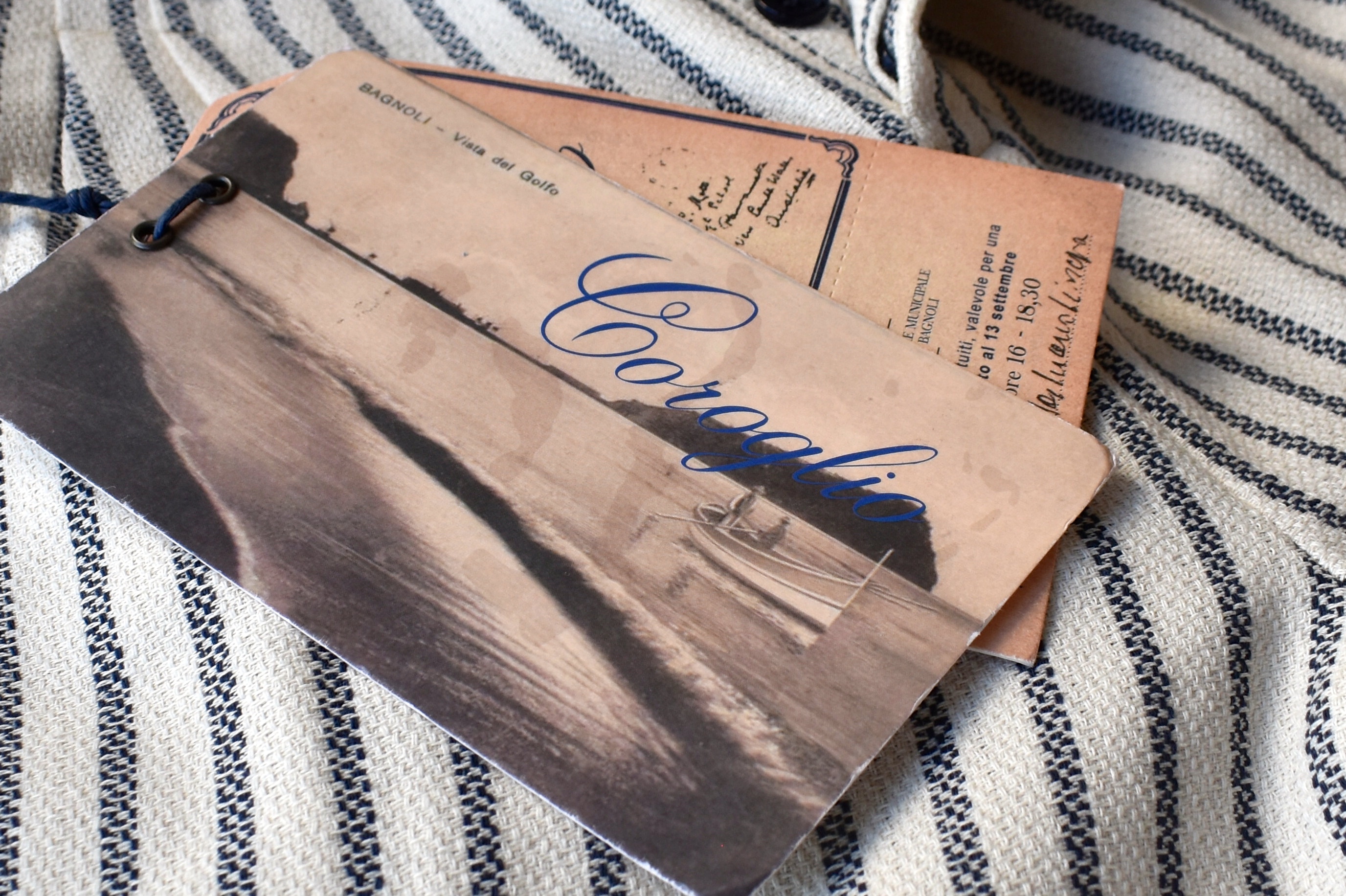 どこのブランドのものか、お話しなくてはいけませんね。【entre amis/アントレ アミ】です。葉書を模したタグには、「Coroglio/コロリア」とあります。元々は、ショーツやスイムウェアなどを提案するシリーズでしたが、昨年春夏より力の抜けたトートルウェアを提案するように。昨年春夏は中々の好評でしたので、今季もセレクトを継続しました。特に春夏の軽快な着こなしに、よくマッチするシリーズです。