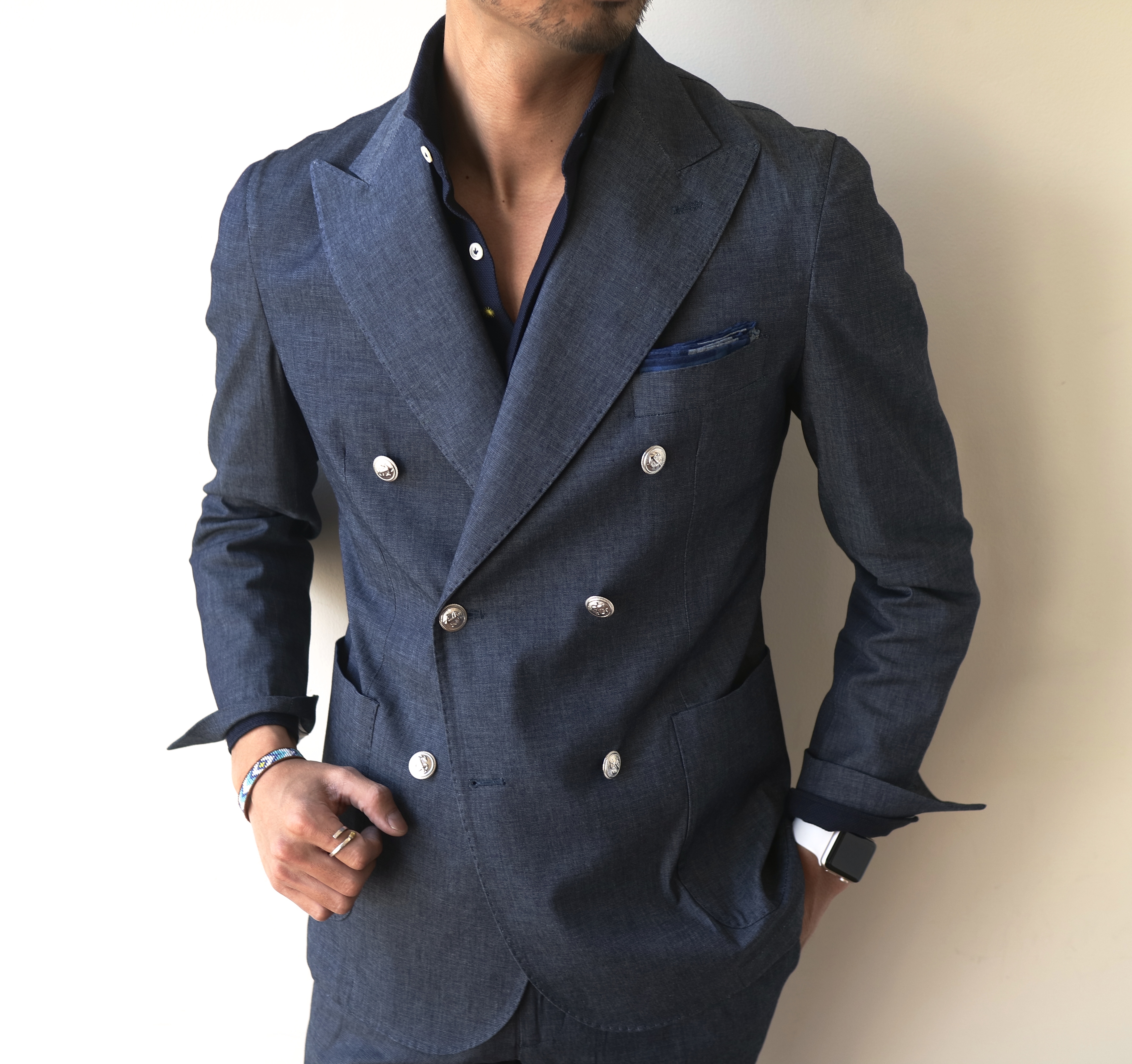 MODEL:「Coroglio」シャンブレー ダブルブレスト プレイジャケット