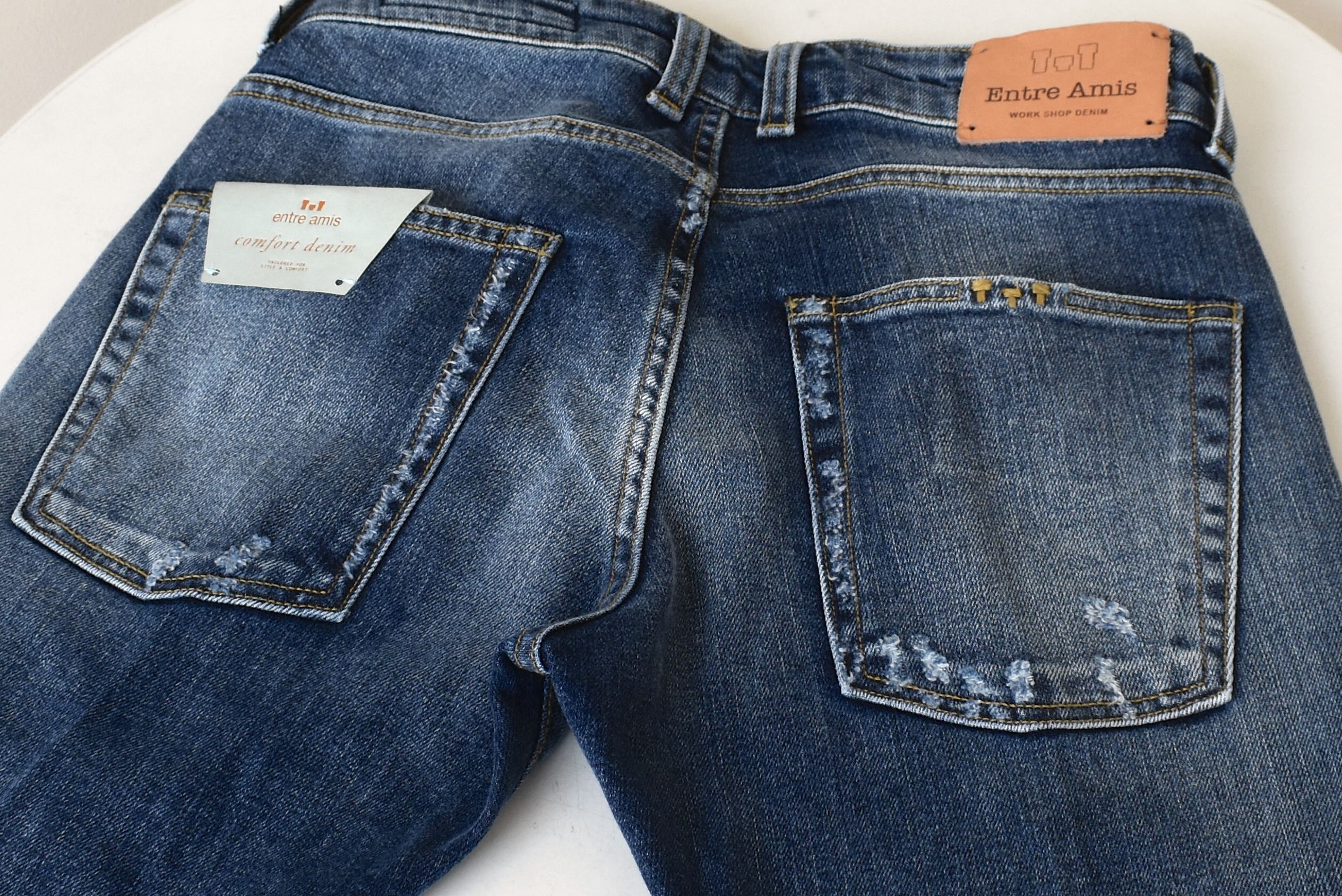 今年は、どのアイテムから秋冬物を買い始めていくか...想像中の方も多いことでしょう。マガジーノ的には、軽めのものから入るなら、Giannettoのシャツ類、もしくはCIRCOLO 1901の長袖カットソー類。アウターから入るなら、EMMETIのレザー。L.B.M. 1911の無地ジャケット...と、ご紹介を重ねてきました。下半身はBRIGLIA 1949のパンツを2型ご案内しましたが、そう言えばデニムがまだでしたね。今日は、【entre amis/アントレ アミ】のデニムをお見せすることにいたしましょう。