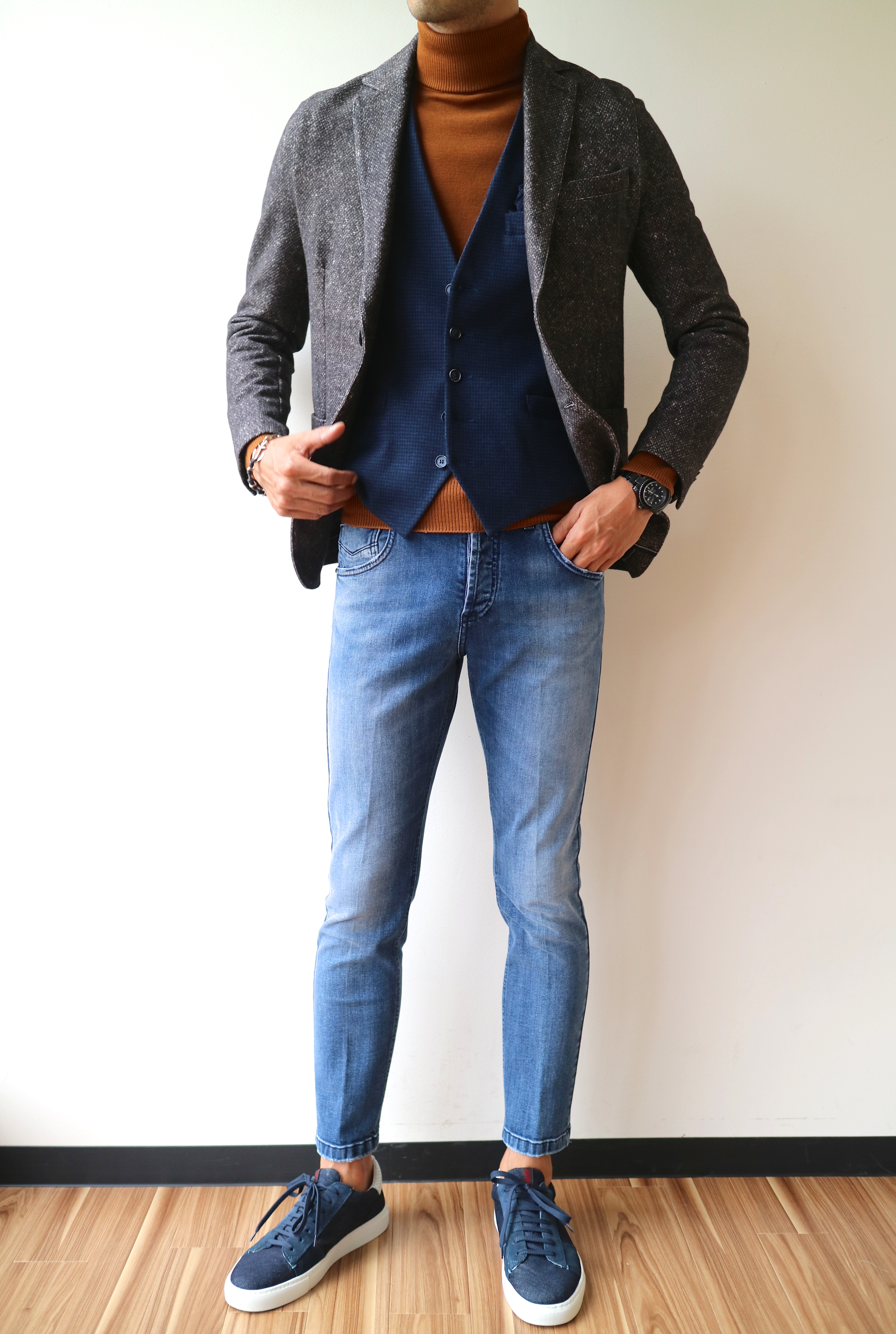 コーディネートで合わせたCIRCOLO 1901のジャケットとLetroyesのタートルネックは、近日ご紹介予定ですので、是非ご期待下さい。パンツはentre amisのデニム、本日併せてご紹介です。靴はWally Walkerのデニム地スニーカーになります。