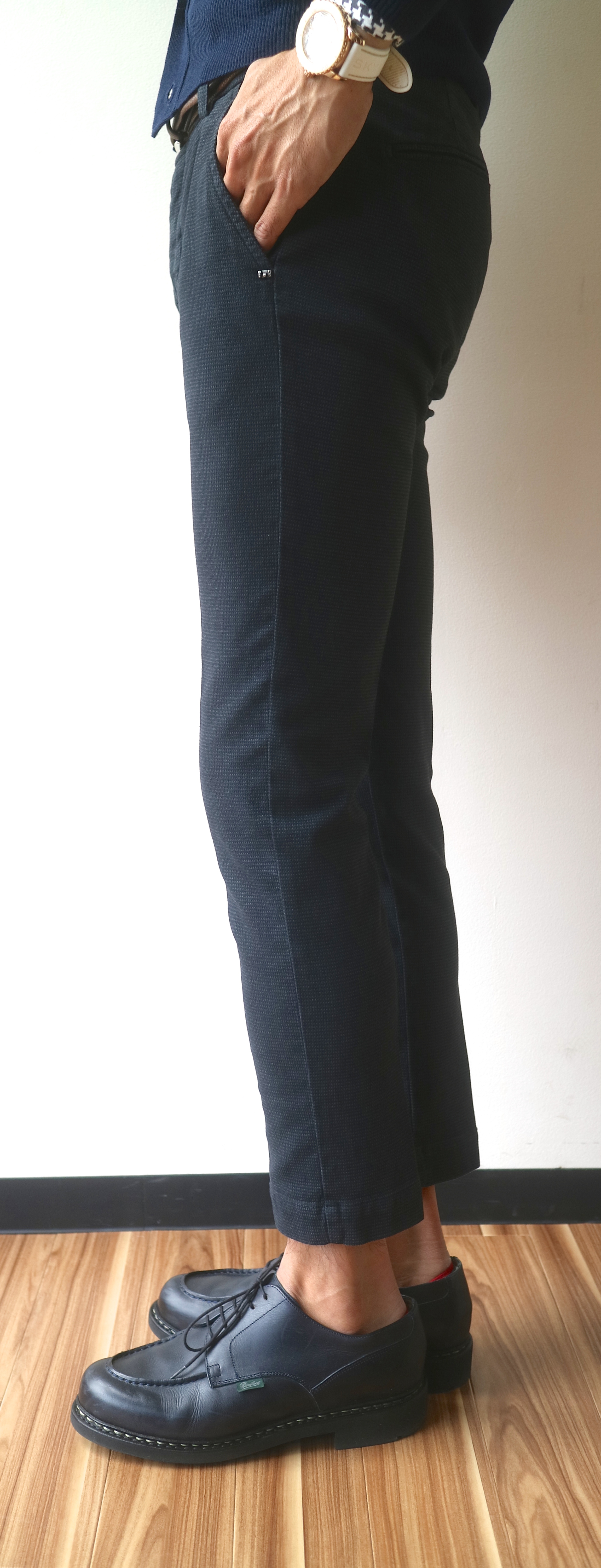 ただ、そのようなアメリカ的な生地を使いながらも、シルエットと作りはイタリア。身体のラインを最大限美しく魅せるタイトフィッティングに、きめ細やかなハンドメイド感。いつものイタリア的な要素をベースに、ちょっとだけアメリカらしさをブレンドした、面白い1本なのです。