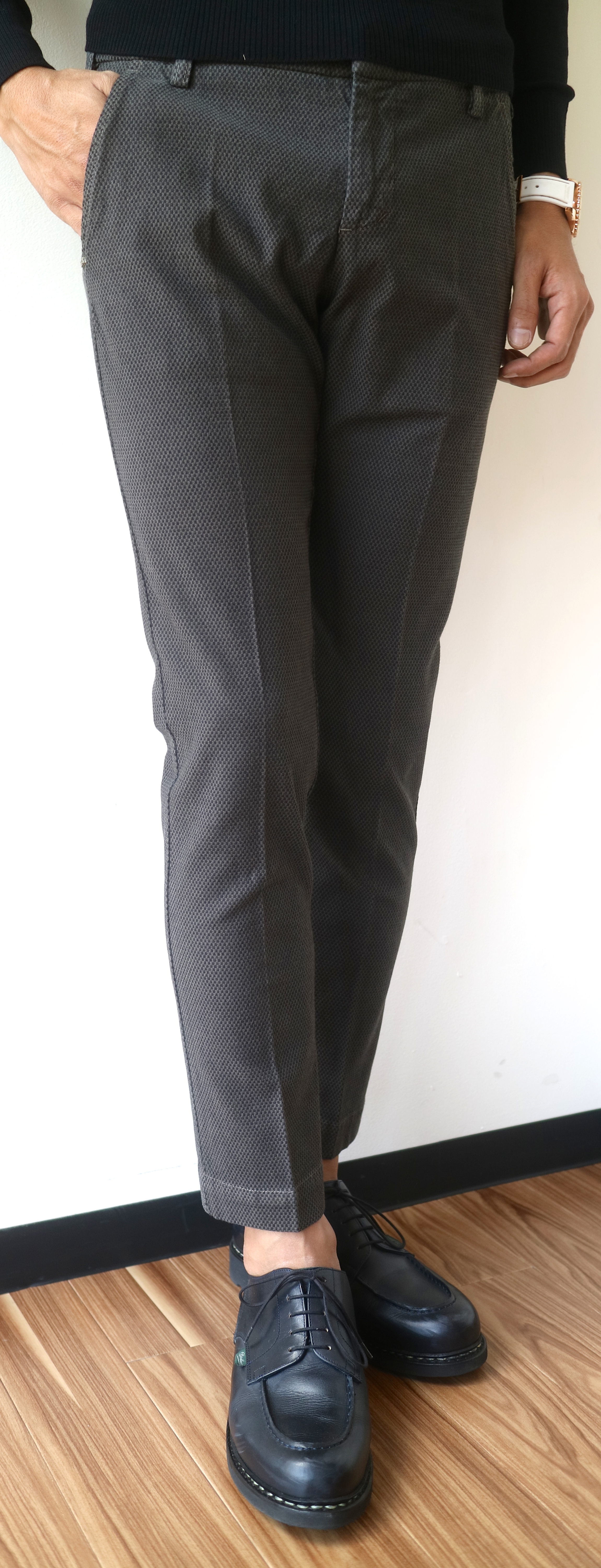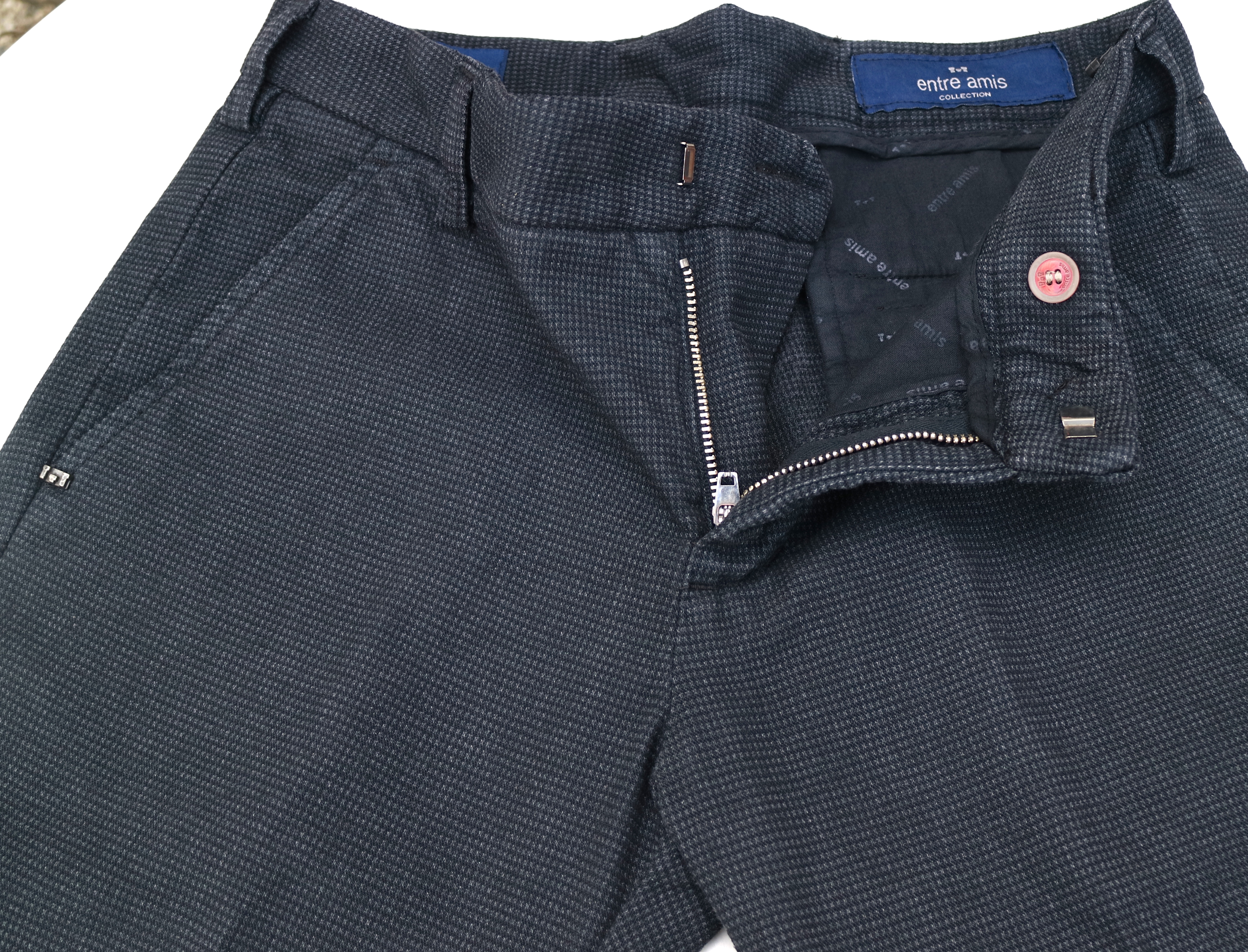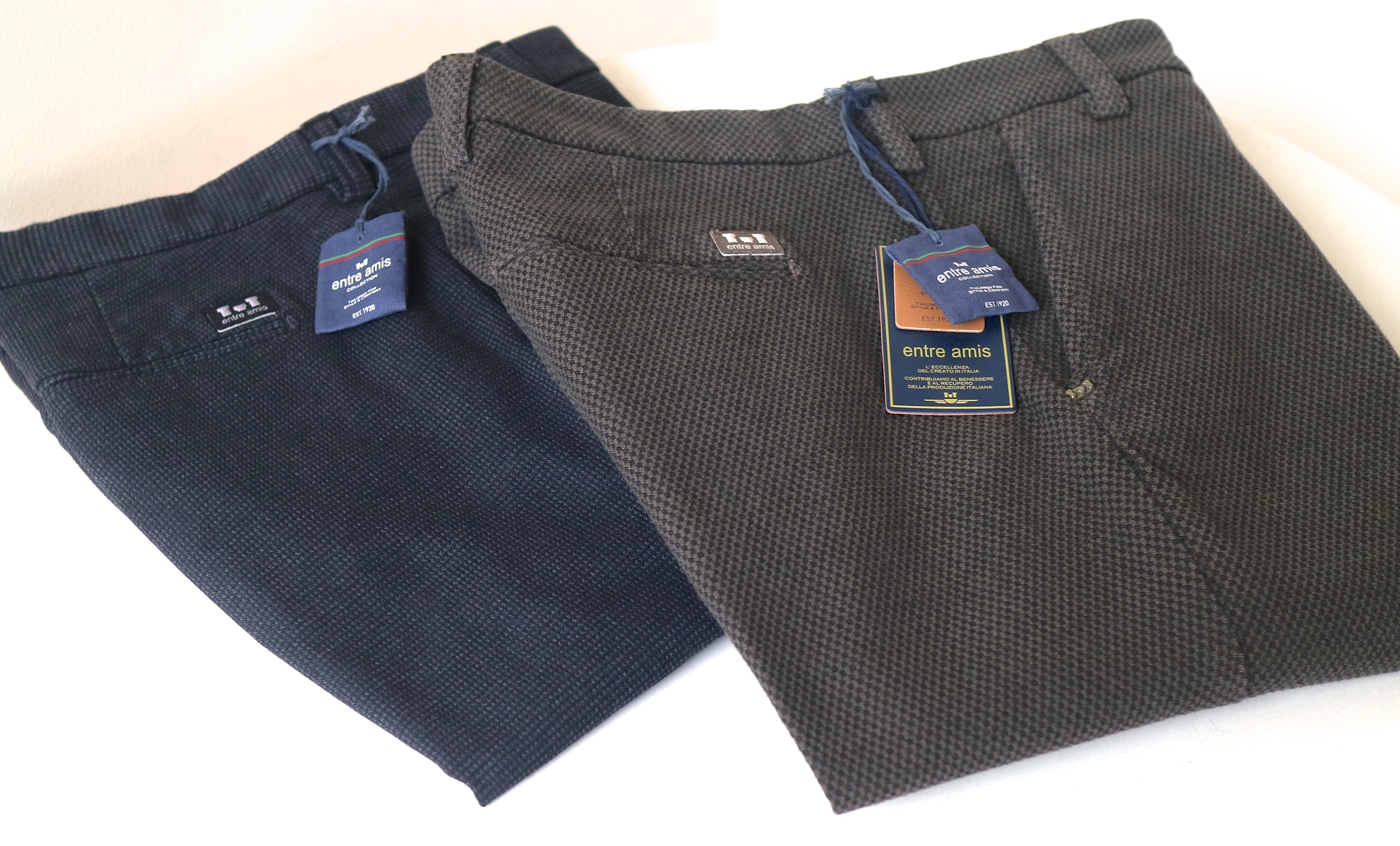 さて、本題です。前回のご案内が9月1日、その前は8月8日と、暫し間が空きました。今日は、【entre amis/アントレ アミ】。全ての細身パンツ好きの方、お待たせしました。ベーシックな無地をGETしたら、次に狙いたいのは、ちょっとだけ・巧みに変化を付けたジャカード織りのパンツ...なんてのが本日のお題です。どうぞ目を凝らしてご覧ください。