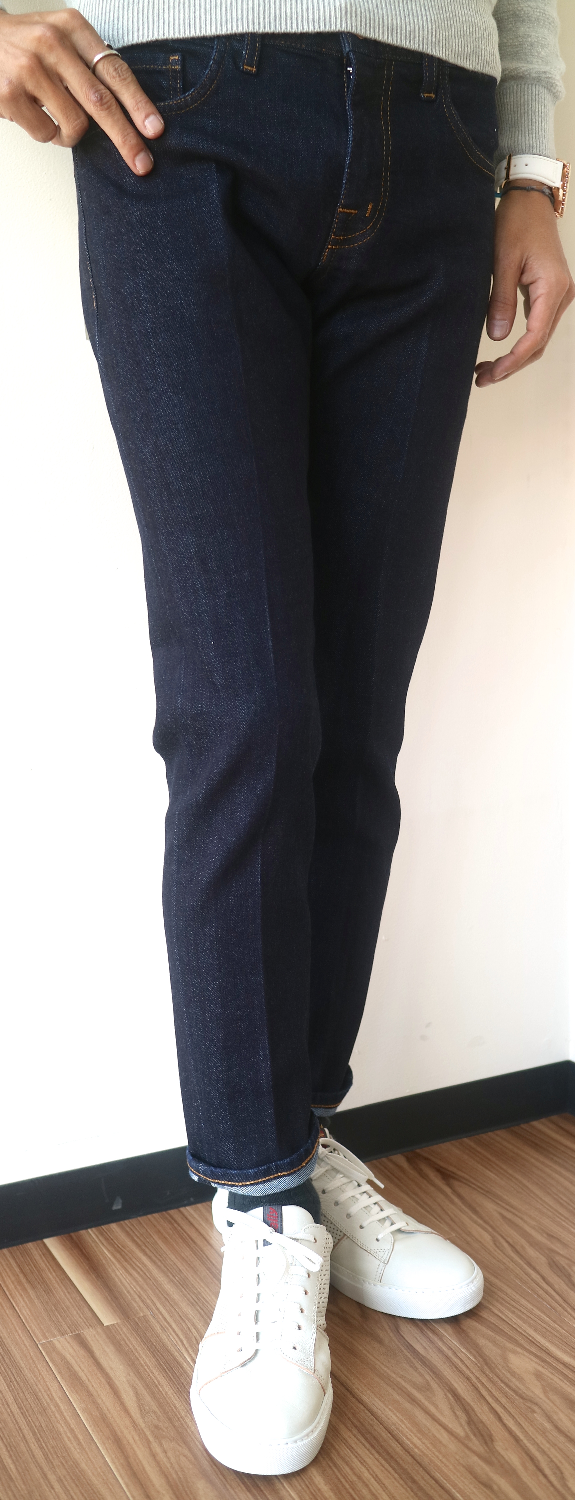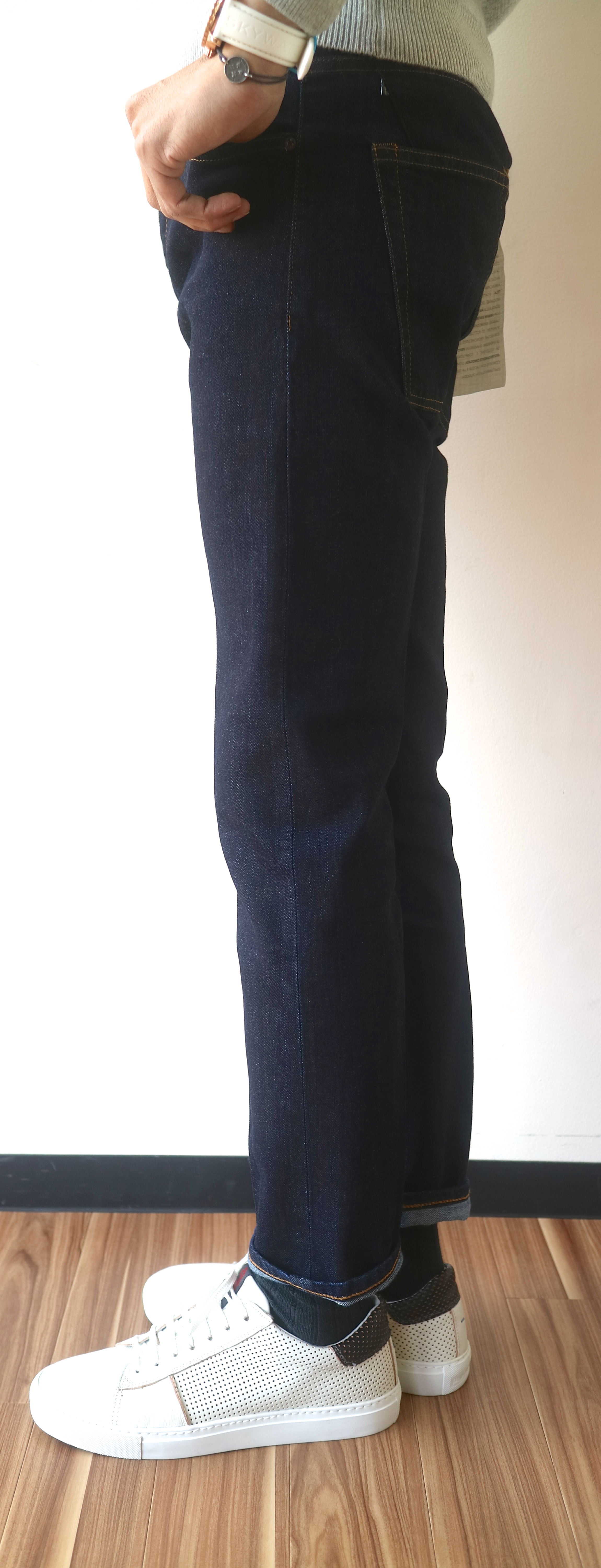 この手のデニムの良さと言えば、なんとなく漂う玄人感。かなり主観的な表現で恐縮ですが、お洒落な人ほど、濃いインディゴのデニムを素敵に穿きこなしている印象があります。ちょっと硬めな生地に変えただけで、見た目の印象も随分と変わるはず。リジットデニム風に穿くのもアリですし、濃いデニムをお探しの方に是非お勧めしたい1本です。