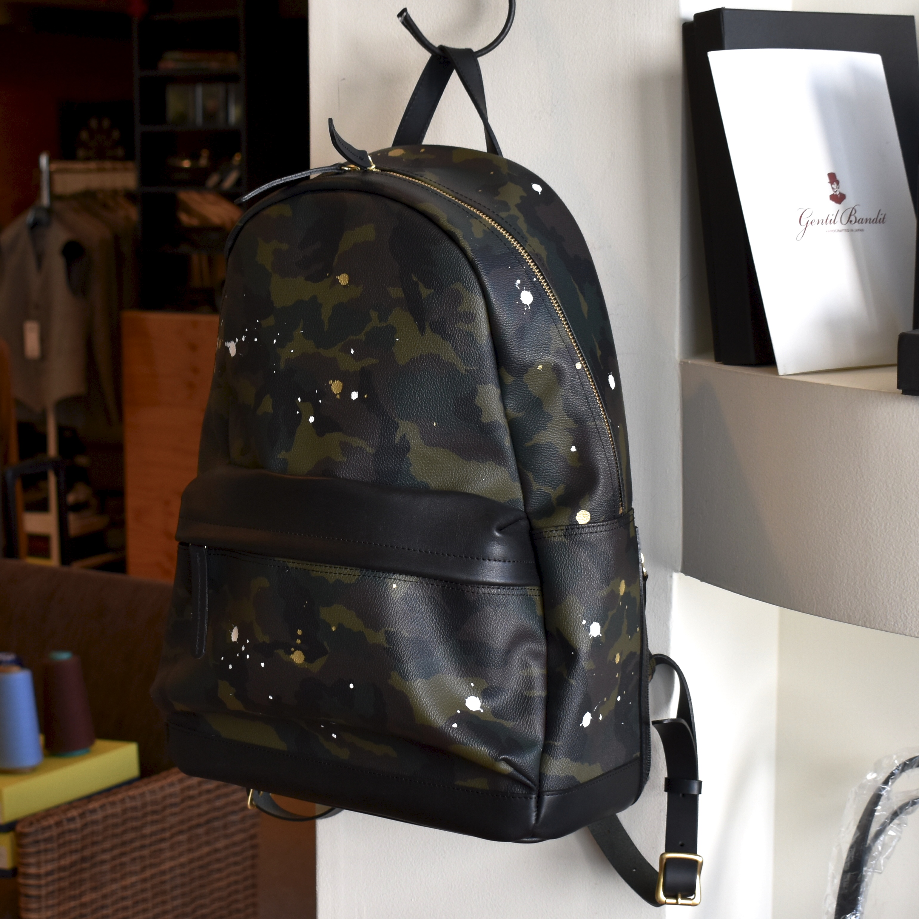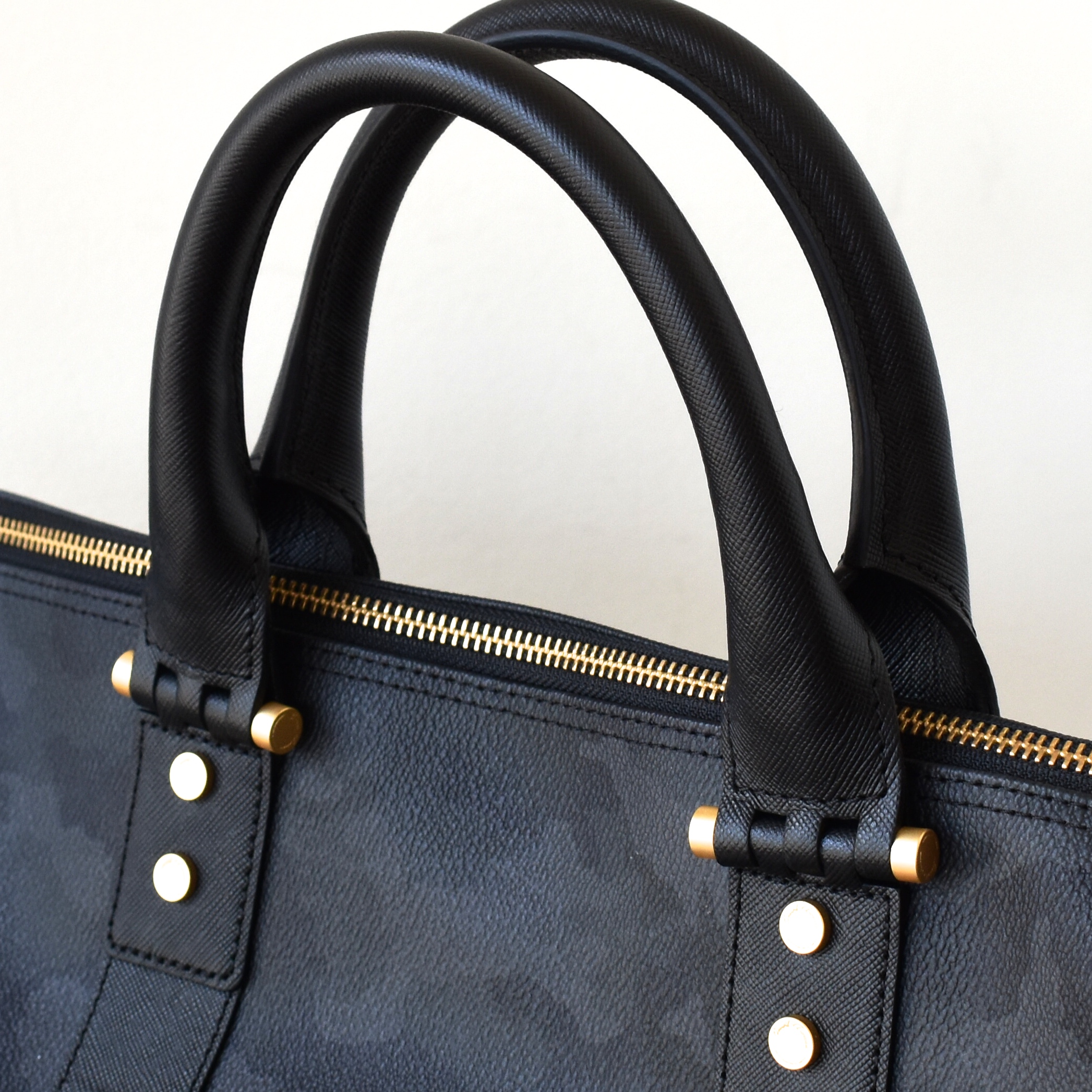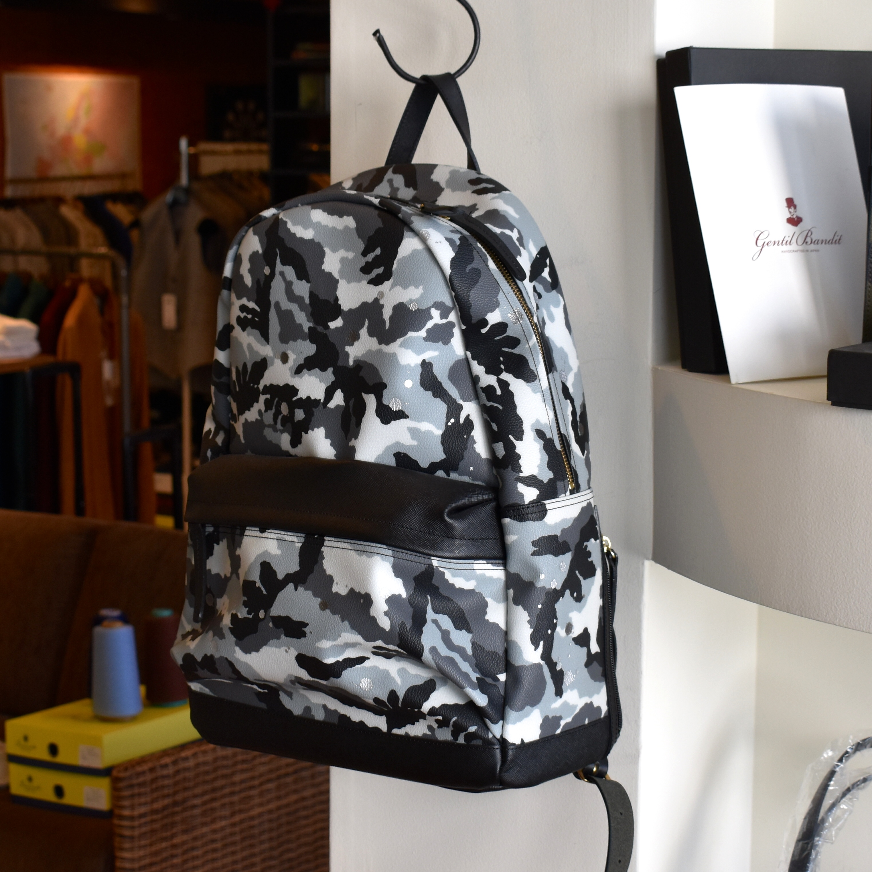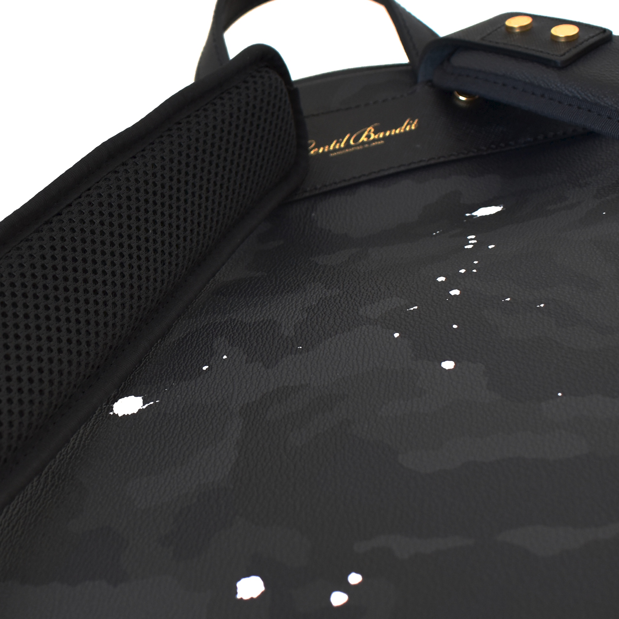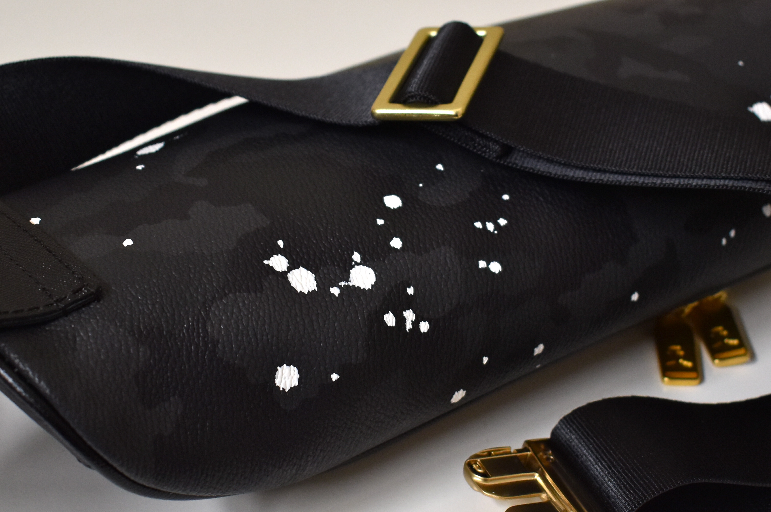 太陽のマークの次は、カモフラージュです。カモフラージュのバックコレクションを展開する【GENTIL BANDIT/ジャンティ バンティ】から、ブラックカモフラージュなる新色が登場しました。その名の通りブラックを基調としたカモフラージュ柄ですが、うっすらと色味が入っており、光の当たり方で見え方が変わってくるという、面白いブラックです。クールでモダンな表情と同時に、深みのあるグラデーションを楽しむことが出来るでしょう。