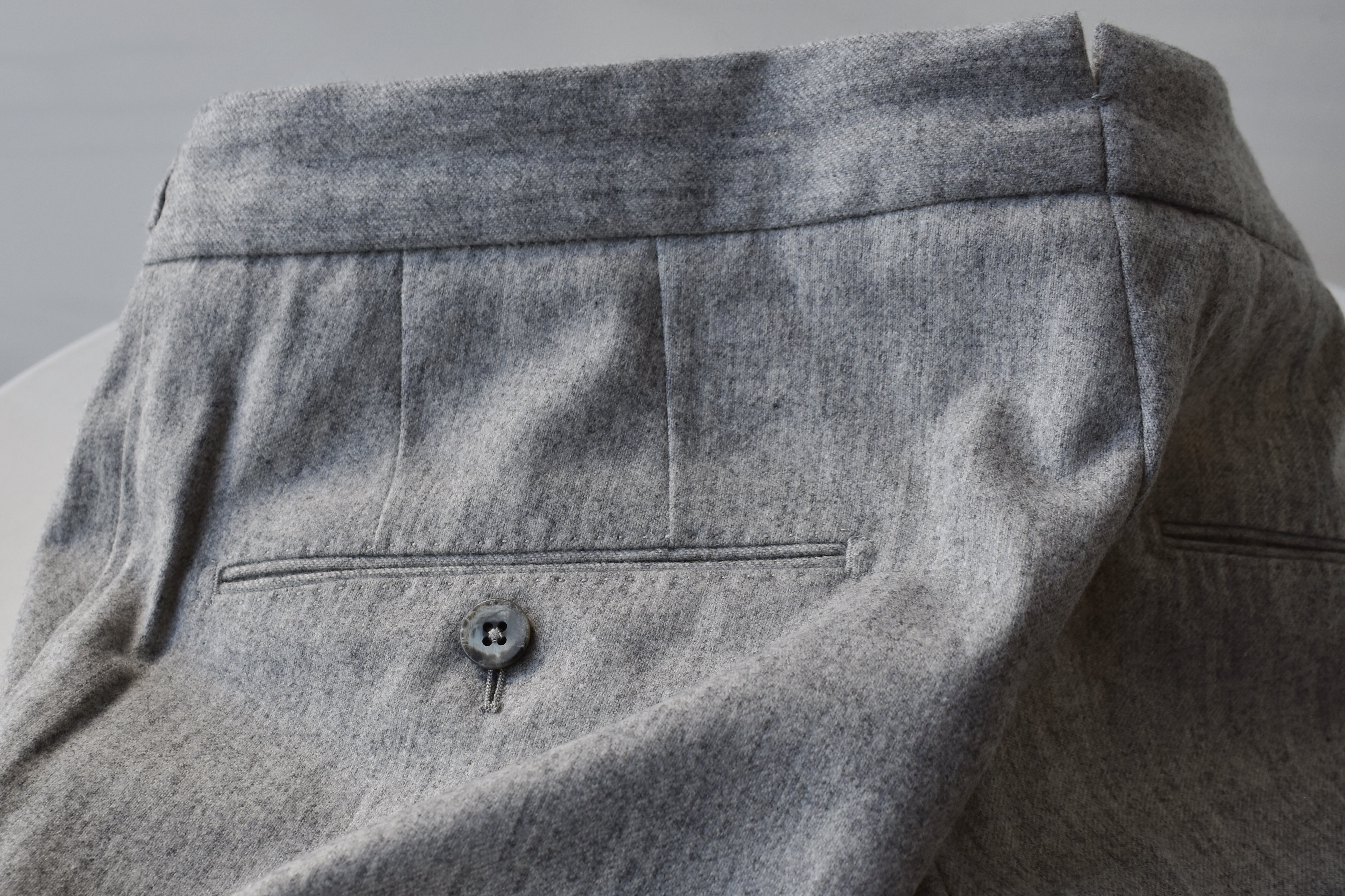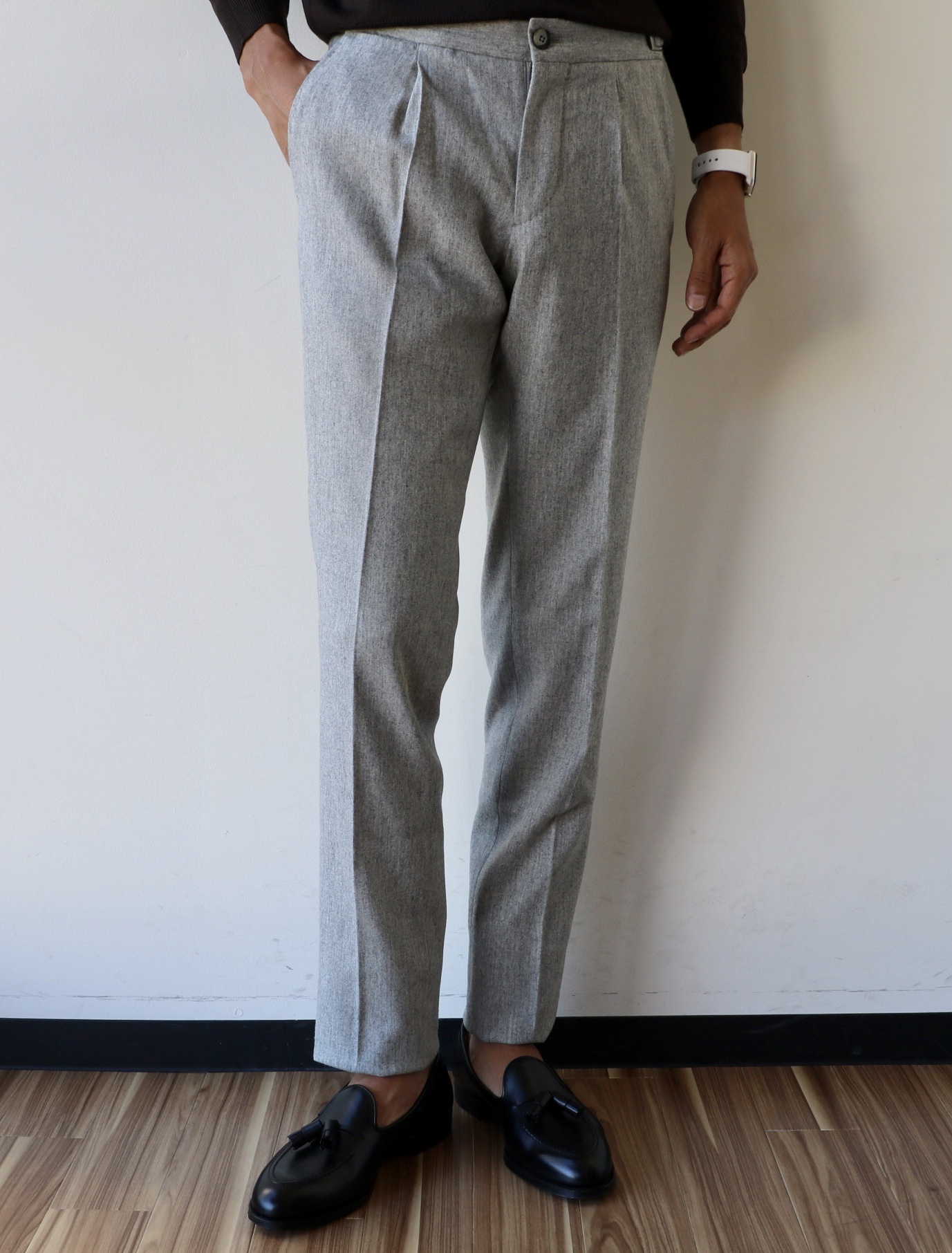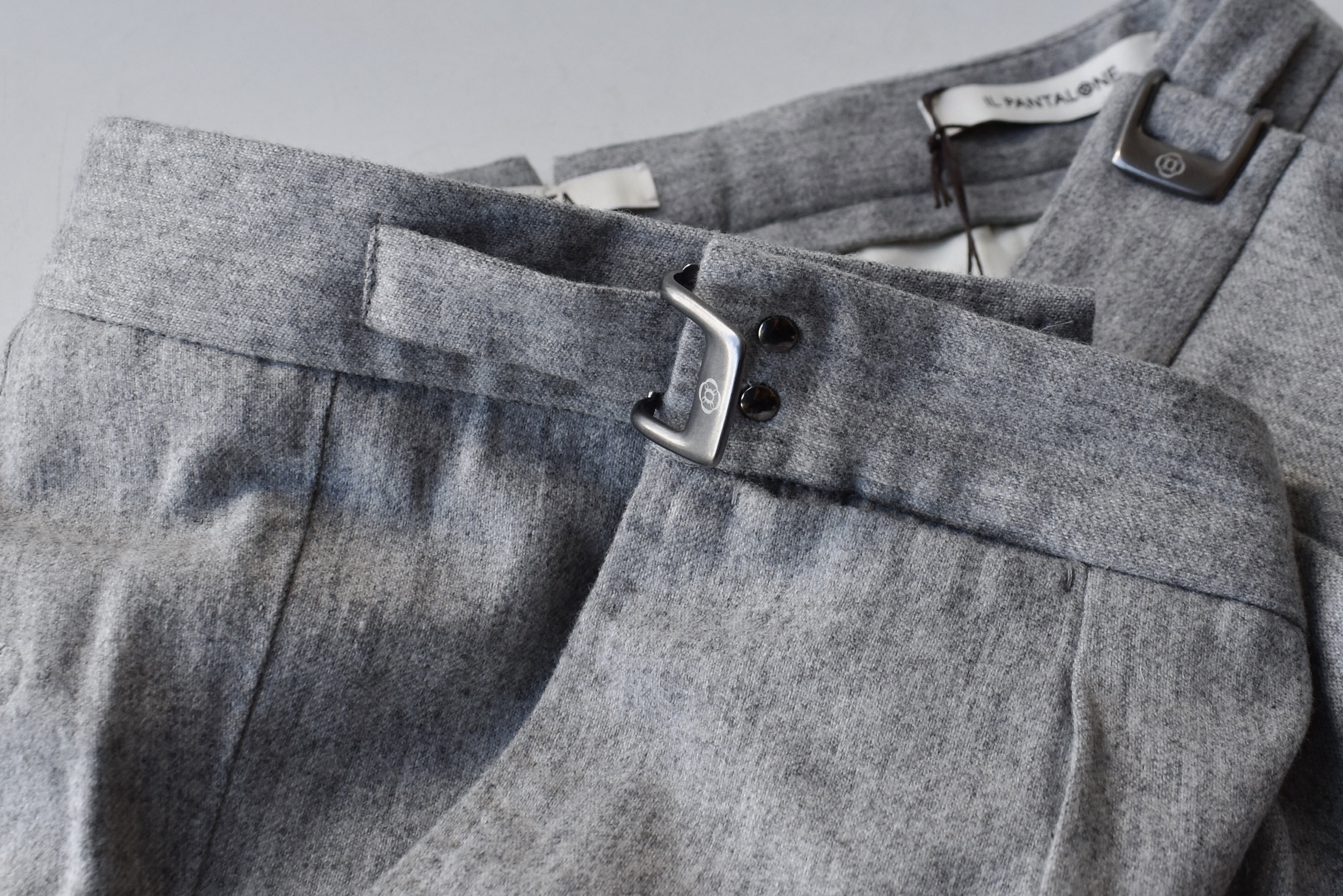 MODEL:「GIULIO」サイドアジャスター付き ベルトレスウールパンツ