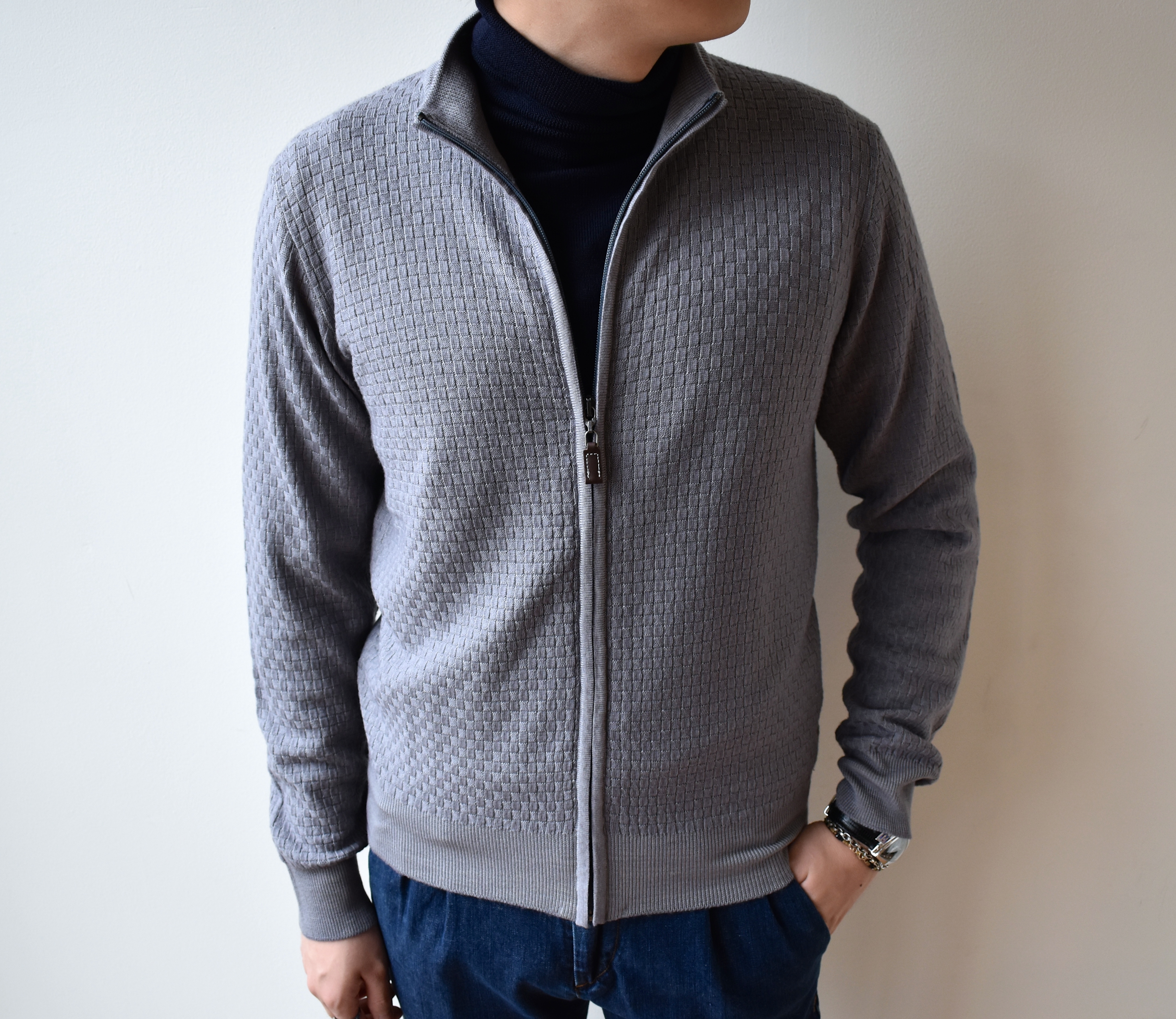 そろそろウールのニットが気兼ねなく着用できる時期でしょうか。ご案内にも熱が入ってきます。今日は、【morgano/モルガーノ】のジップアップカーディガンを1型ご紹介しましょう。
