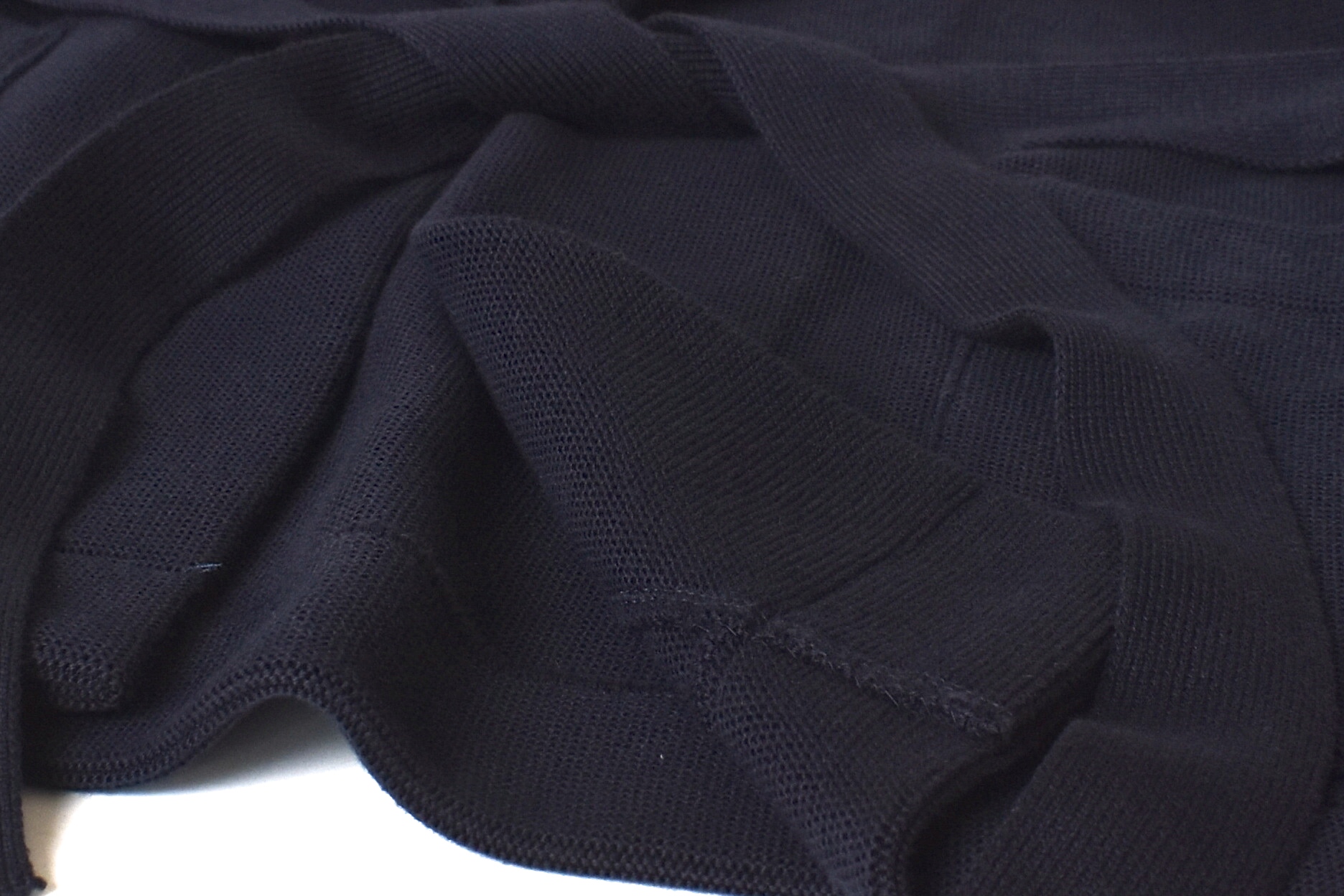 色がネイビー無地というのも良い点です。毛羽立ちのほとんどないどっしりとした生地は、比較的長いシーズン着用しやすいですし、何より他のアイテムと合わせやすいですしね。