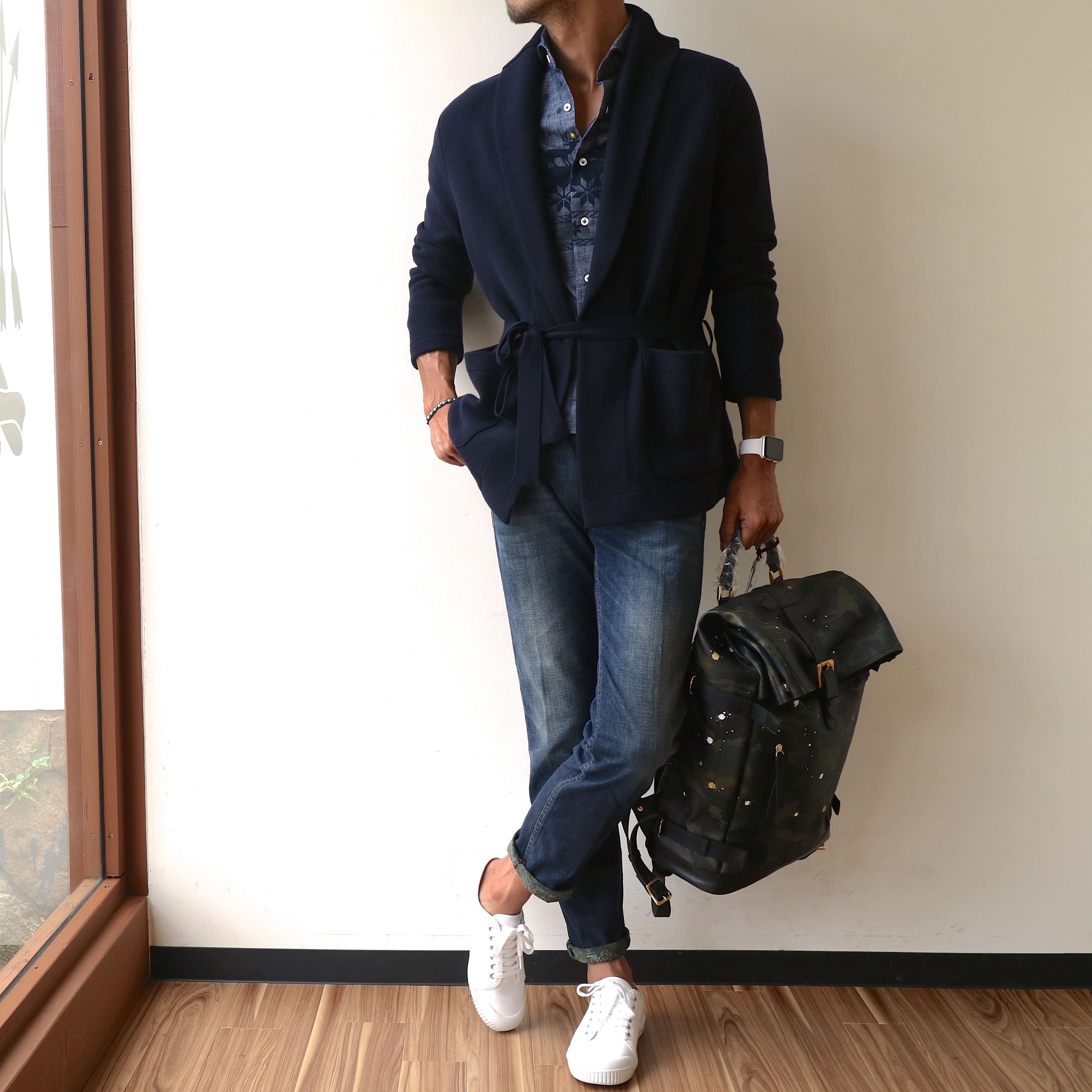 ニットーDREW&CO. シャツーGiannetto デニムーCare label 靴ーSpring Court バックパックーGENTIL BANDIT