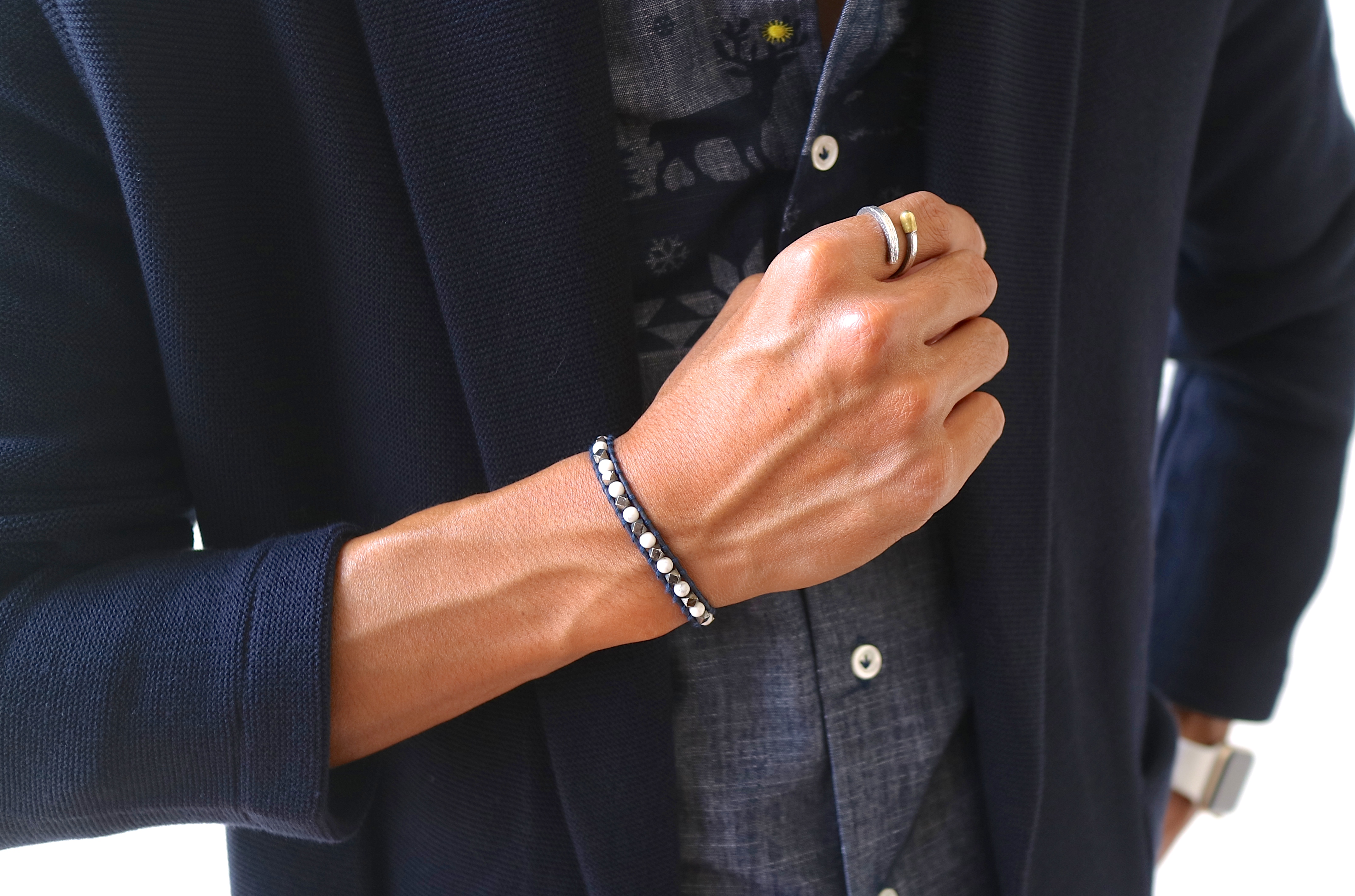 ネイビー系とブラック系。ストーンは同じくホワイト(ハウライト)・ブラック(マットオニキス)・グレイ(マットヘマタイン)のコンビネーションです。