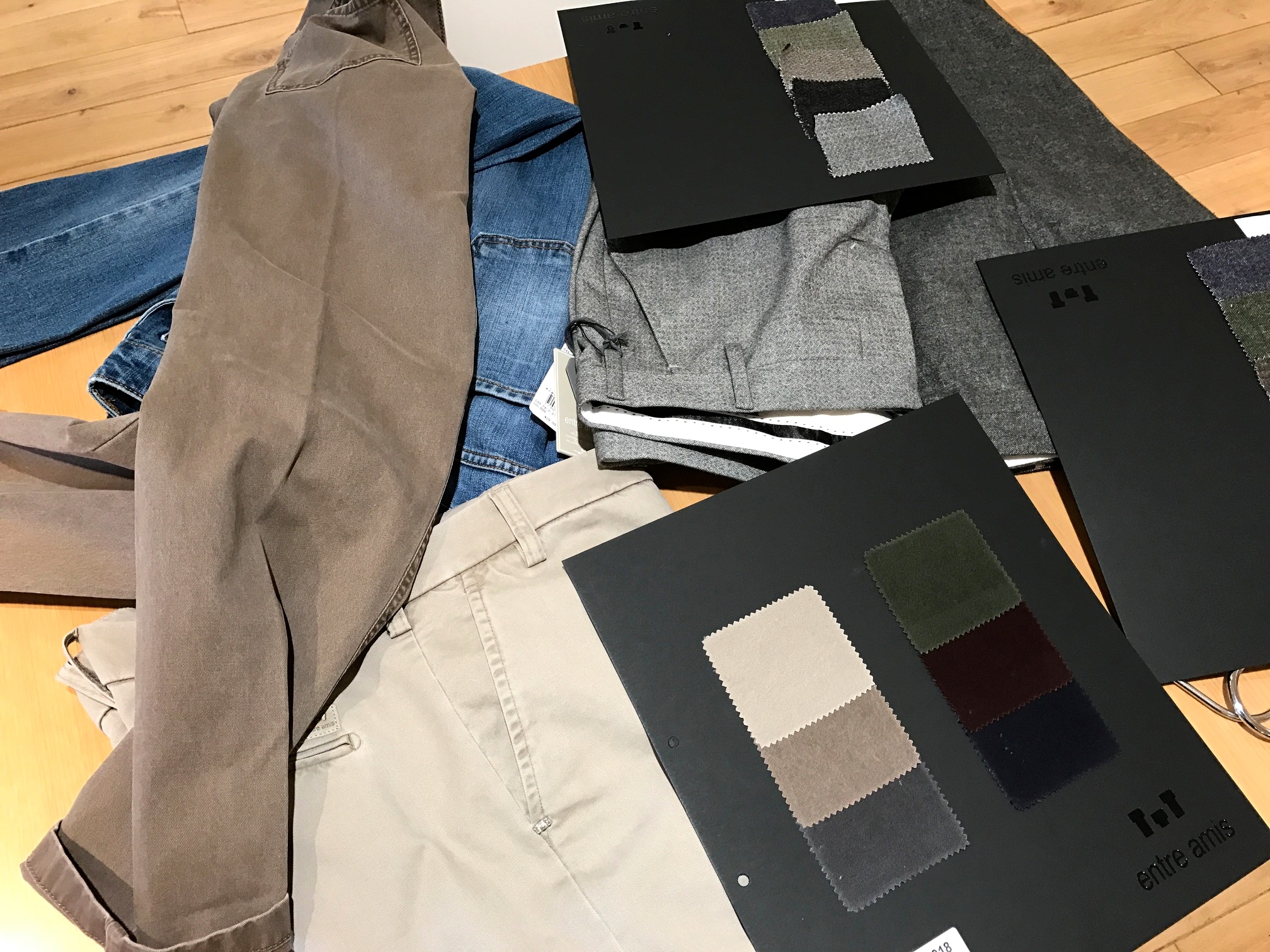 【PANTS】一見ウール、でも素材はコットン系。暖かみと風合いのある表情が魅力の、ウールライクのパンツが豊作です。左が【BRIGLIA 1949/ブリリア】、右が【entre amis/アントレアミ】になります。