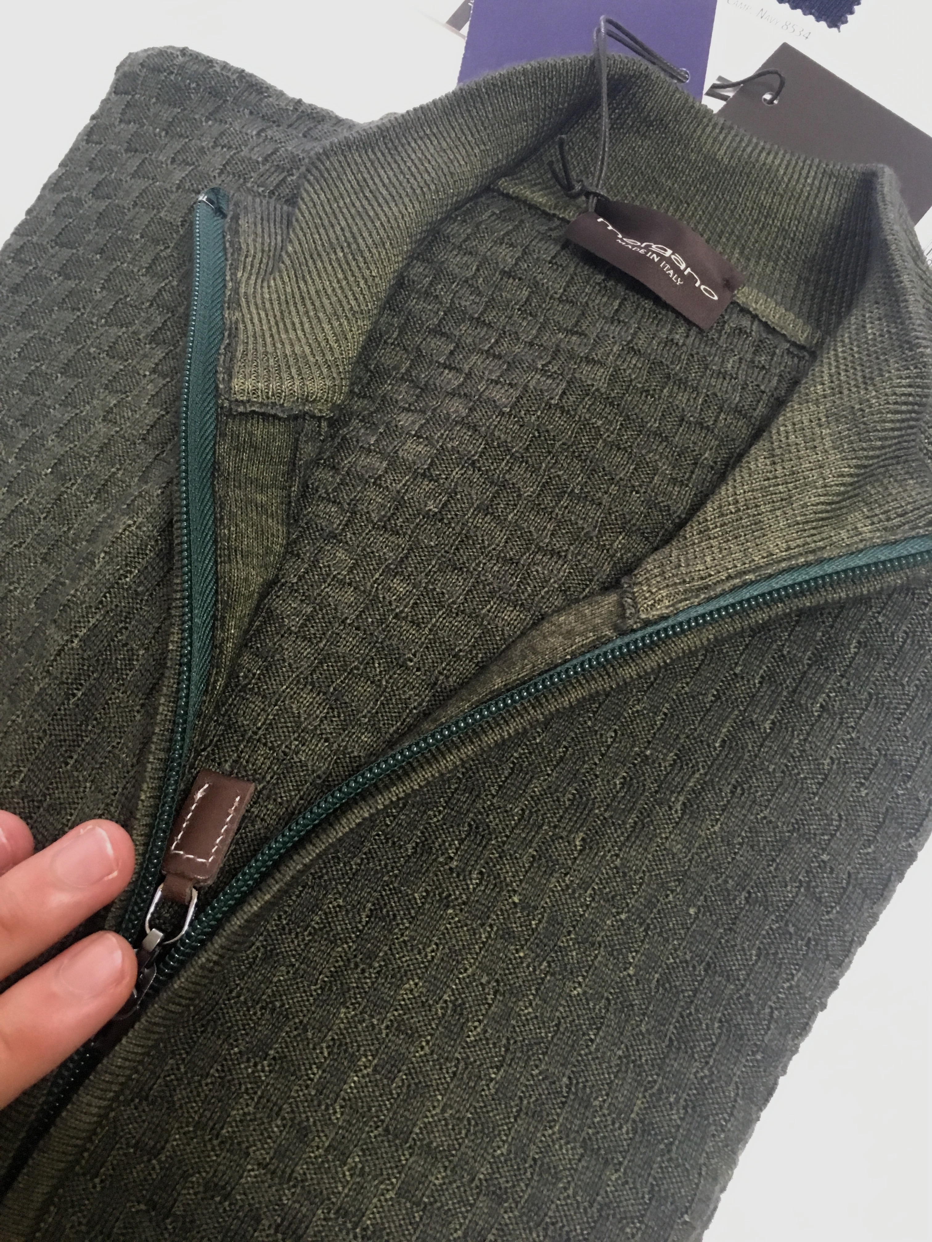 【KNIT】:いつも素敵なジャカード編みニットを送り出してくる【PANICALE/パニカーレ】(写真左)。モックネックでも良い塩梅のものが入荷してきます。対して【morgano/モルガーノ】(写真右)では、ベーシックなニットを豊富にご用意しております。
