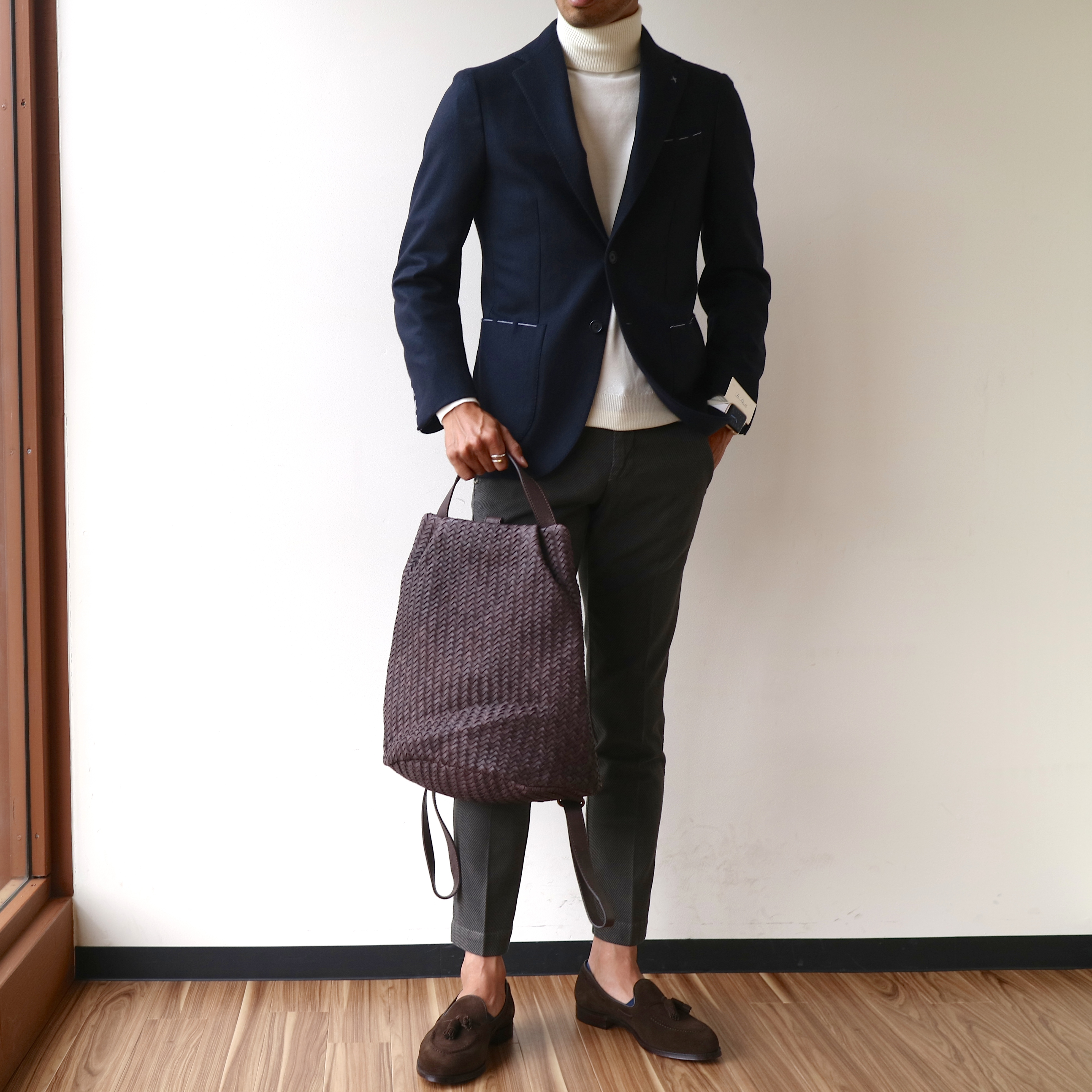 ジャケットスタイルにも、バッチリ。夜の遊びを心得てこそ大人...かは分かりませんが、素敵なディナーやバーに出掛ける際は、是非ご一緒に。 ジャケットーDe Petrillo ニットーJOHN SMEDLEY パンツーentre amis 靴ーCROCKETT&JONES ※パンツ以外はグローリーガイ