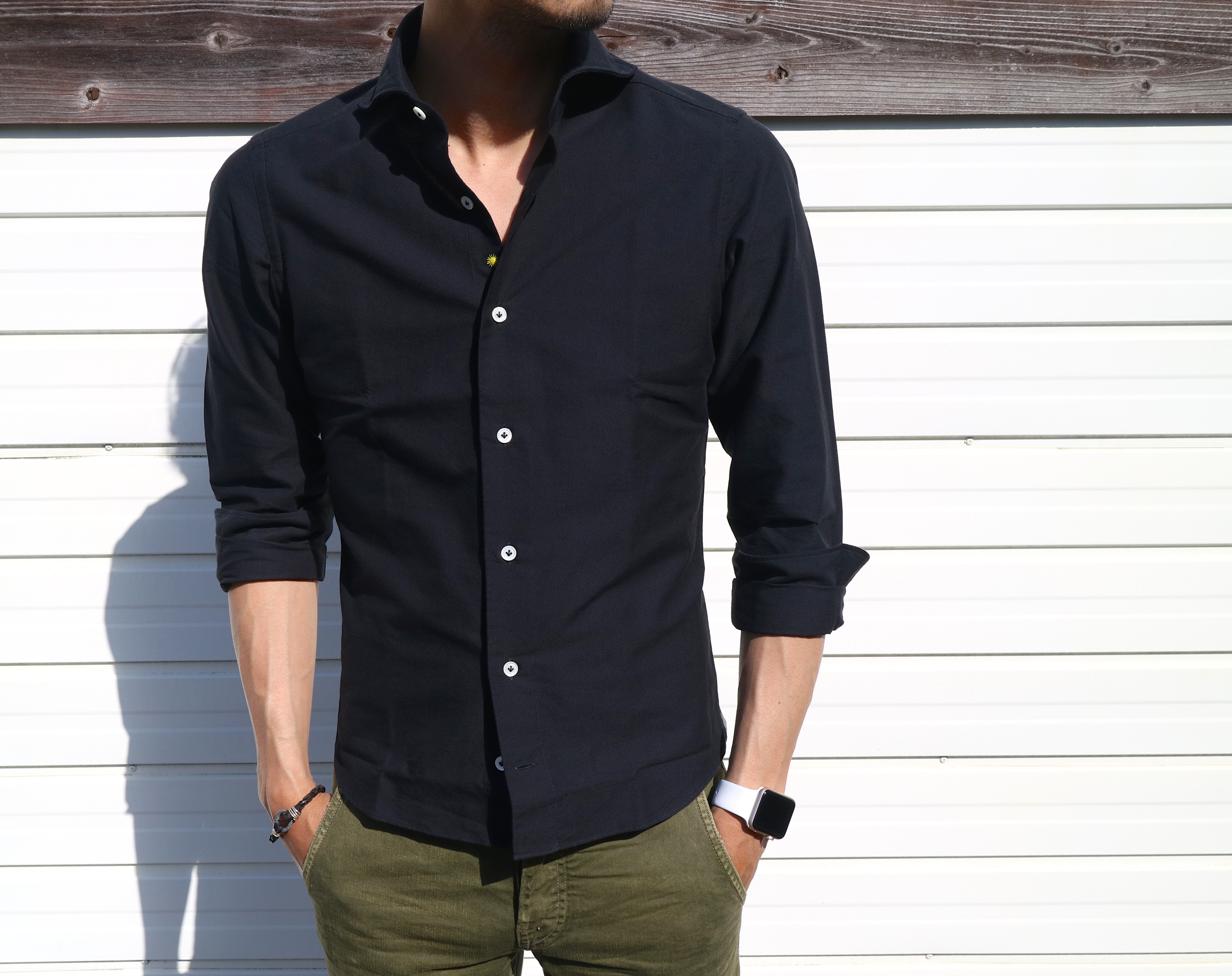 【Giannetto/ジャンネット】のオックスフォード地です。カジュアルな生地ですので、艶っぽくなり過ぎることはなく、適度にクールです。デニムと相性が良いのも、この手のブラックの特長です。