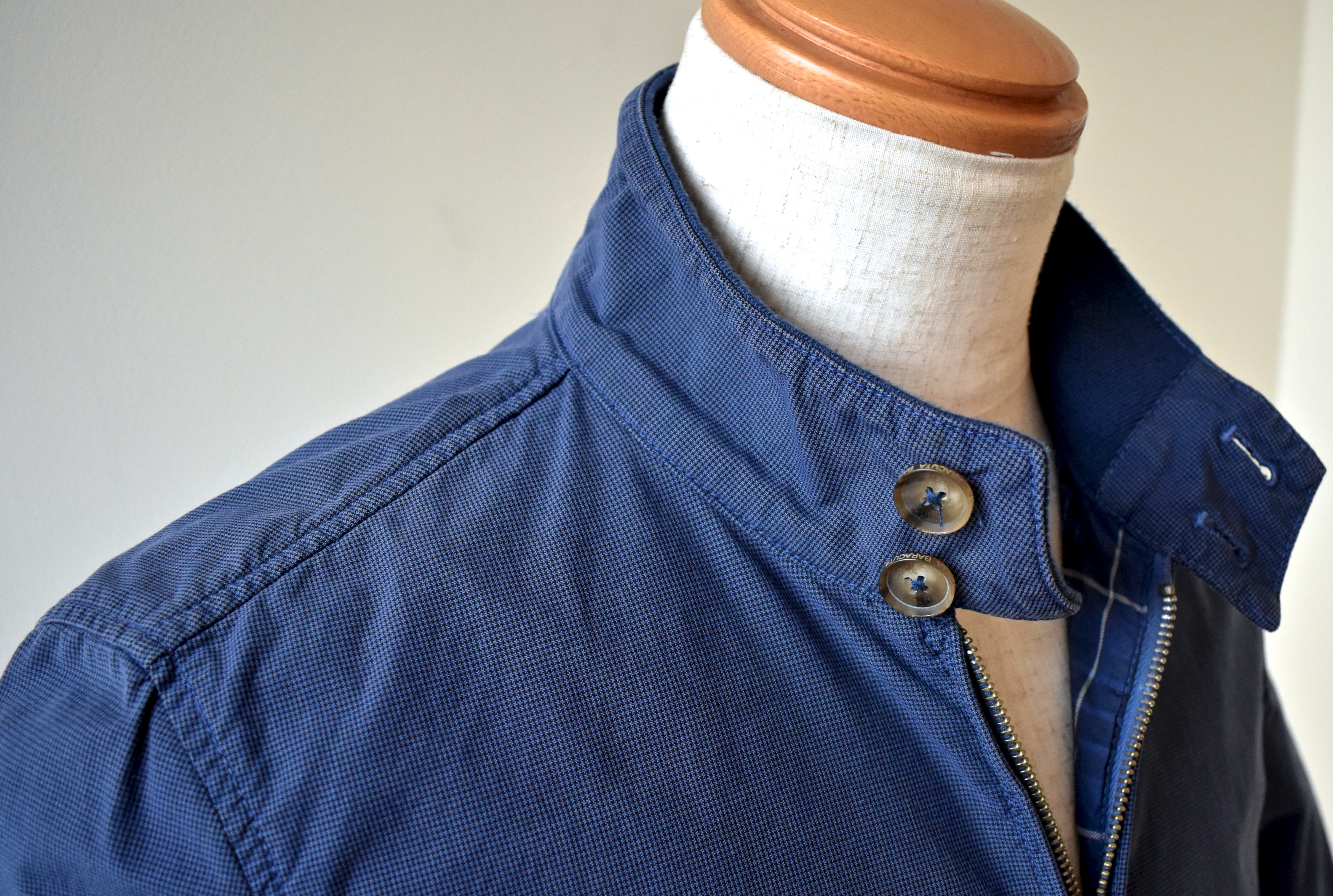 【BARACUTA/バラクータ】の「G9 ジャケット」です。ん?これ、G9?そう違和感を感じる方は、かなりの洋服通かもしれません。1月27日にご紹介した正統派のモデルとは、ちょっぴり表情が変わって見えます。