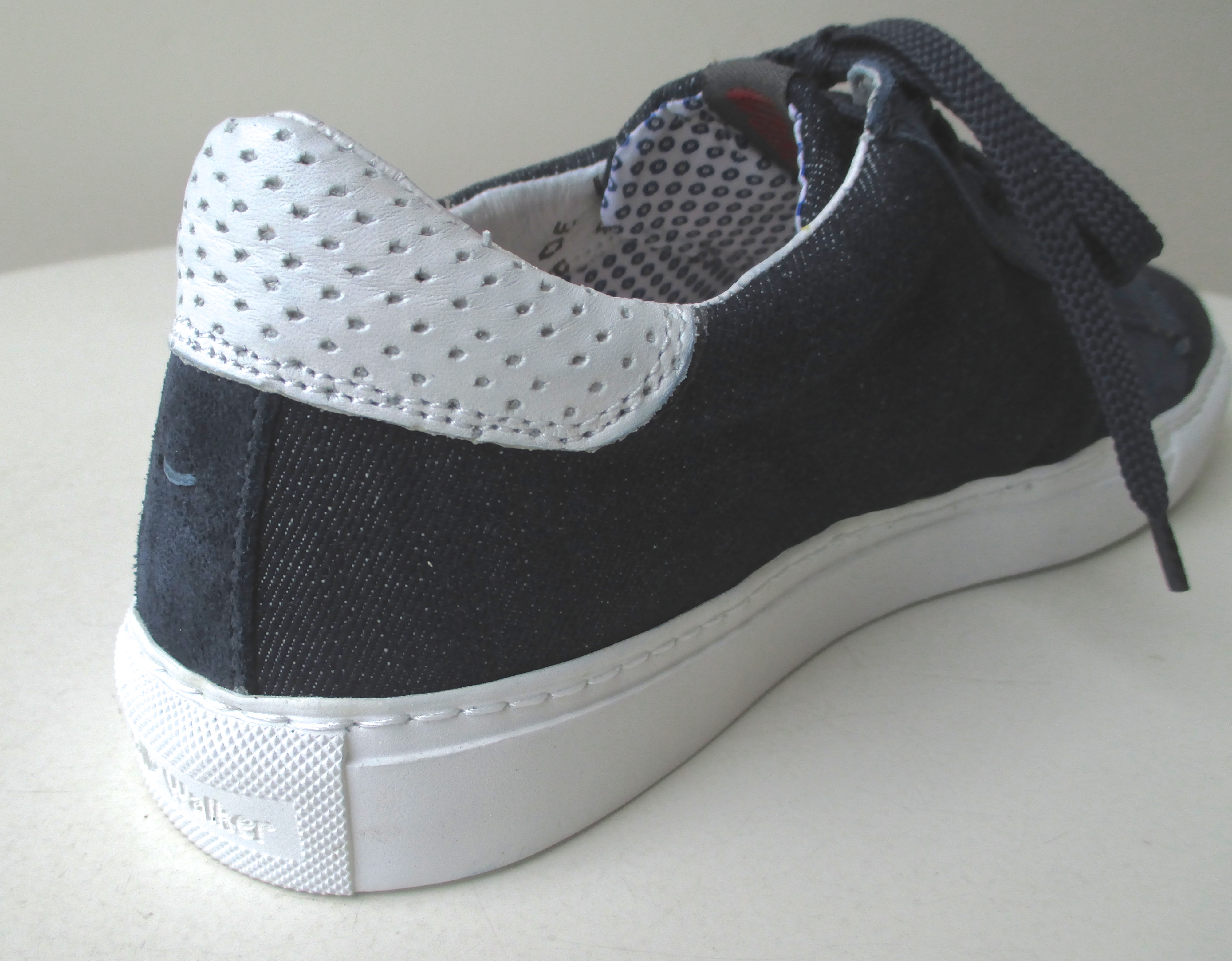 よく見ると、デニム地とレザーとのコンビになっていることに気付かされます。アウトソールや踵部分に配置されたホワイトと相まって、絶妙なカジュアル感を演出してくれそうです。
