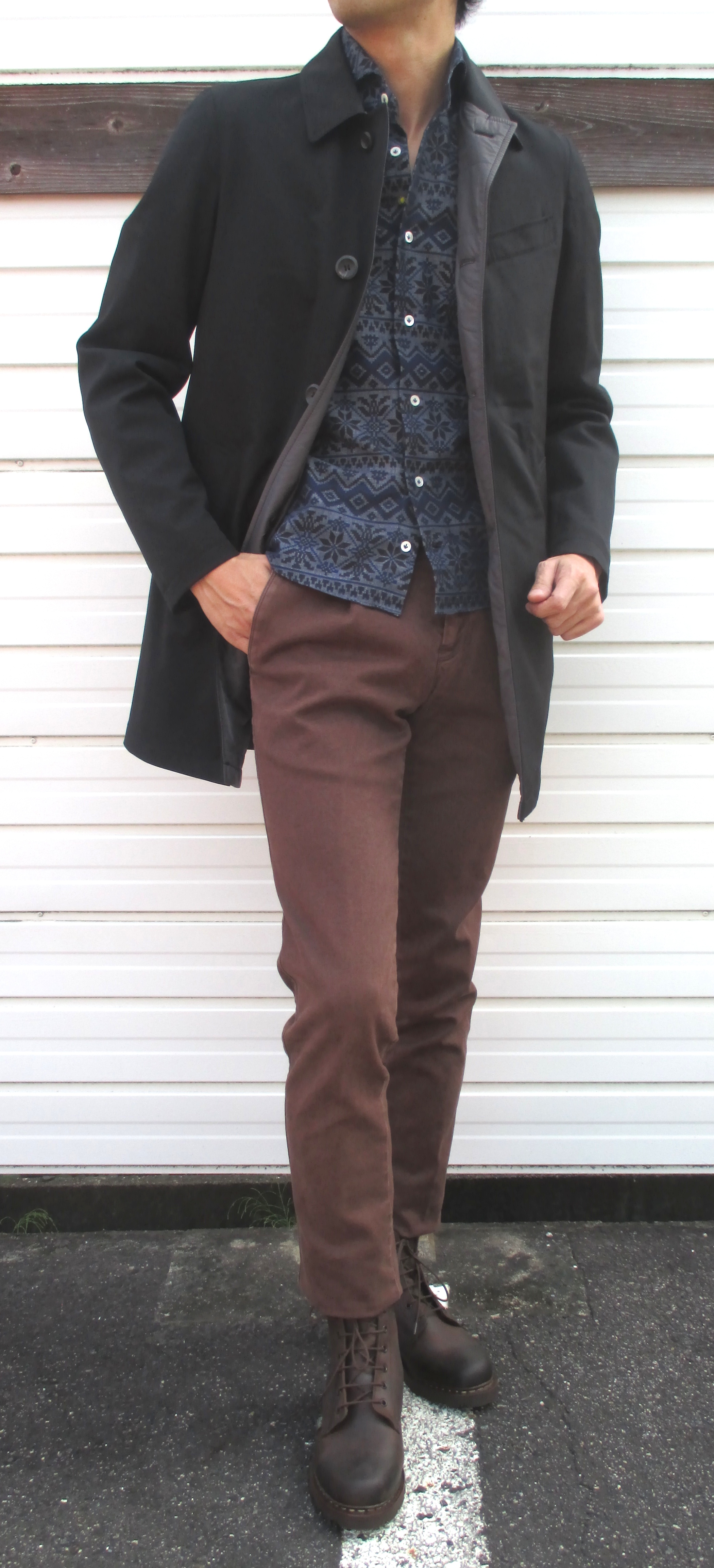 その他合わせは、インに着用したのがGiannettoのノルディック柄シャツ(スノー柄)、ベルトはAndrea D'AMICOのパイソンベルト(ブラウン)、靴は私物です。