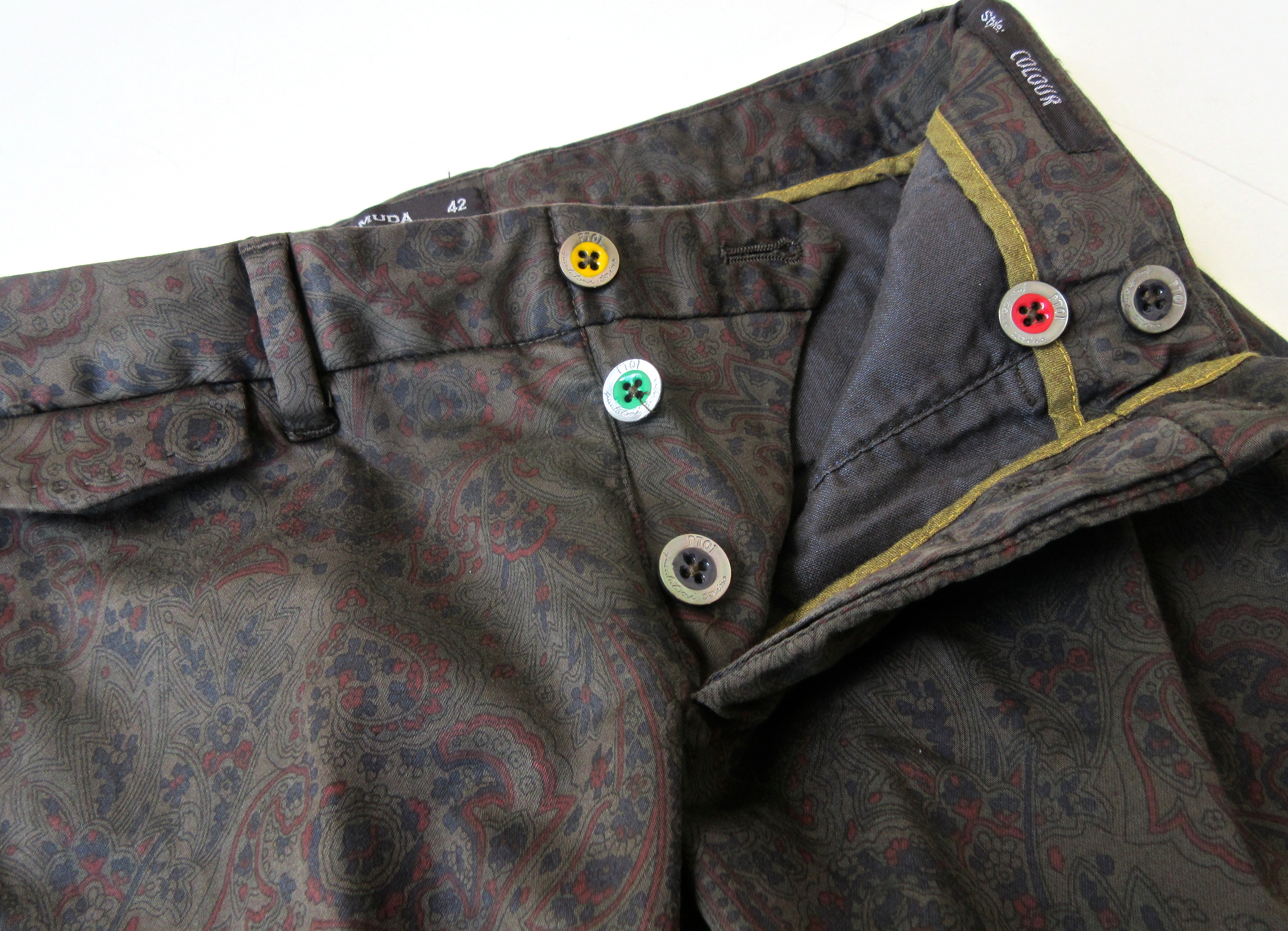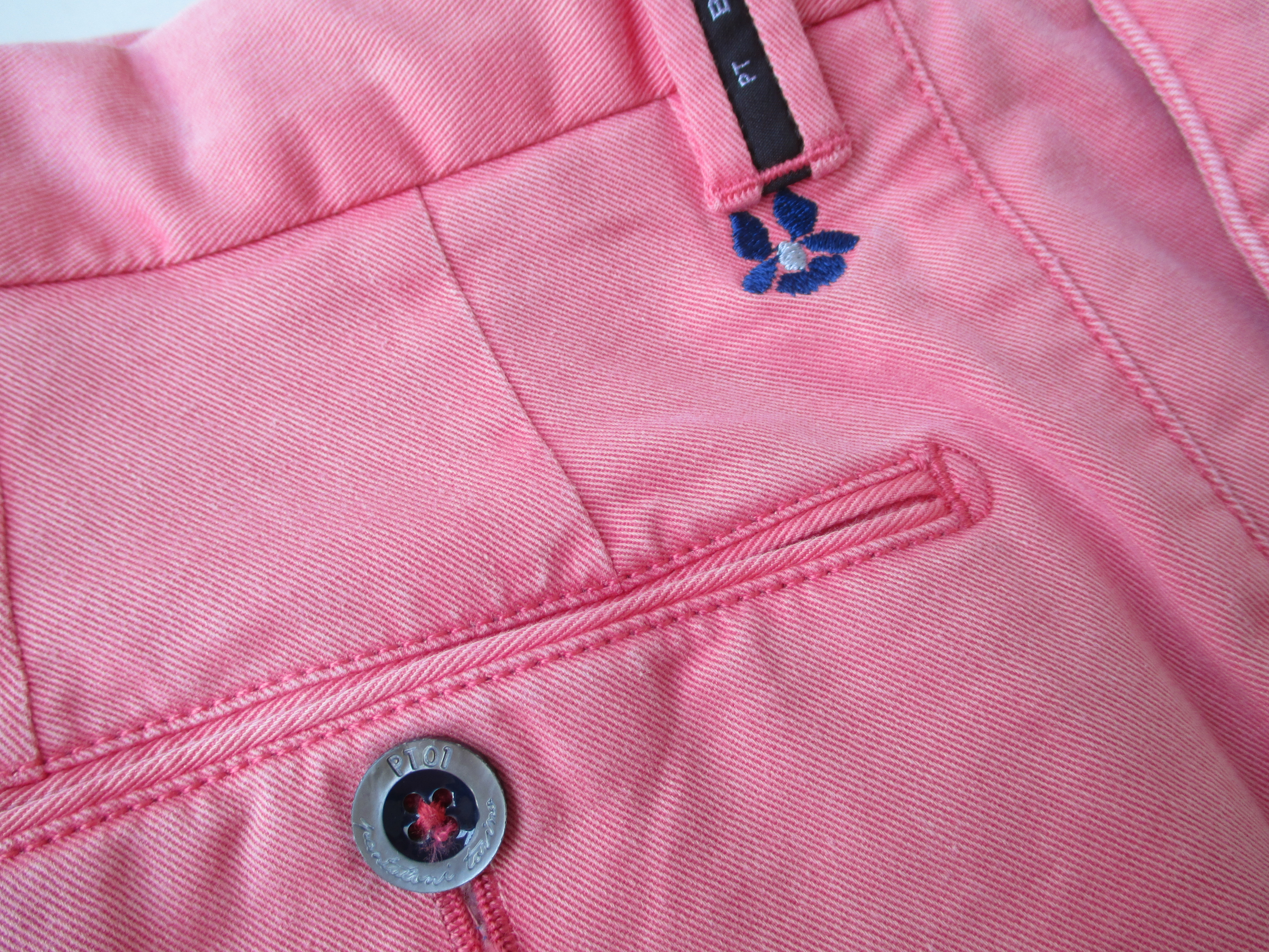 Style:COLOURと題されたシリーズは、釦がカラフルな仕様に。バックポケットの釦も同様で、PTらしい遊び心を感じ取る事ができます。また、ハリのある生地感でシワにもなりにくく、爽やかな履き心地を連想させてくれます。