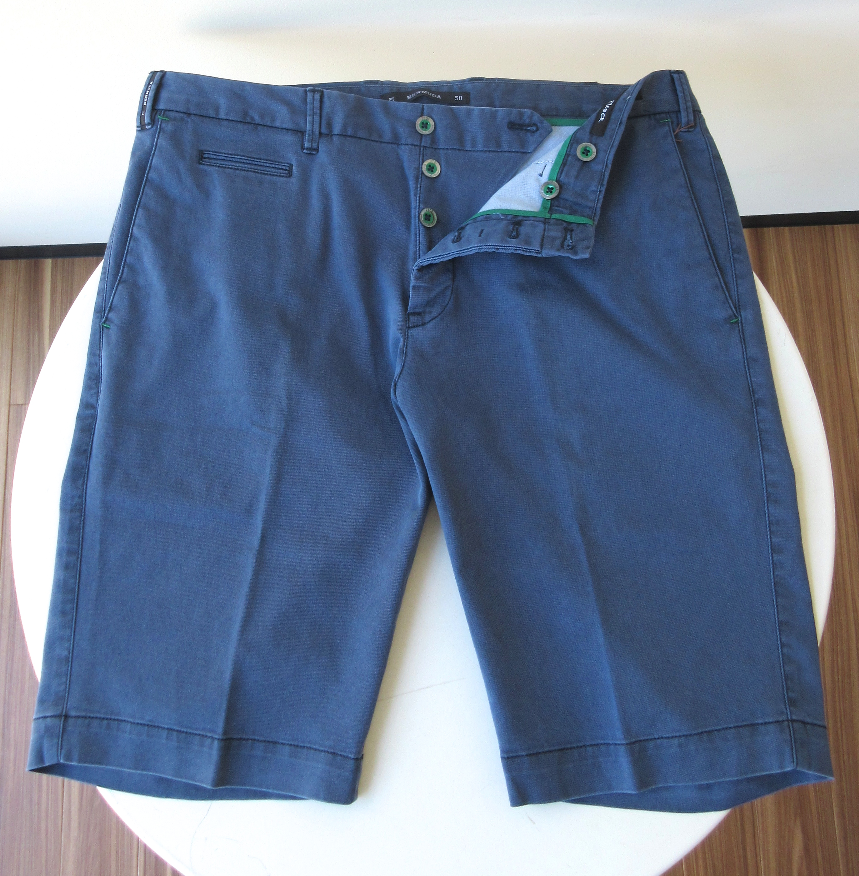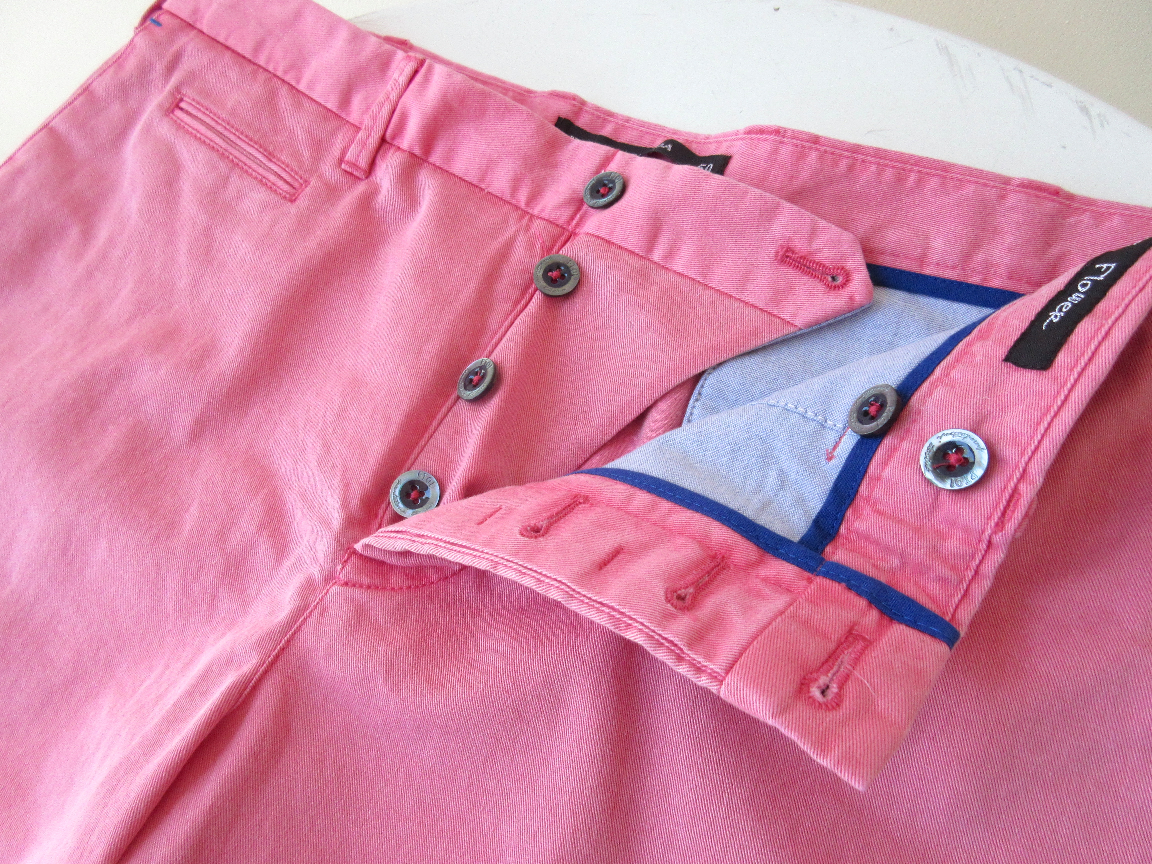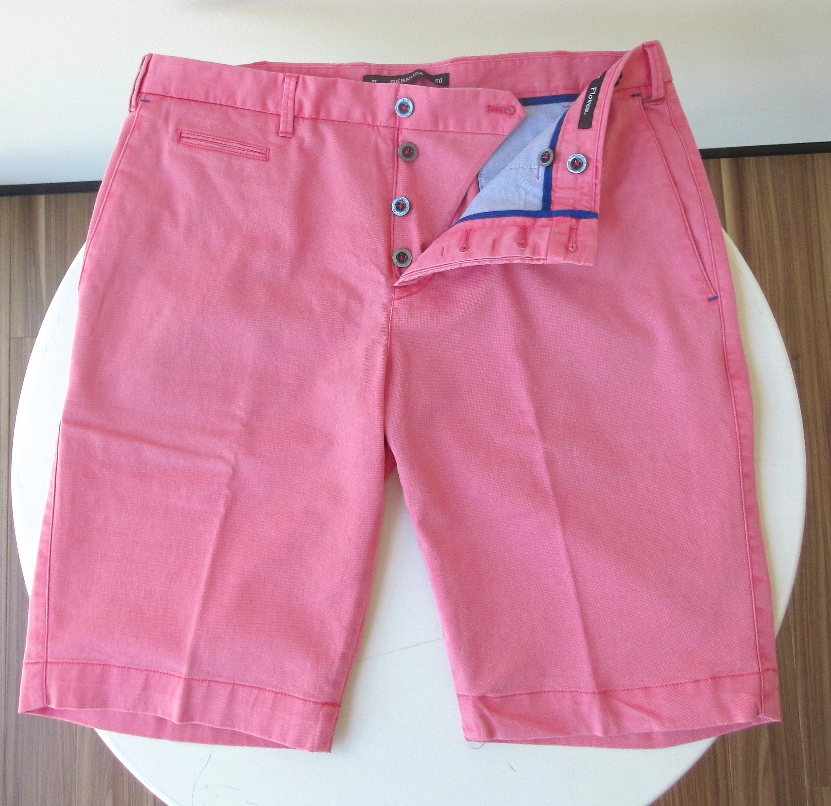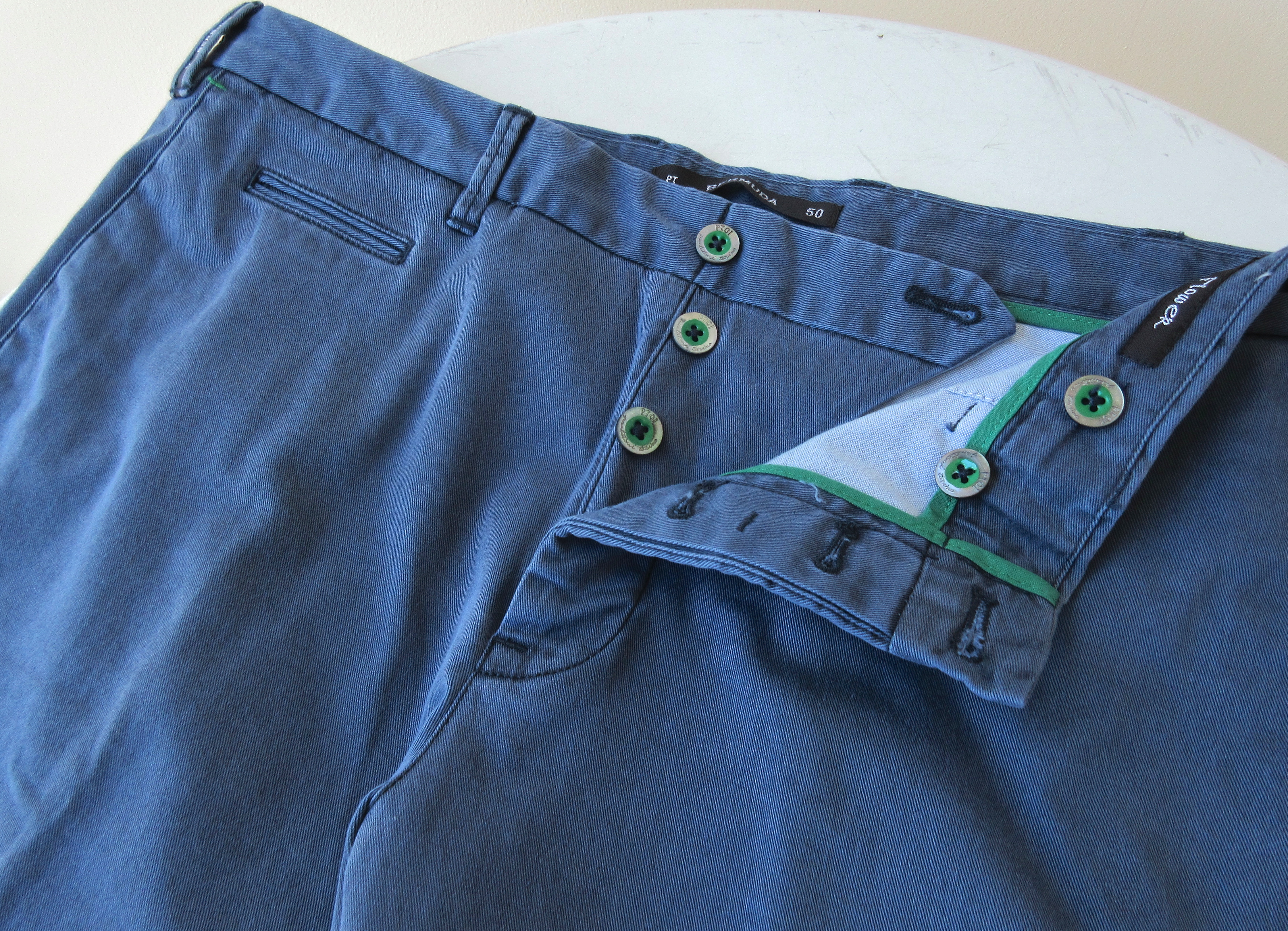ローズピンクの釦はブルーに、フェードブルーの釦はグリーンに統一されており、PTらしくちょっとしたディテールにも手が込んでいます。ショーツにあまり馴染みのない方にも安心して履いて頂けるタイプですし、既に何本かお持ちの方も原点に立ち返るという意味で良いのかもしれません。