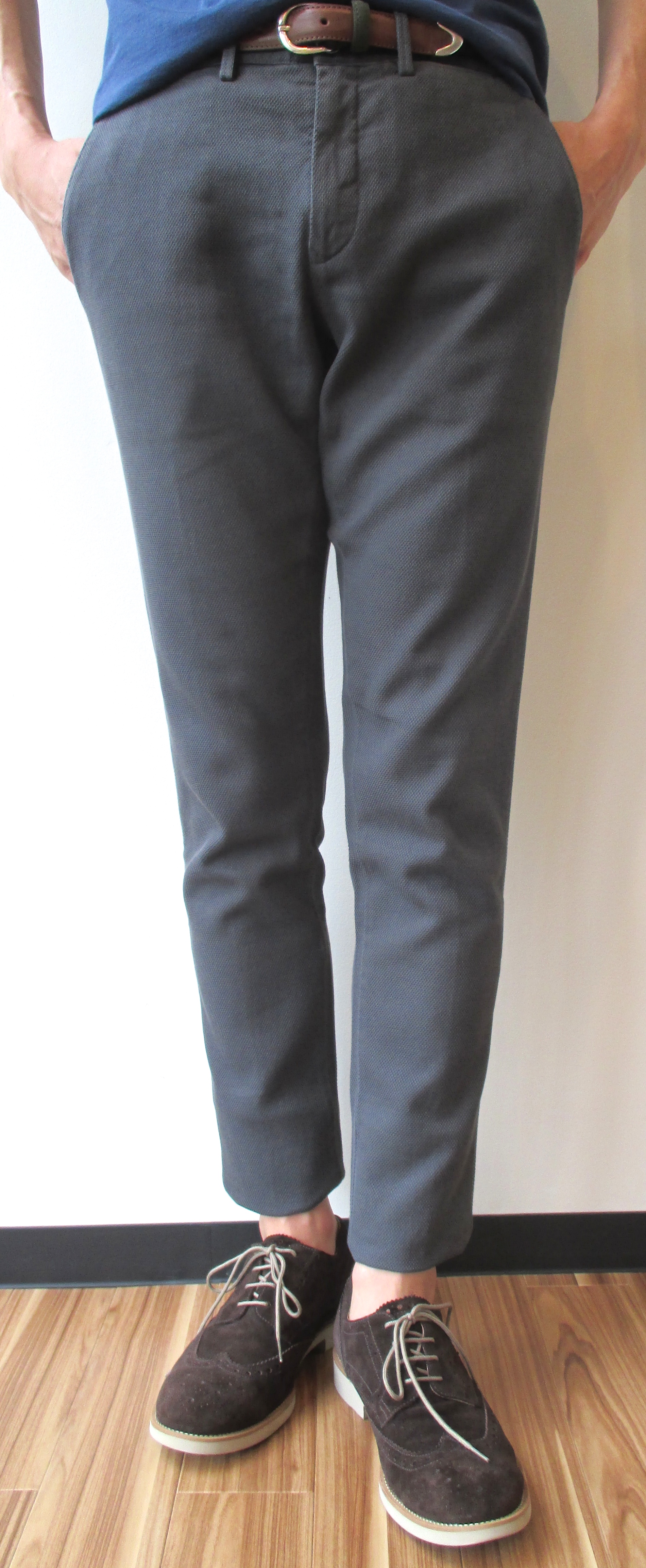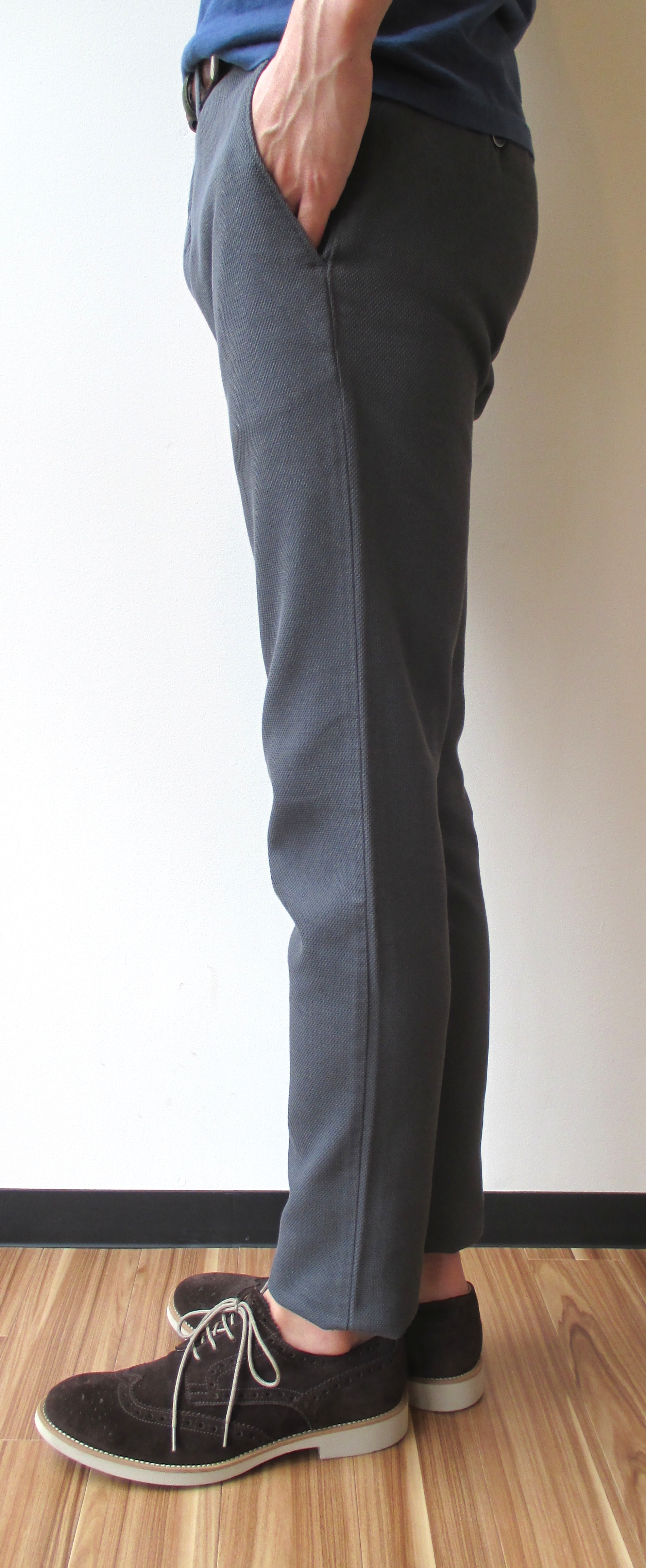 細身の多いSIVIGLIAの中では、ほんのちょっとだけウエスト部分にゆとりがあり、ドライな生地感と相まって、これからの暑い時期にも活躍の予感。存在感のある柄物との合わせも、卒なくこなしてくれるでしょう。