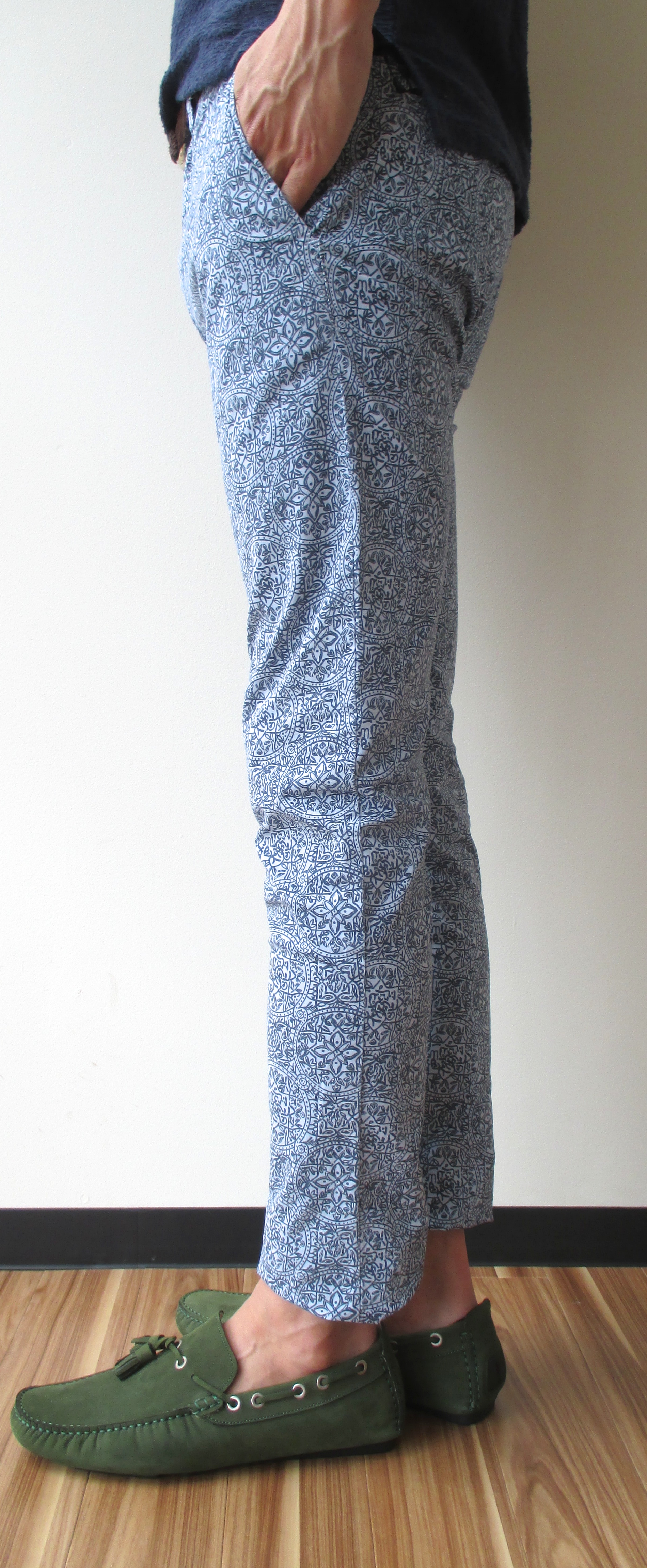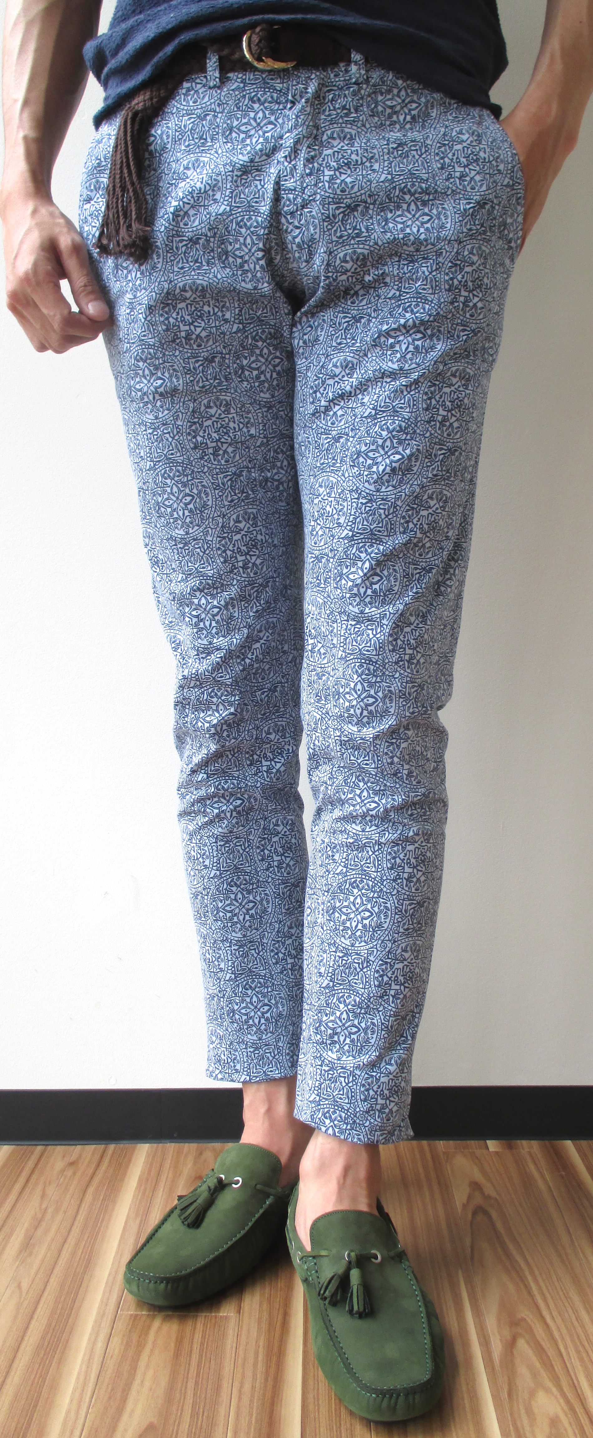 惜しみなくプリントされたペイズリー柄は、下半身に確かな存在感をもたらしてくれます。ポロシャツやカットソーなどの軽装になっても、全体の印象を地味にさせません。全身を無地系でシックにまとめるのも良いですが、夏を全開で感じ、楽しみたいなら、これ位のインパクトが必要なのかもしれません。