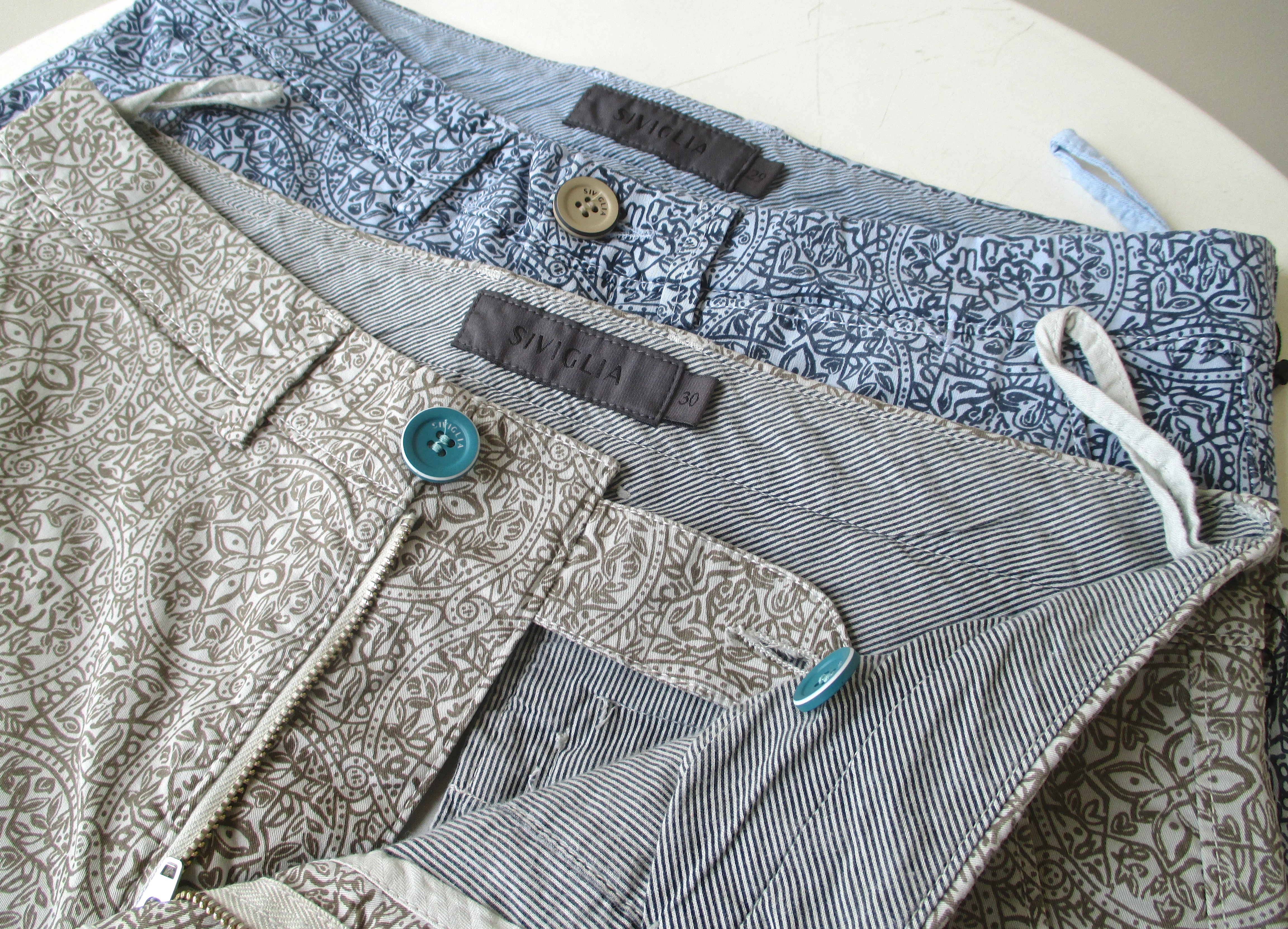 ベージュとサックスブルーのそれぞれが、ベースのカラーと同系統の色を使った柄である為、まとまりを感じます。SIVIGLIA特有の、細身ながらもストレッチの効いた柔らかい履き心地はこちらも健在です。