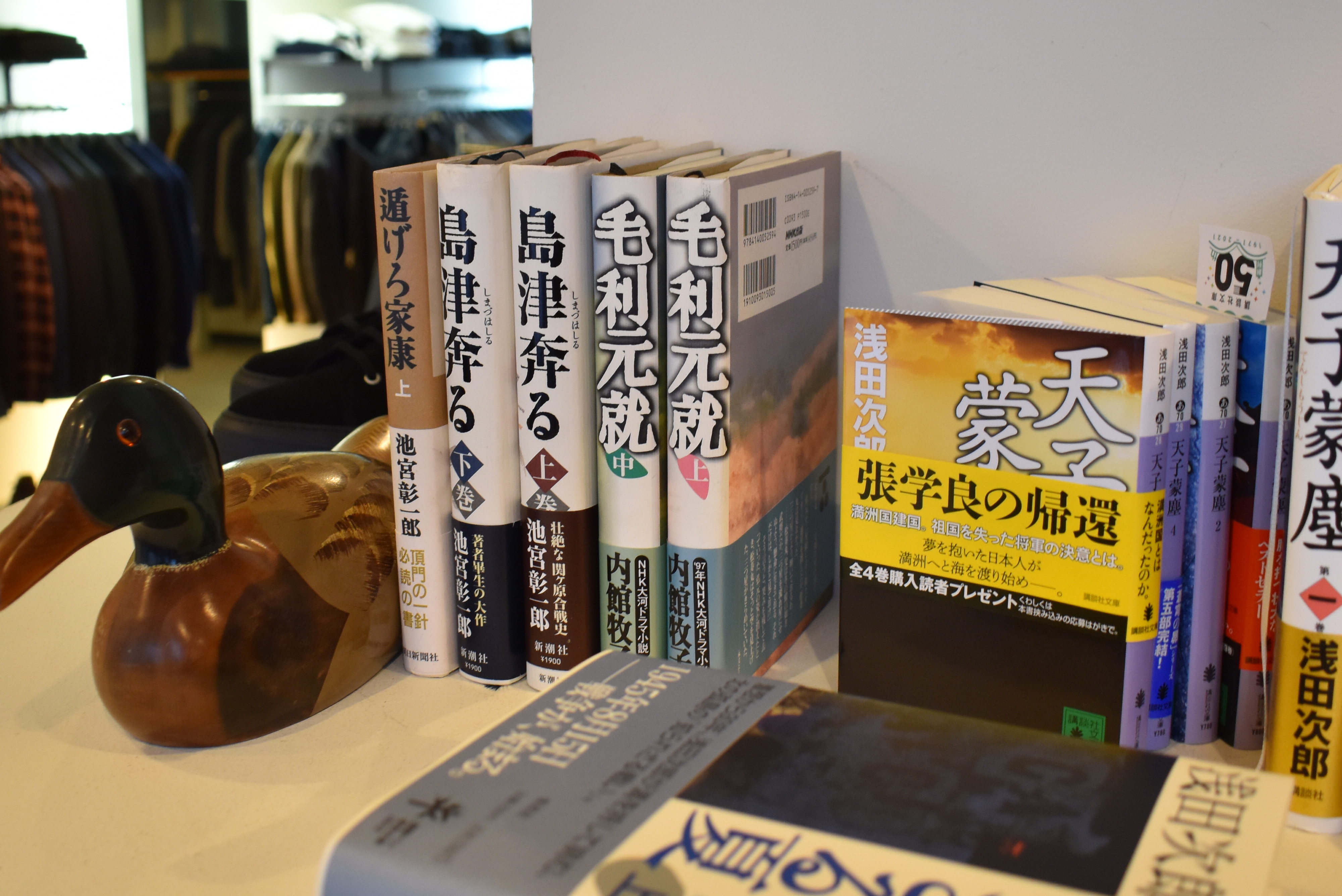カフェの一角には、オーナー・スグルの時代小説がズラリと並びます。洋服を見にきていただいても、美味しいコーヒーを飲みにいらしても、時間を忘れて歴史小説を読み漁ってもらっても、どんな理由でも結構です。是非ともお気軽にマガジーノまで足をお運びください。