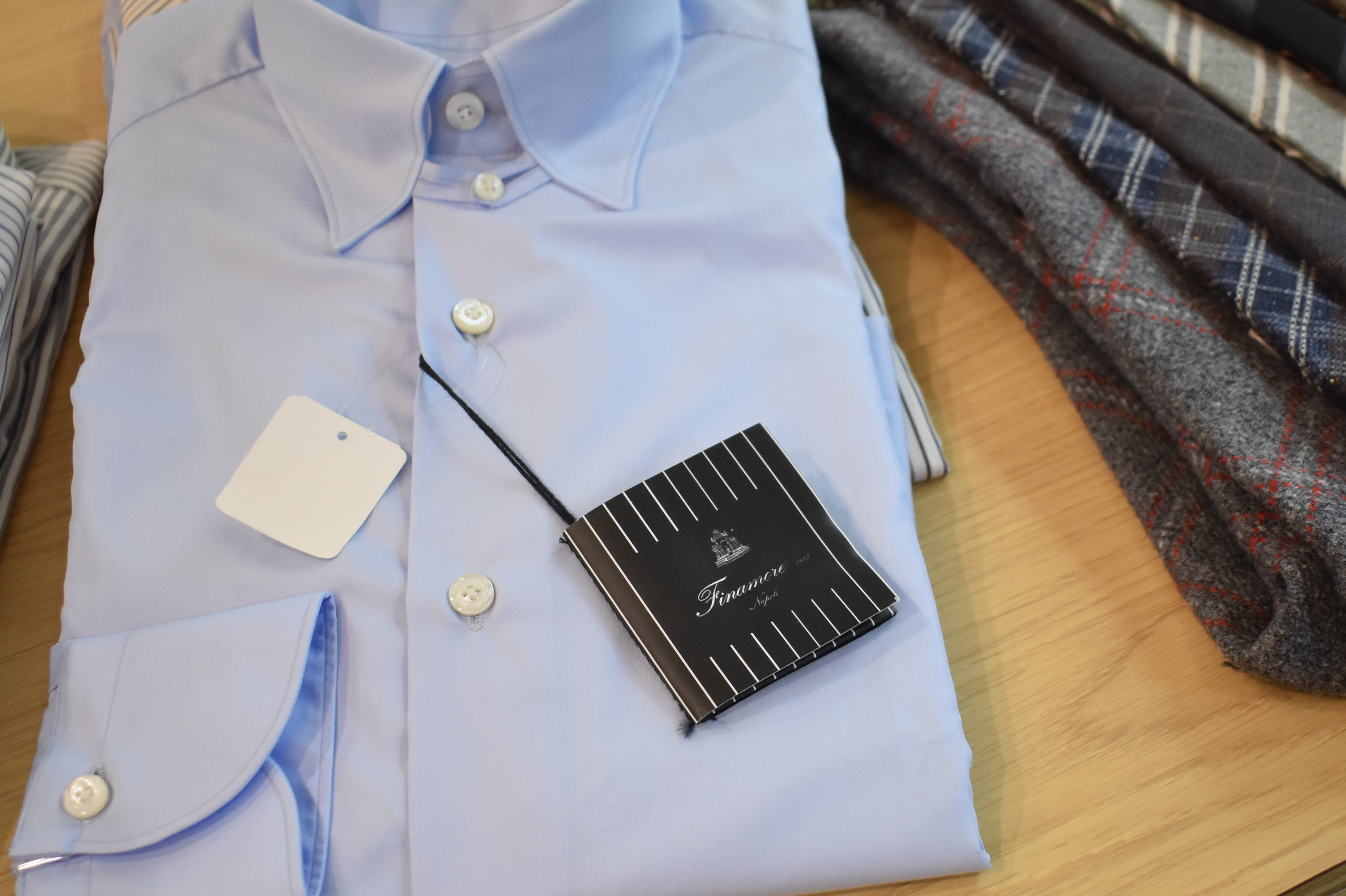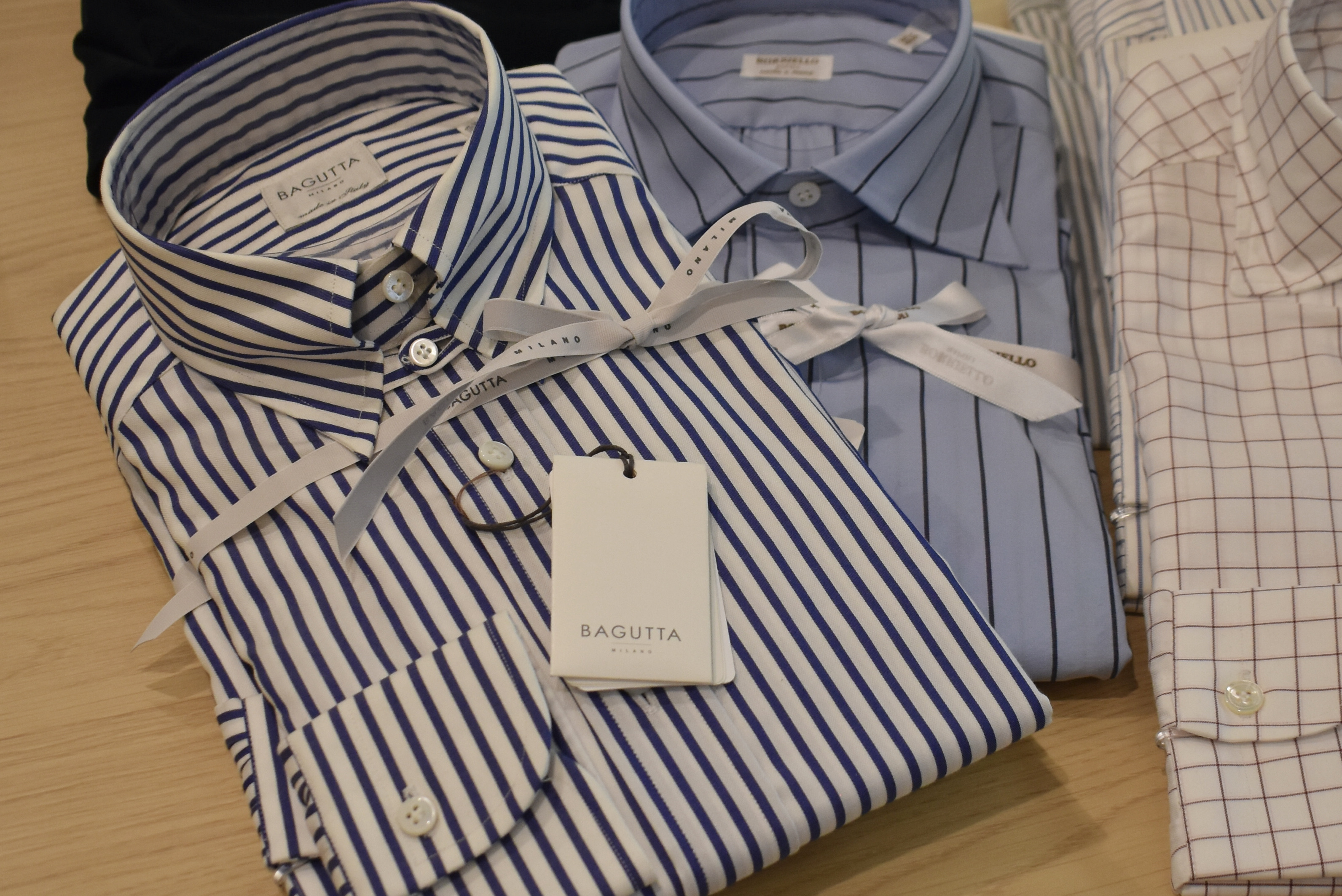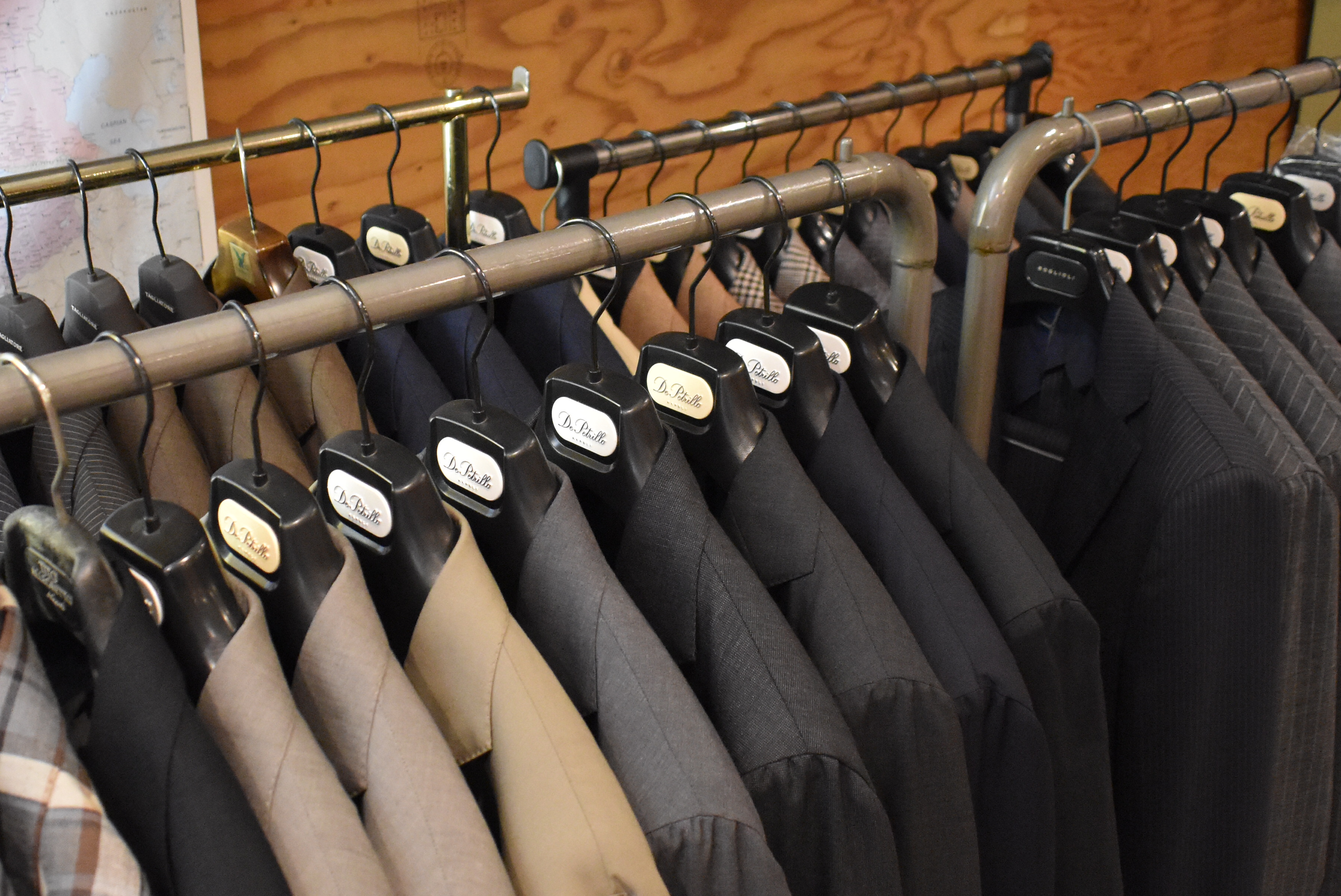 今回マガジーノに運び込んだのは、ドレスシャツ。サイズにバラつきはありますが、背後に映ったスーツと共に、色々とご案内をしたいところです。ネクタイも多くはありませんが、ご用意しています。