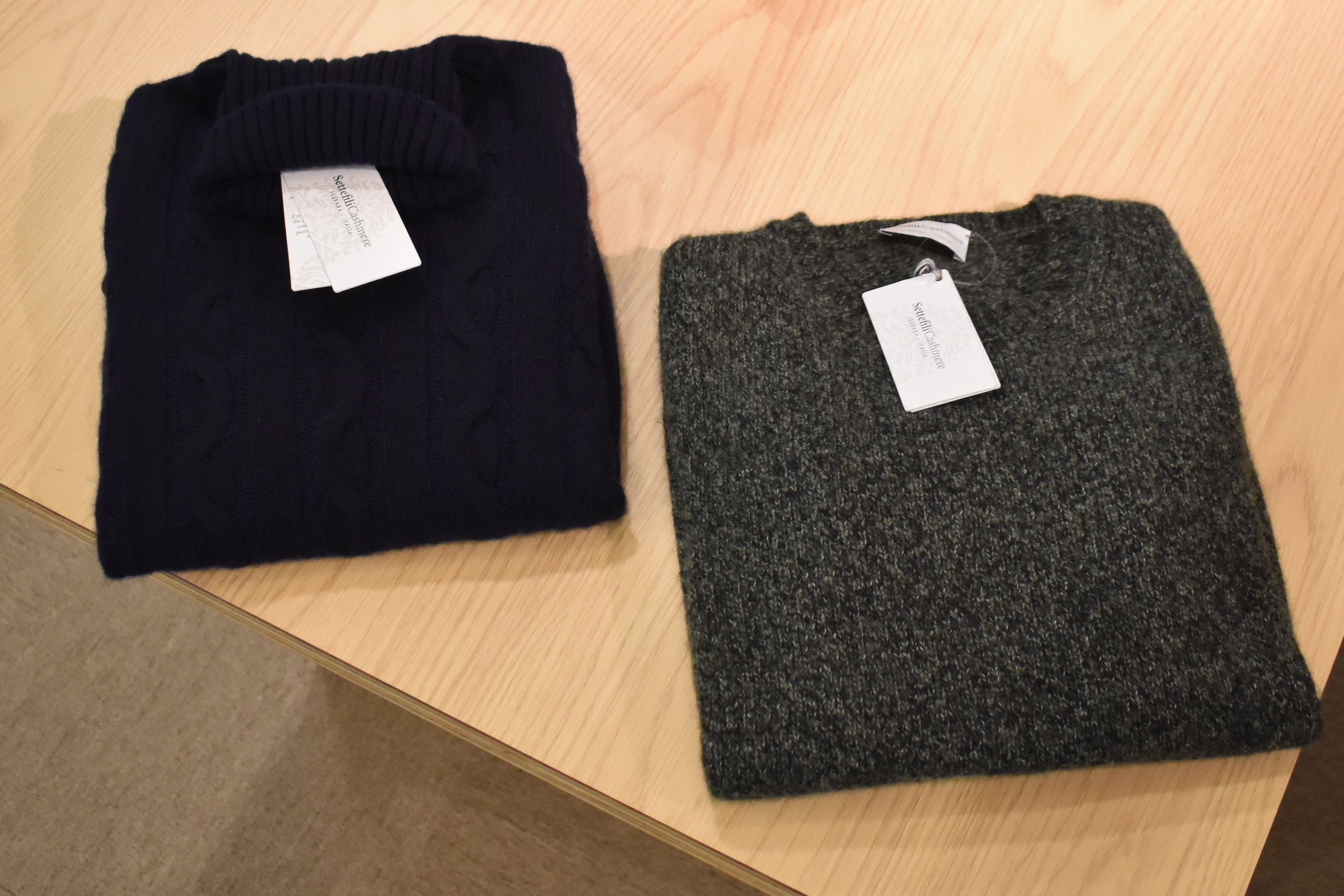 目を引くジャケットやアウターに比べ、ニット類は、まだまだこれからのようです。ただ、それだけに、在庫が充実しているのも事実。【Settefili Cashmere/セッテフィーリ カシミア】のタートルネックとメランジクルーネックですが、それぞれ、カシミア100%、カシミア・シルクと、極上の素材使いのものです。今の内に...と密かにお勧めをさせていただきます。