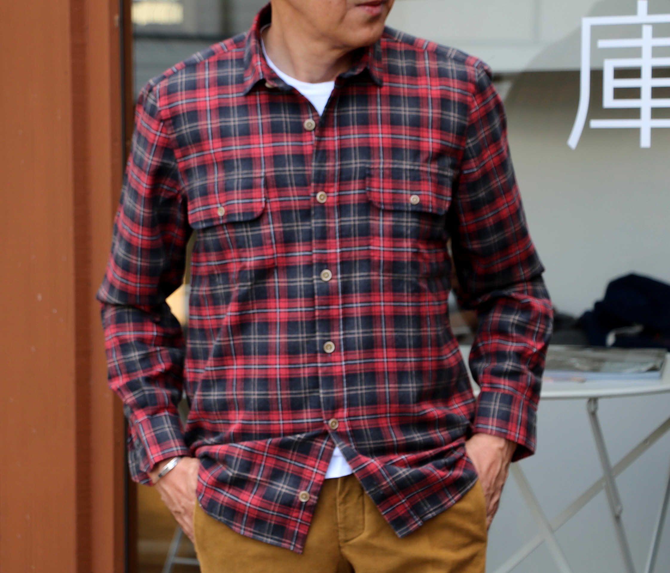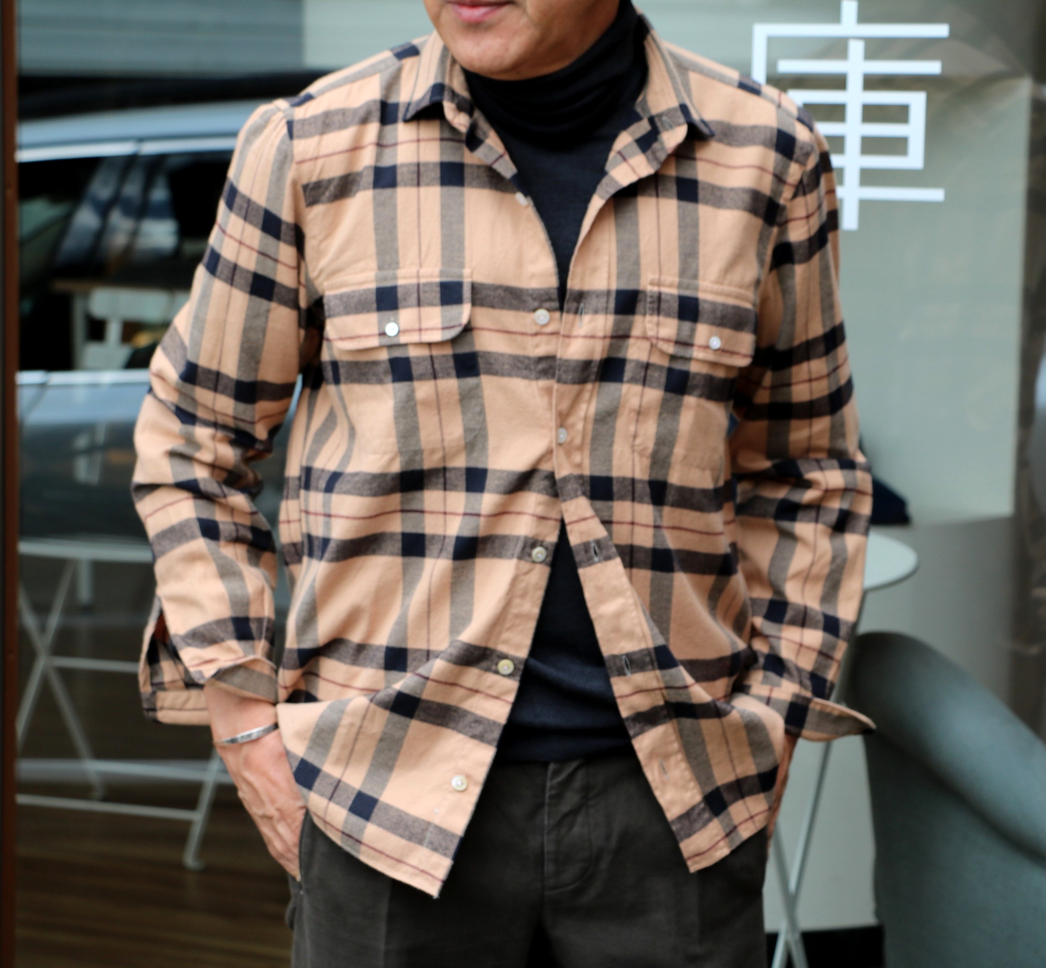 Finamoreのチェック柄ネル地ワークシャツ。秋の早い時期から着用が見込めるライトなネル地は、今の内に手に取っておくと賢い選択になるかもしれません。
