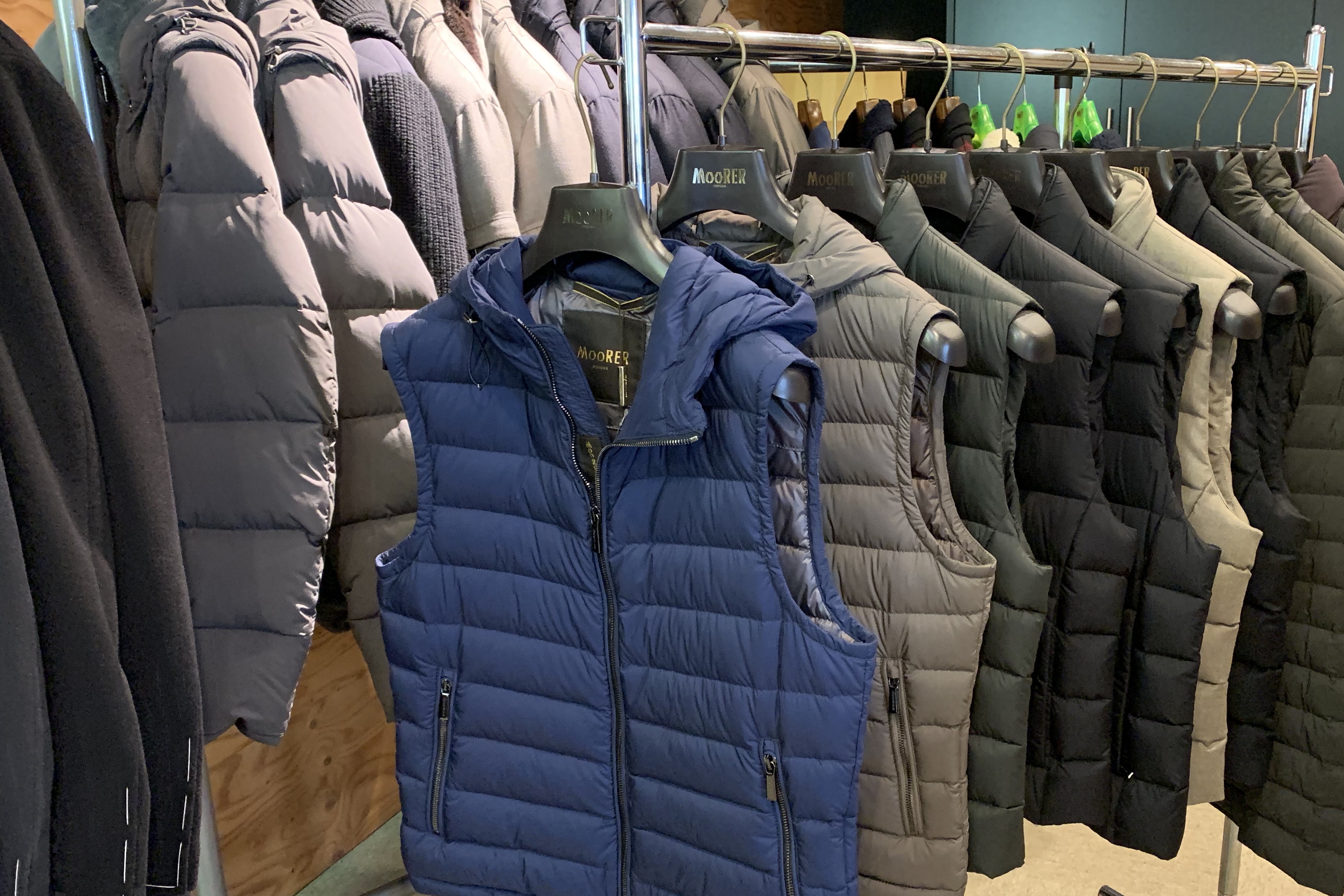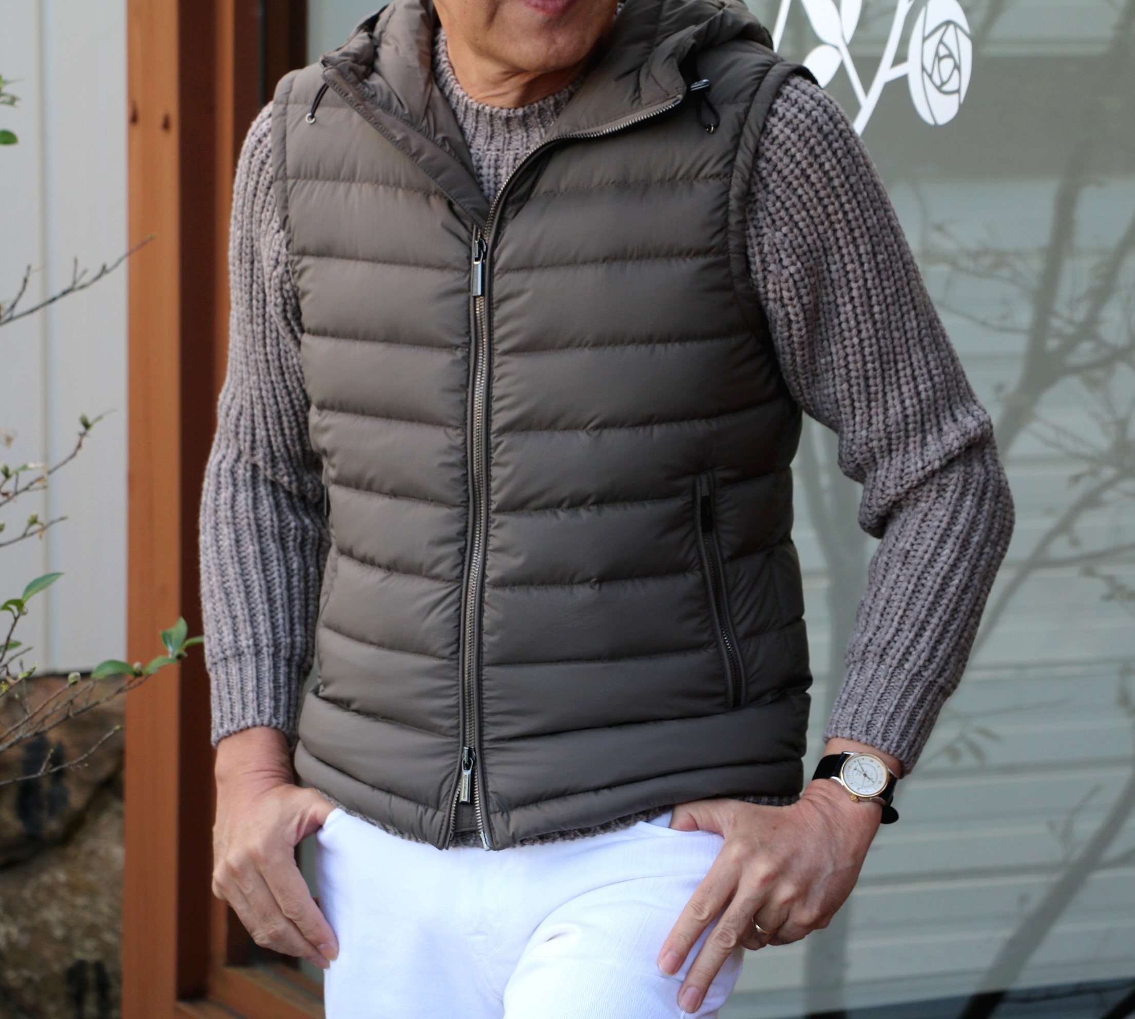 昨日ふらりとお店に立ち寄ってくださったお客様が気にされていたのは、MooRERのダウンベスト。ダウンの量は程よく軽量で、着丈の短いコンパクトなフォルム。こちらも早い時期から使い回せるアイテムなだけに、今ご注目をいただくと良いのではないでしょうか。