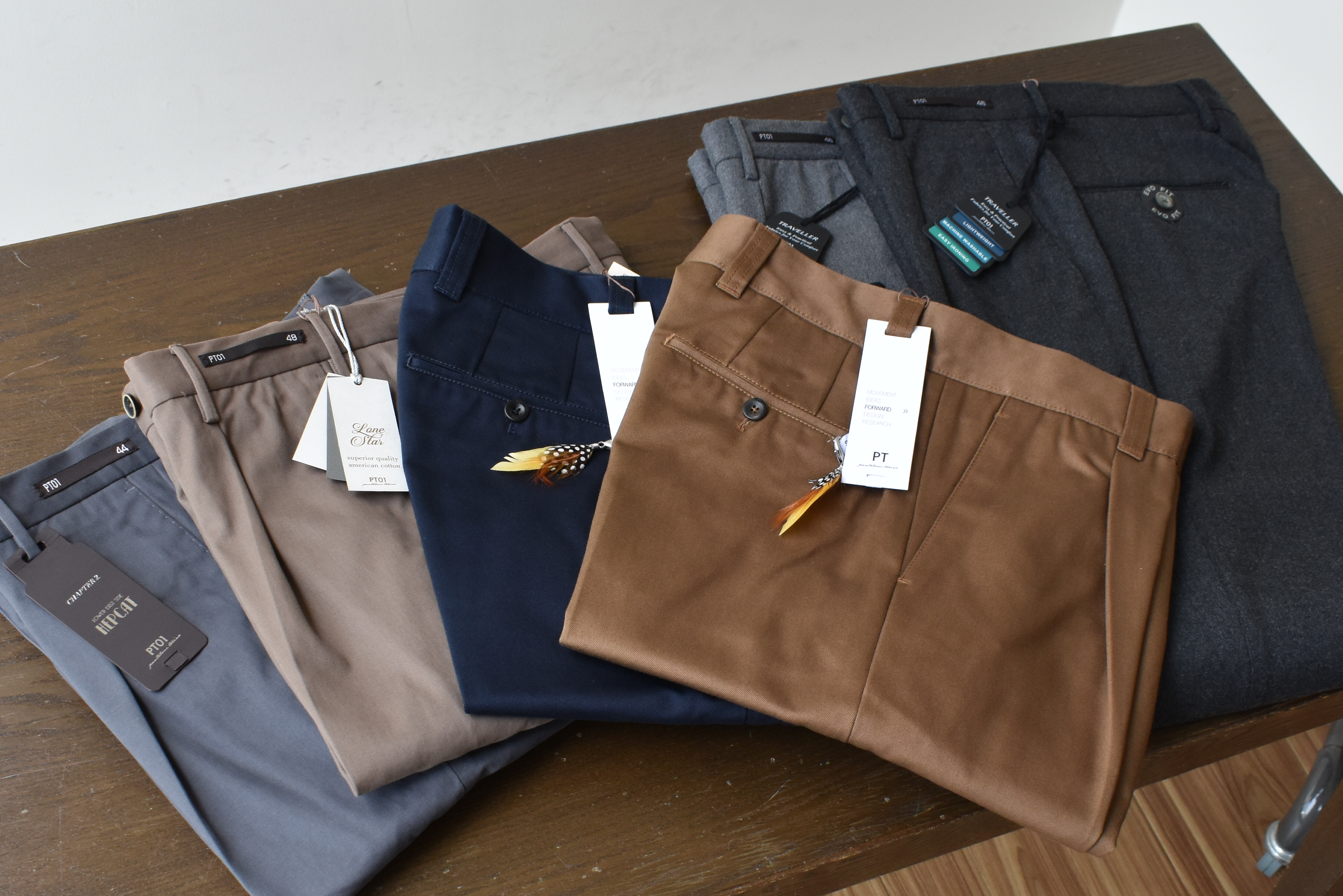 グローリーガイで人気No.1(私調べ)のパンツと言えば、【PT/ピーティー】。多少バラつきはありますが、ウールからコットン、細身からストレートまで、多様なバリエーションが揃っており、一見の価値ありです。