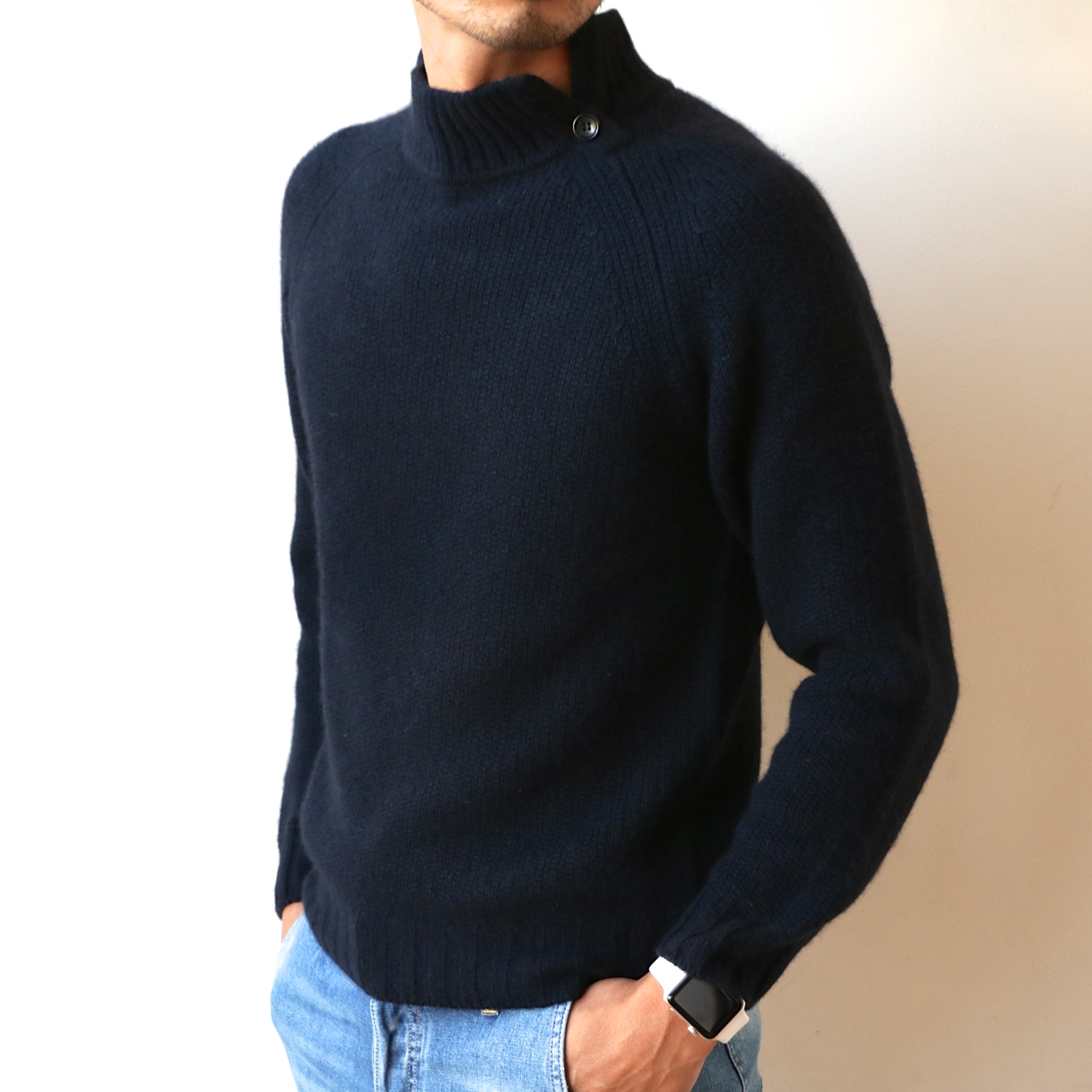 冒頭のネイビーに、ブラックです。端正な雰囲気のハイゲージニット、厚みのあるミドルゲージニット、次いでこんなエアリーなニットがワードローブにあると、必ずや重宝するはず。冬の室内着としても、大いに活躍するでしょう。