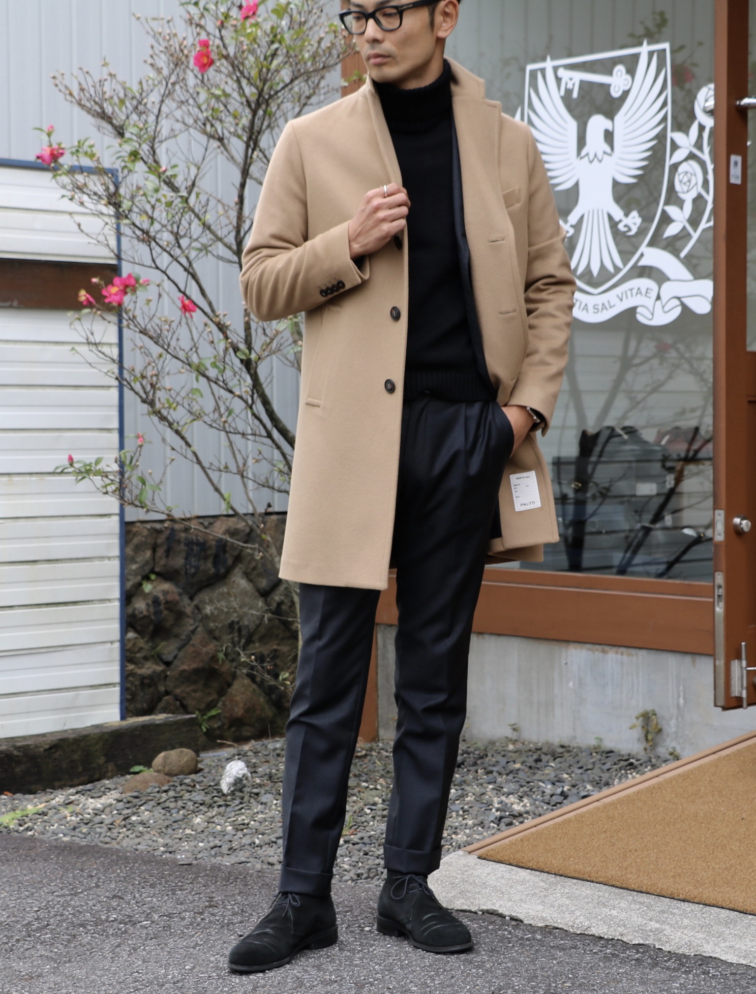 その代表格となるのが、ウールのコート。同じく【PALTÒ/パルト】から、雰囲気は全く違いますが、キャメルのシングルコートをご用意しています。ウール素材の端正さと、控えめながらも計算された立体的なフォルムで、着こなしに差を生み出すはず。直に公開予定の動画・SUGURU STORYにも、終盤ですが、このコートを着て登場しています。