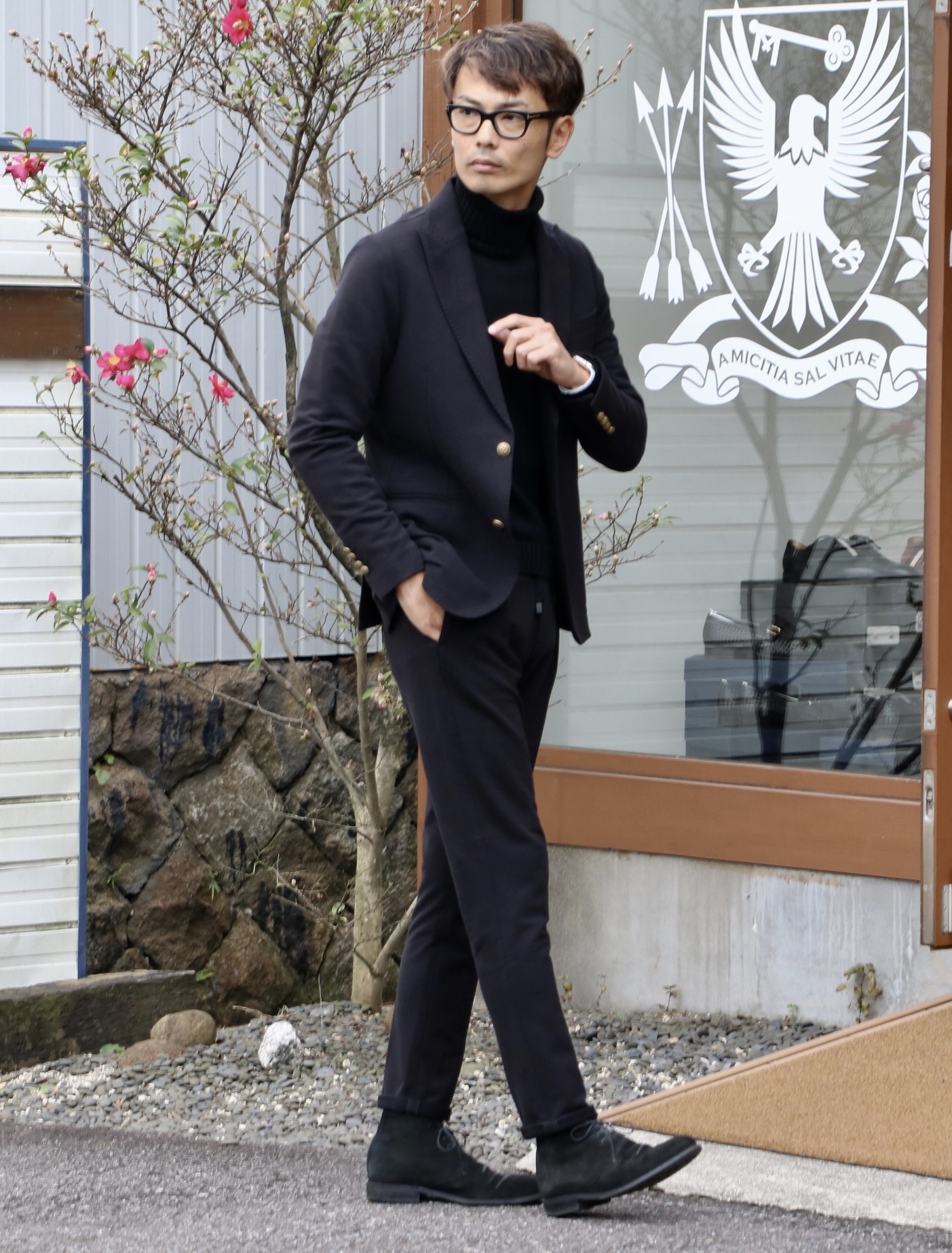 ニット(Drumohr)やスニーカー(Pantofola d'Oro)などとラフに合わせるだけで、十分です。間違いなく使いやすいブラックに加え、
