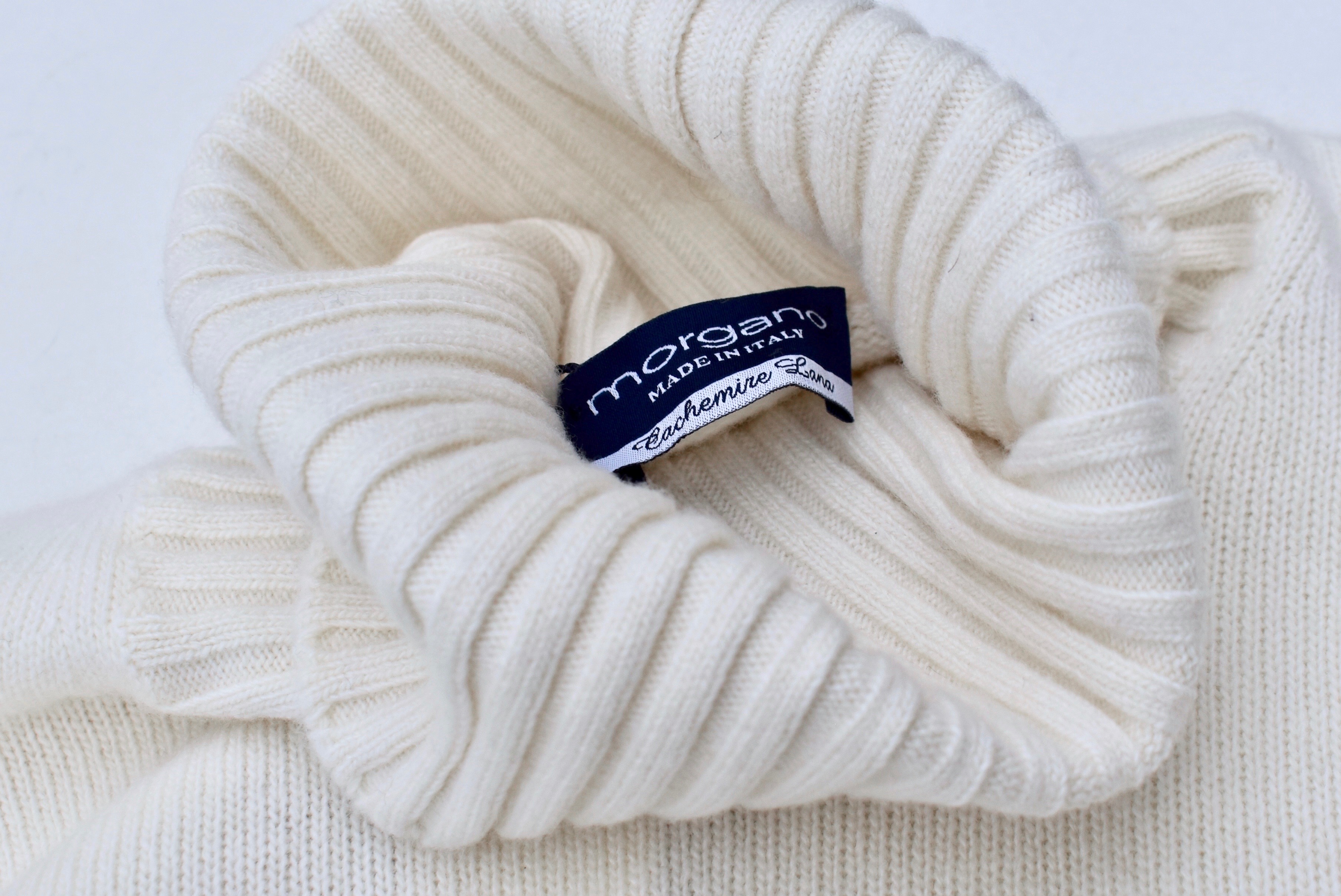 これなんてどうでしょう。morgano/モルガーノのタートルネック。ウールにカシミアを10%ブレンドした素材感は、ふんわりして軽やか。ミドルゲージのニットの中では、比較的薄め・軽めの7ゲージということも、この素材感にピッタリ。ネックや裾、袖口のリブ編みが生み出す雰囲気も良く、かなり使い勝手の良いニットとなりそうです。