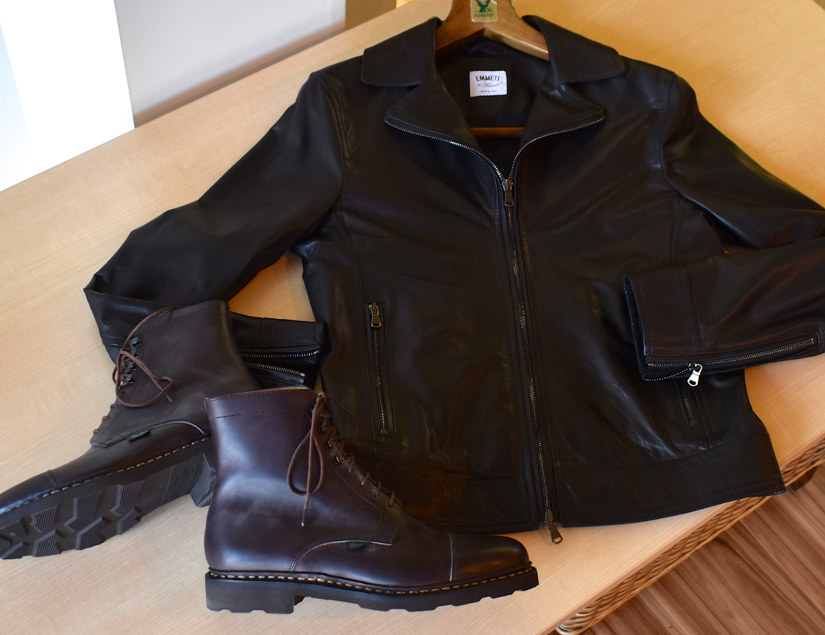 【EMMETI/エンメティ】の新作レザーお披露目会に、【Paraboot/パラブーツ】のブーツフェアも同時開催中です。是非、併せてご覧ください。