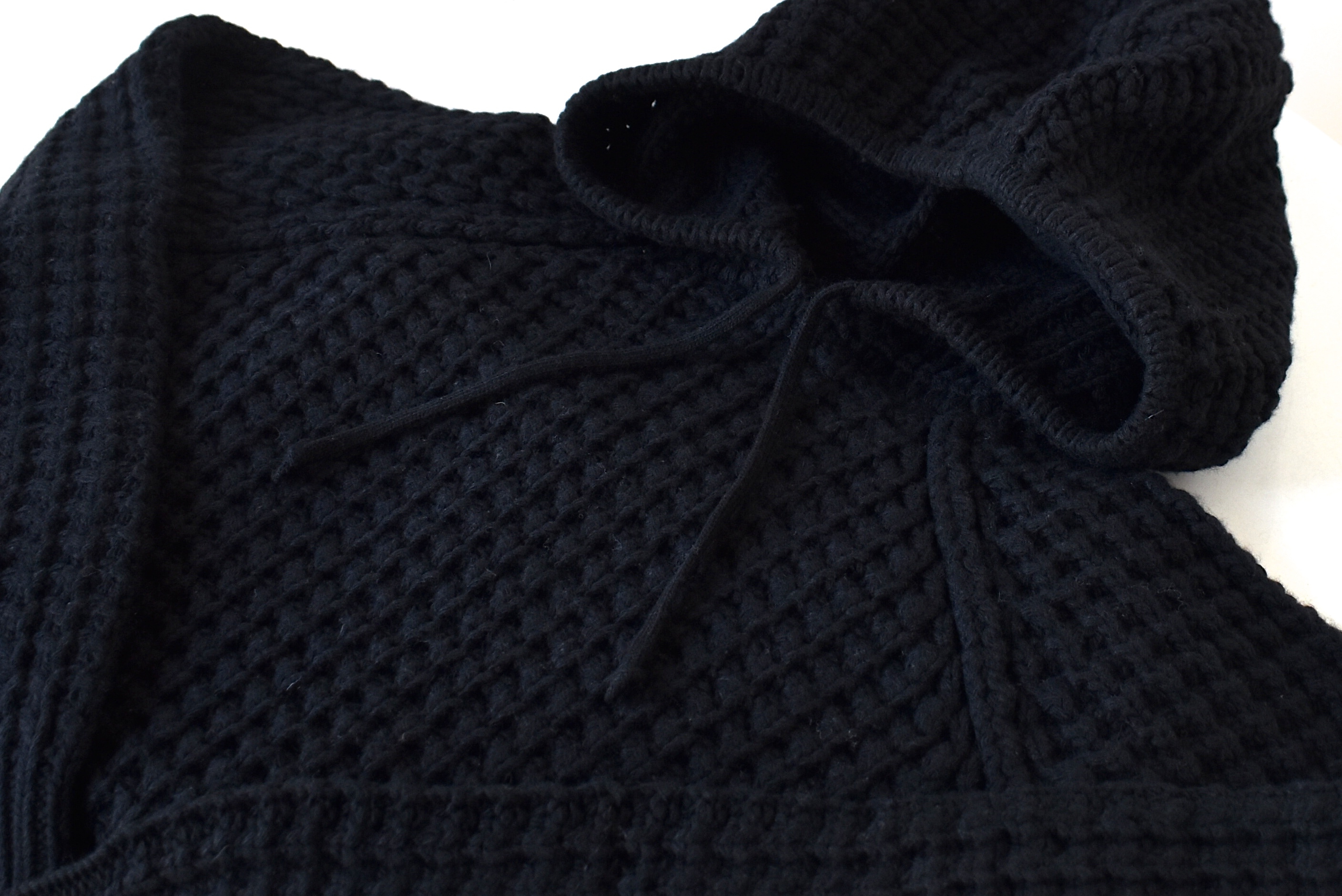 色違いは、クールなブラック。同じ編み感でも色味が濃くなれば、随分と表情が変わります。こちらも、お勧めでした。