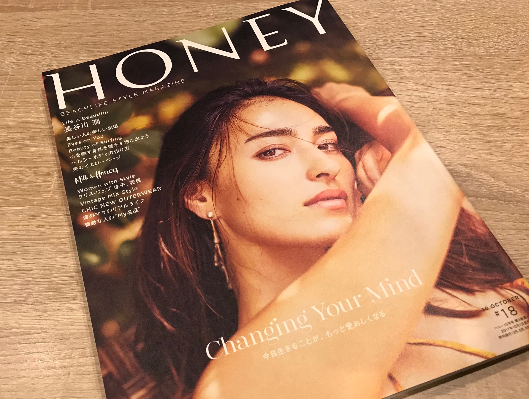 お洒落な雑誌を見つけました。と言っても女性誌ですが..。『HONEY』という名前のこの雑誌、サブタイトルには、BEACHLIFE STYLE MAGAZINEとあります。洋服だけに留まらないライフスタイルの記事が多く、興味をそそられました。