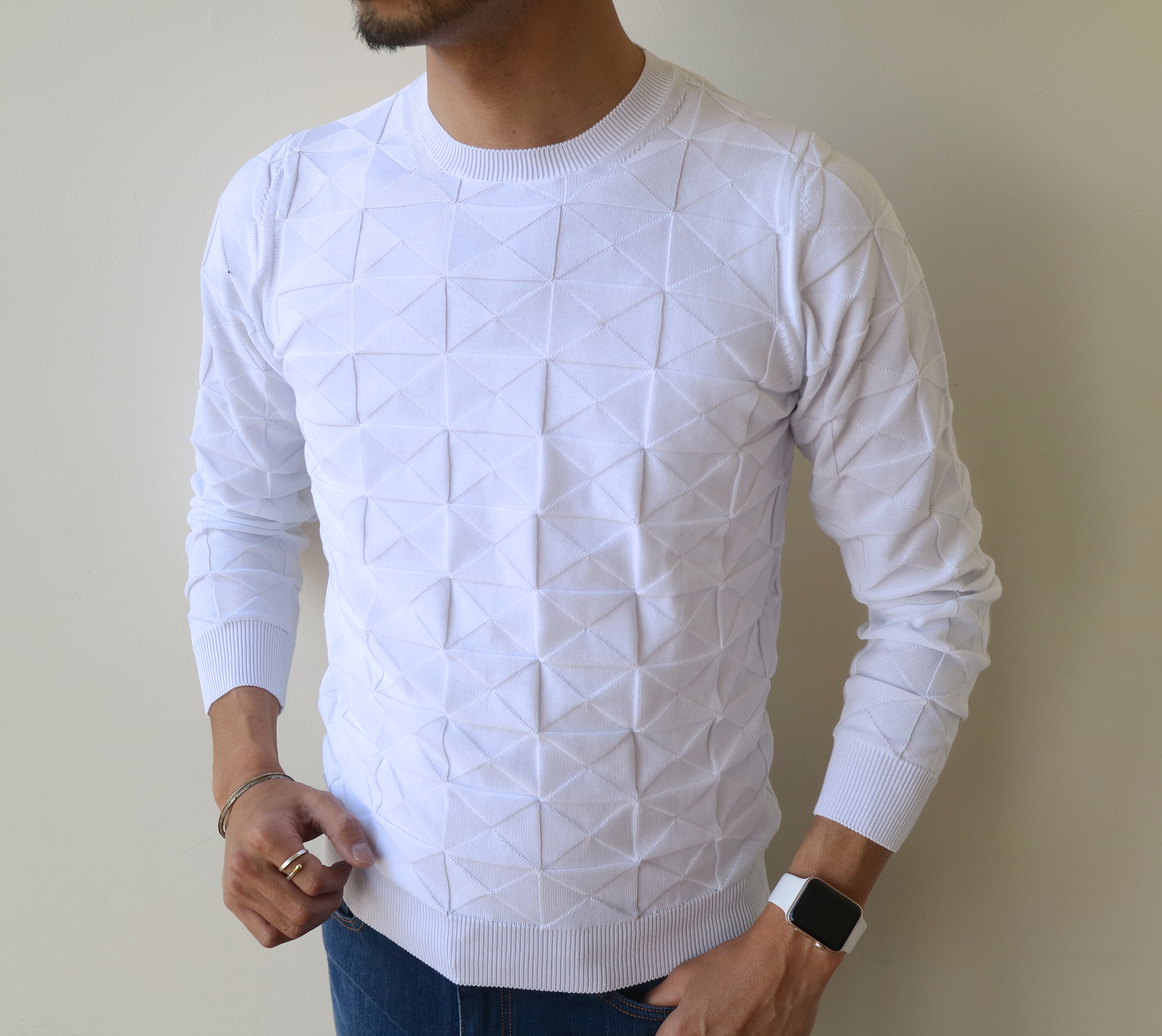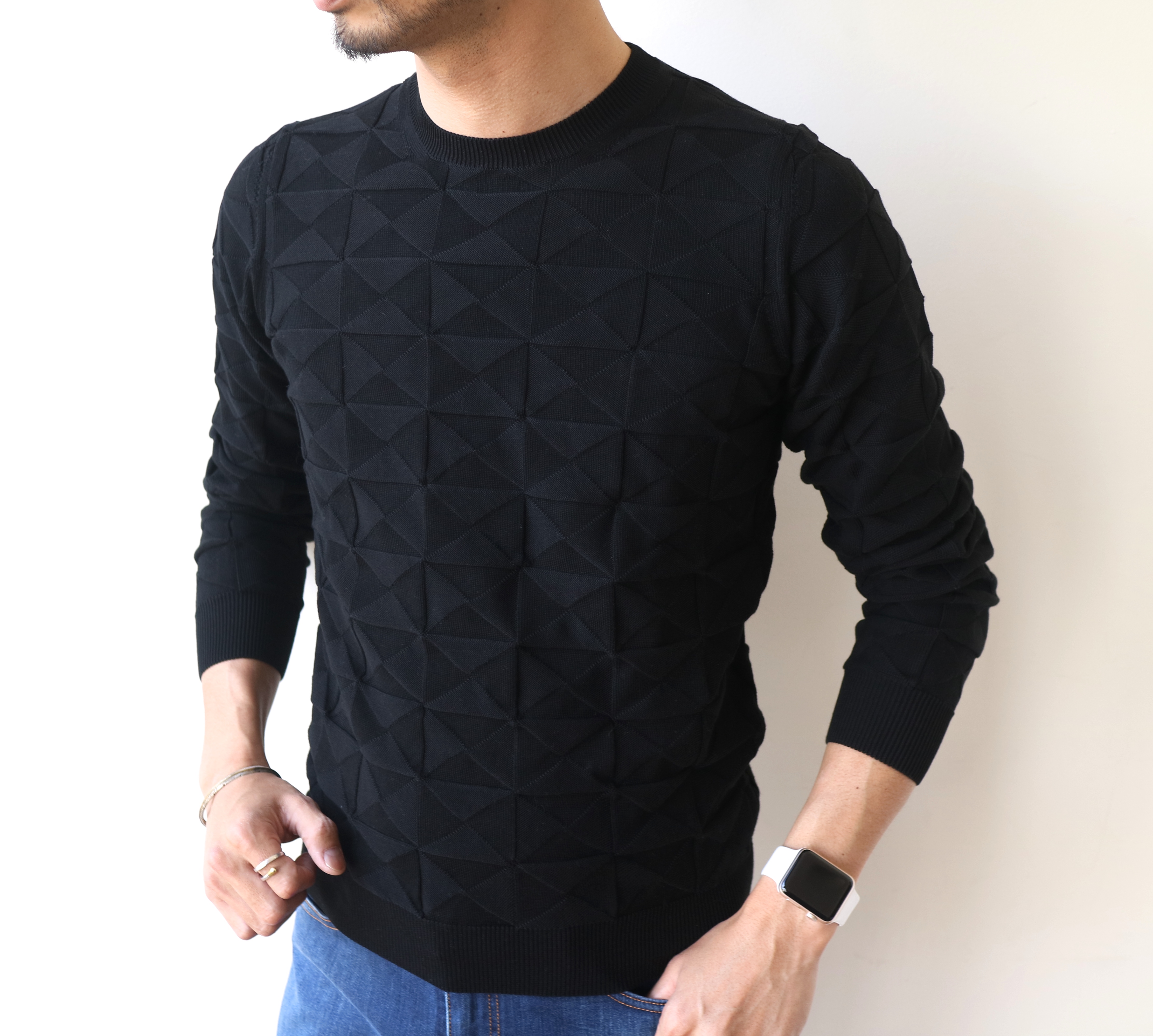 MODEL:「8P321G」トライアングル柄 コットンクルーネックニット