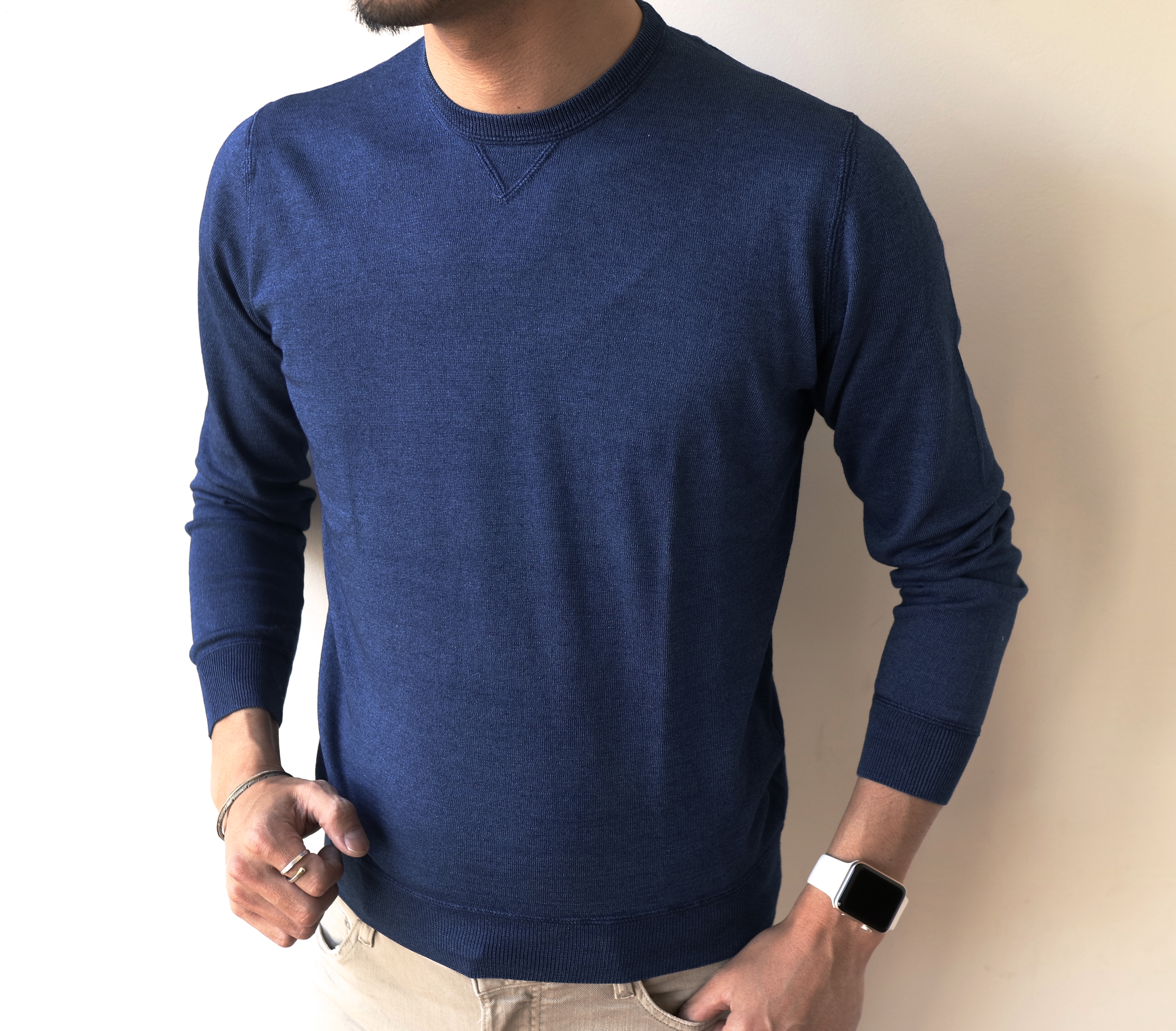 MODEL:「8P621G」 コットン インディゴクルーネックニット