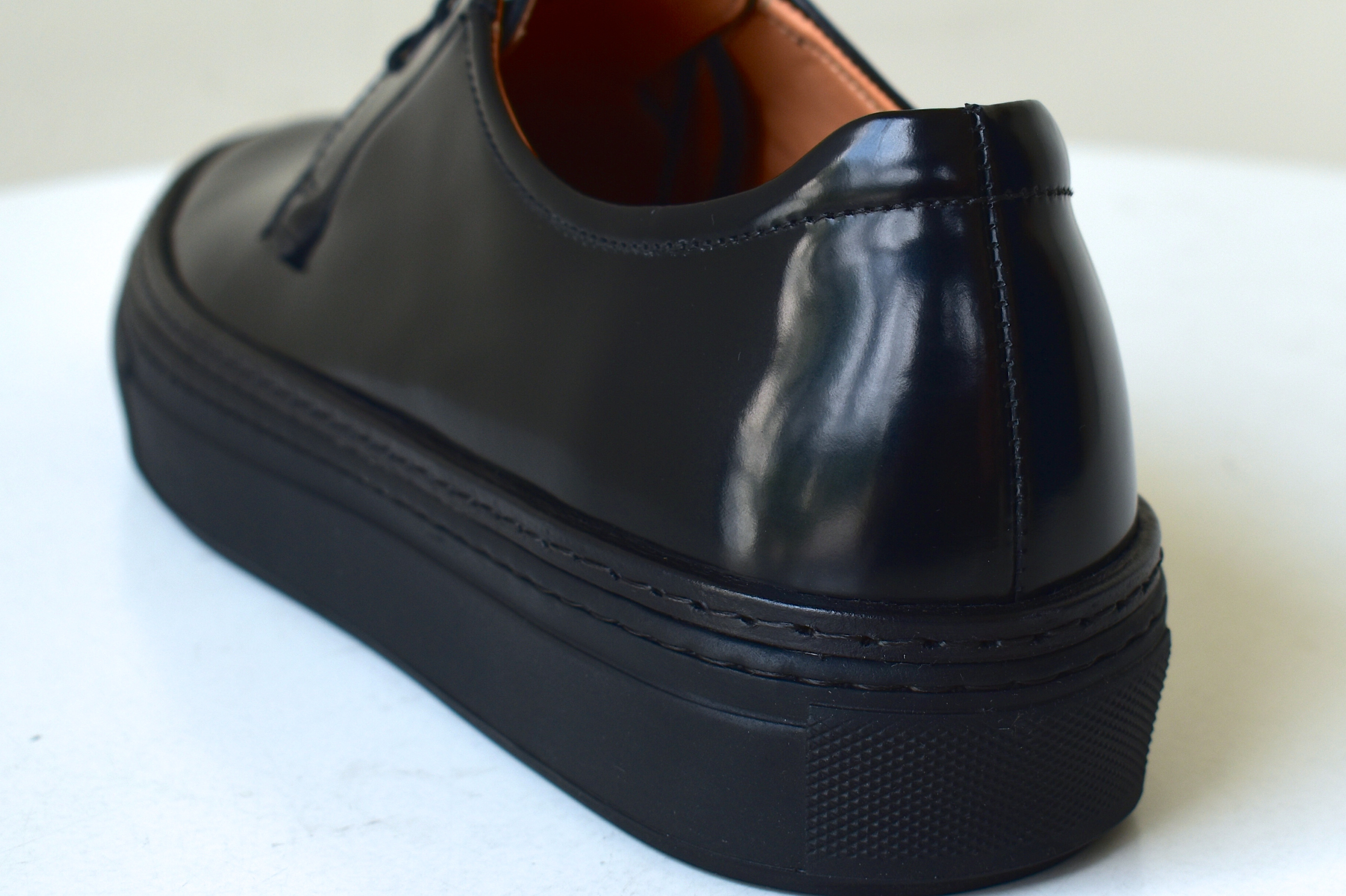 ドレススニーカーを1型、ご用意してみました。革靴さながらの見た目ですが、その実プレーントゥ型のドレススニーカーです。