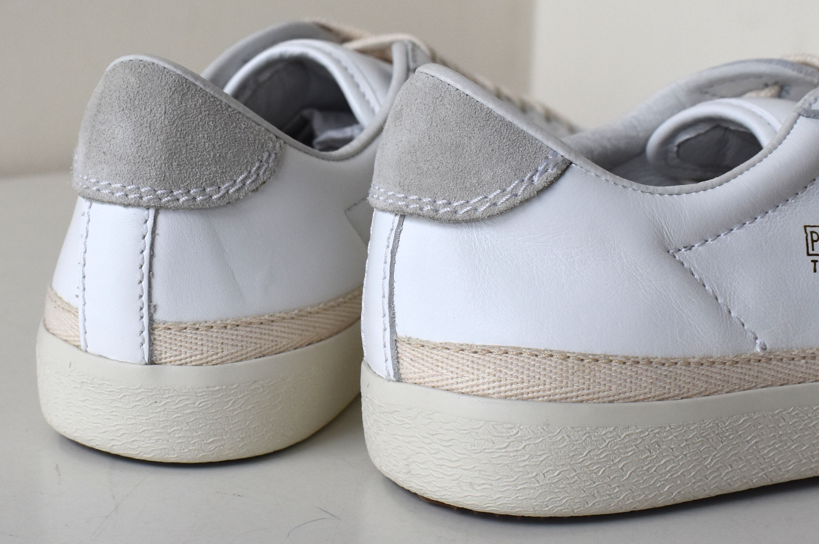 レザーの質感で良さげなものを見つけたら、あとは履きやすいものを選べばパーフェクト。履きやすいとは、足の形は個人差が大きいので一概には言えませんが、足をしっかりホールドしてくれて、履いていて疲れにくい...そんなイメージも一つかと。パントは穿き口が狭いデザインで、足をしっかりホールドします。ライニング(裏地)やインソールもオールレザーですので、繊細に足を包み込みます。先に言及したレザーの柔らかさと相まって、とても履きやすいスニーカーに仕上がっています。是非、店頭で足を入れてみてください。