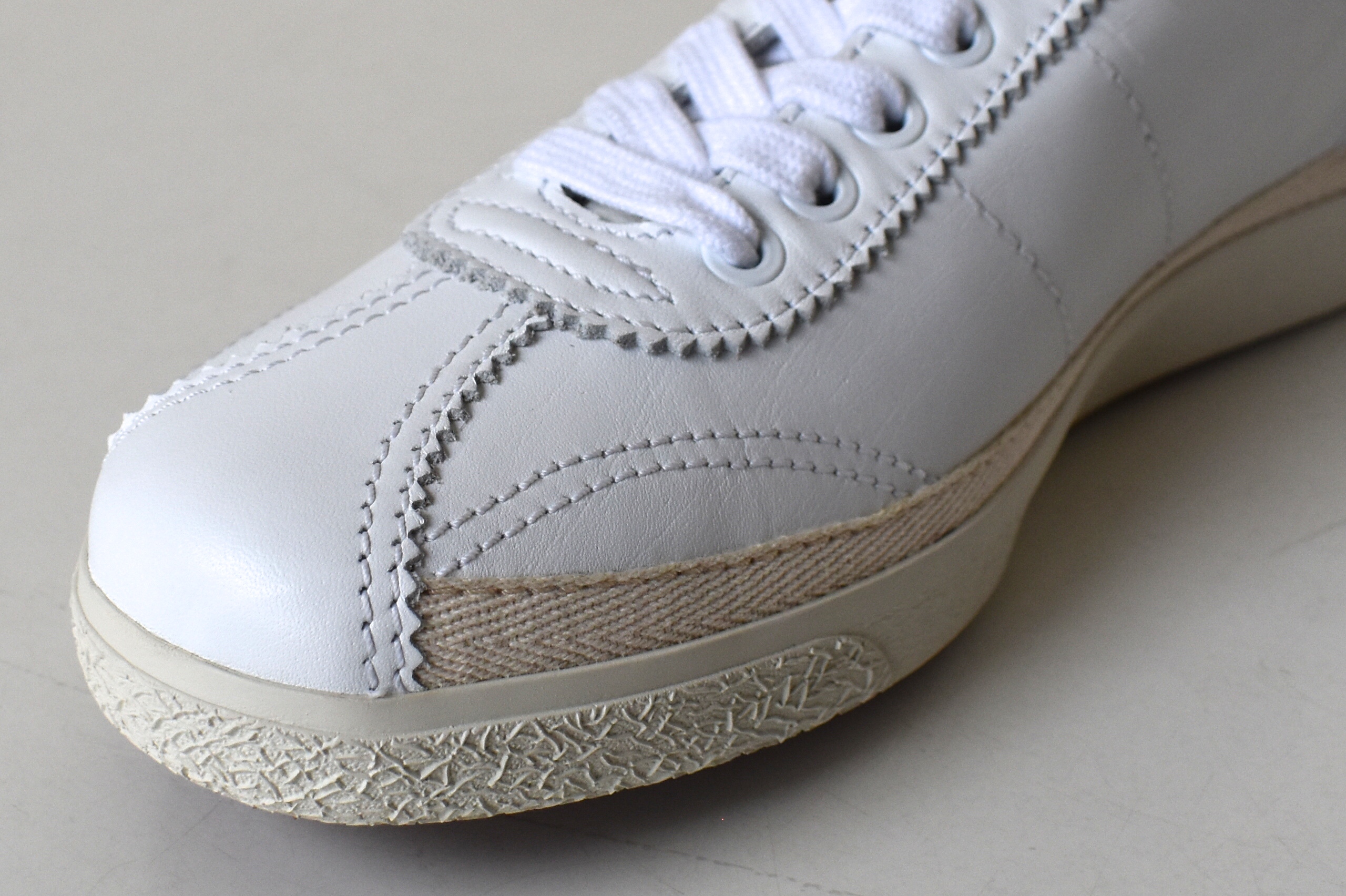 ミニマルなデザインに、シンプルなステッチ、クリアなホワイト。今季の展示会で、真っ先に目に留まったモデルです。