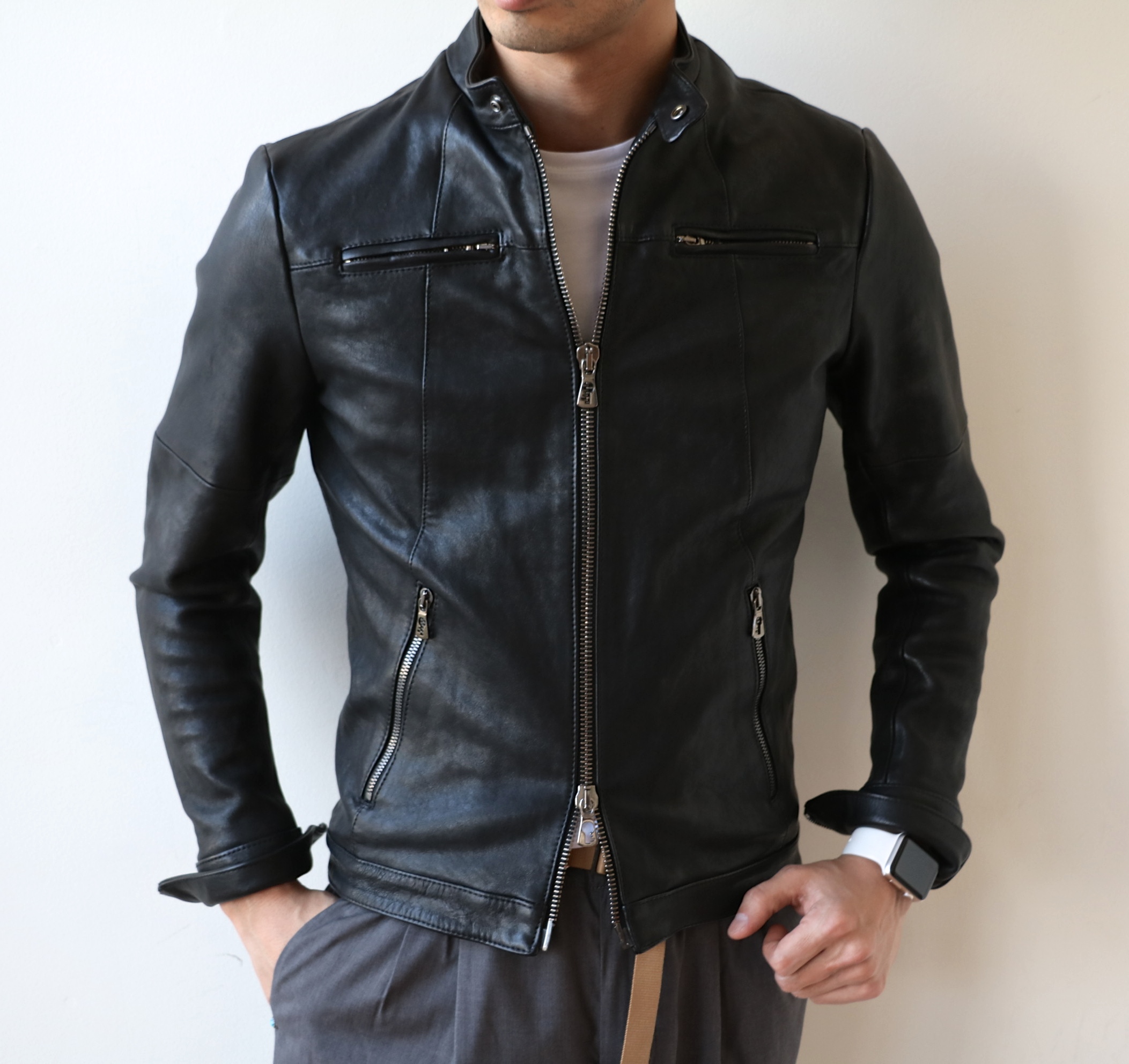 MODEL:「LEONARDO」ラムレザー シングルライダースジャケット
