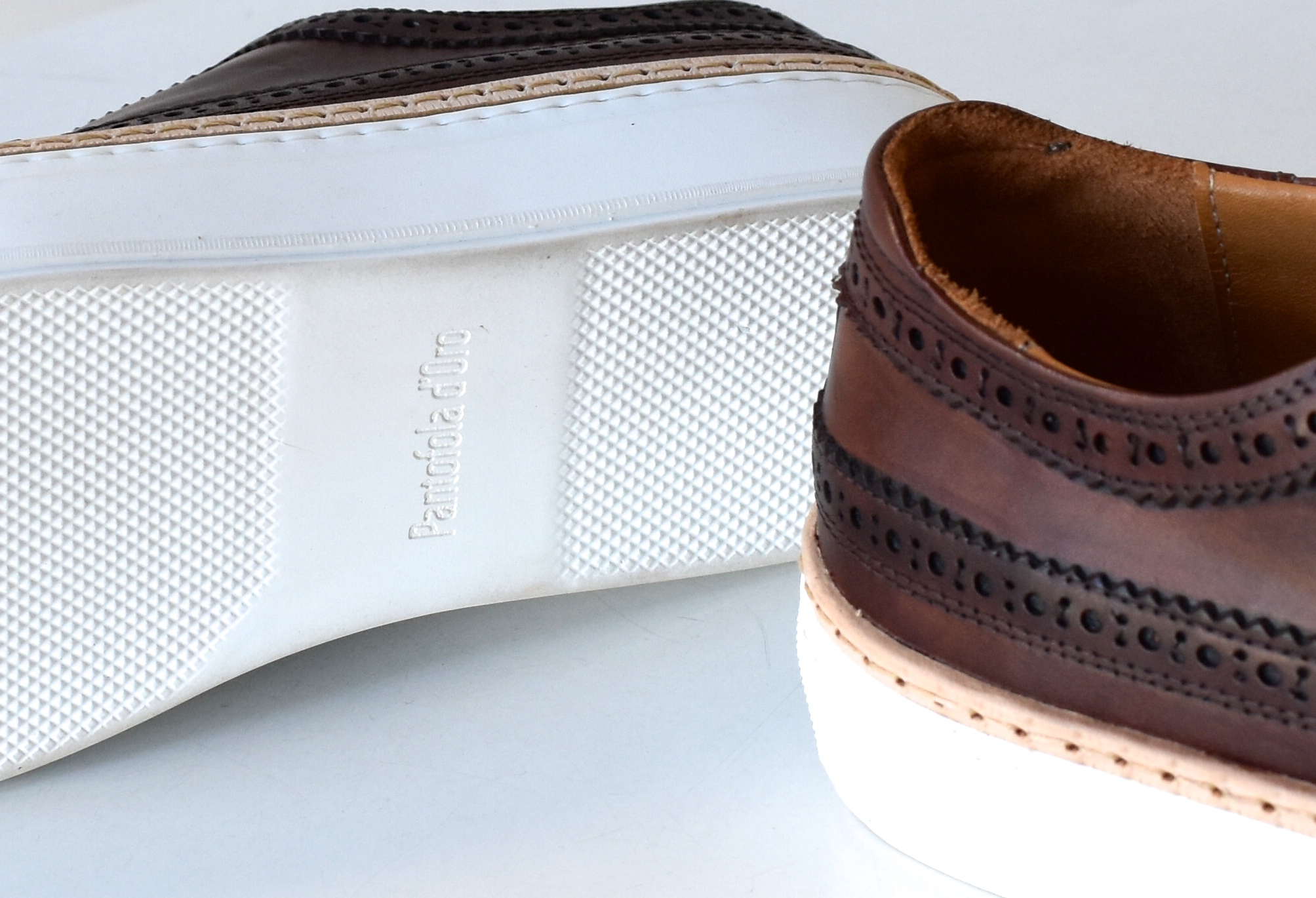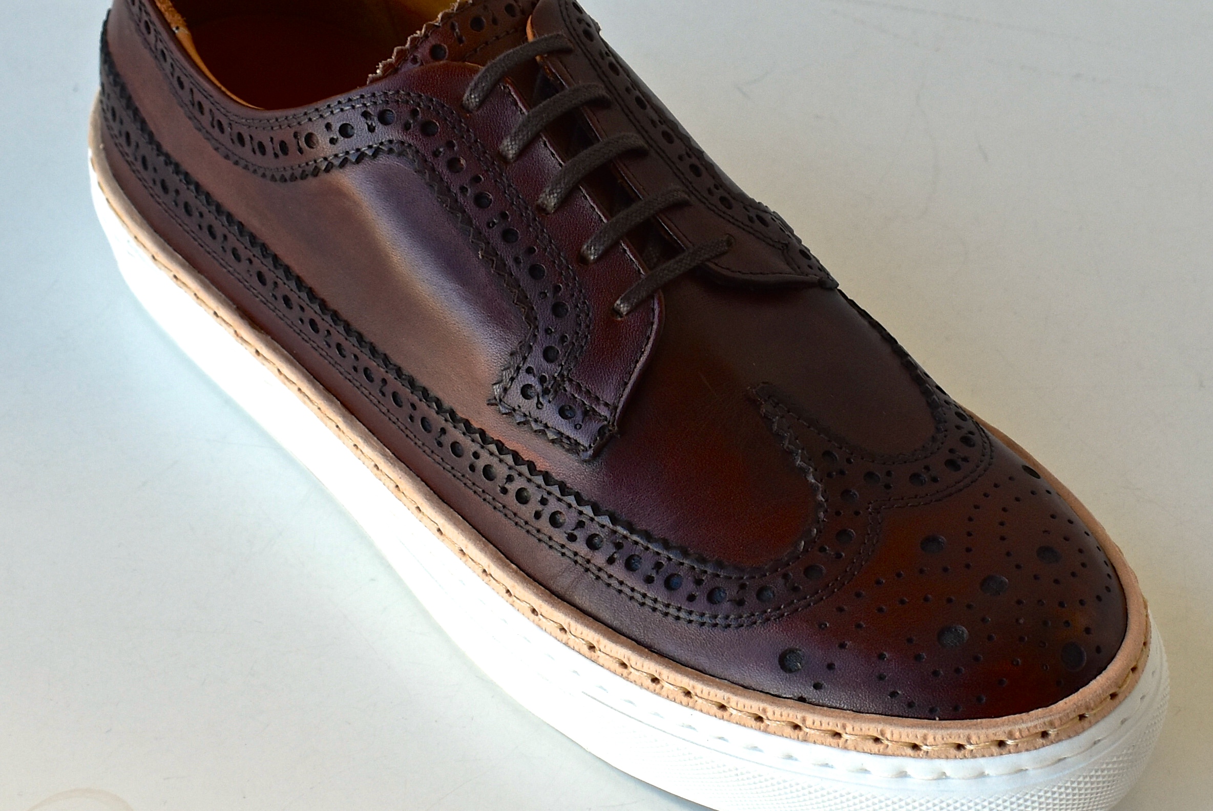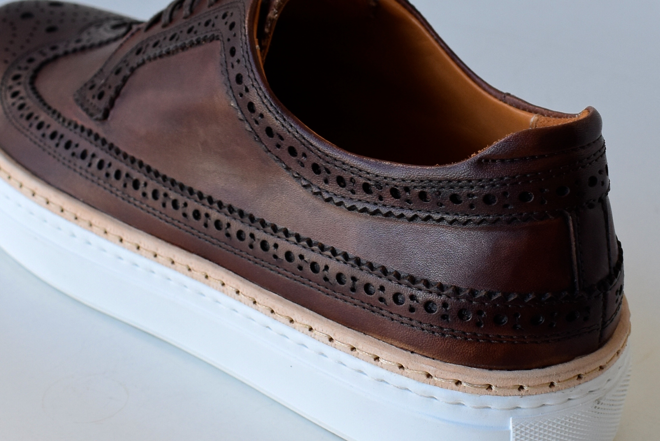 MODEL:「WEL2」パティーヌレザーウイングチップ×ホワイトソールスニーカー