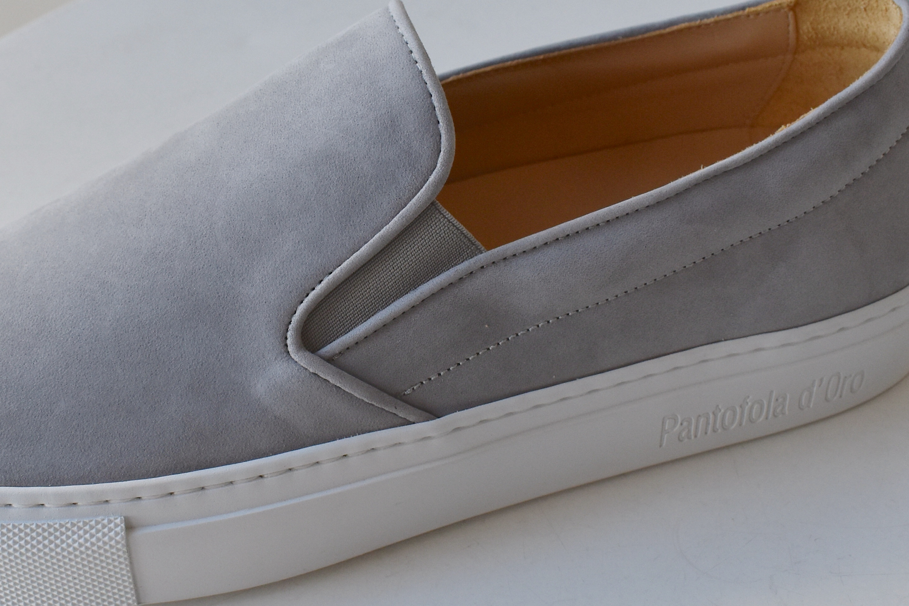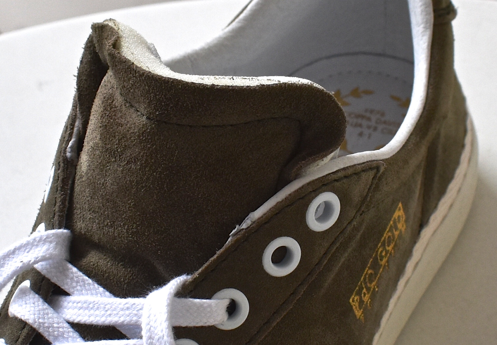 続いて、スニーカーを1型ご紹介しましょう。今か今かと出番を待っていたのは、【Pantofola d'Oro/パントフォラ ドーロ】のスエードスニーカー。以前ポップアップイベントをした際、次は絶対コレをやろうと決めていた1足です。