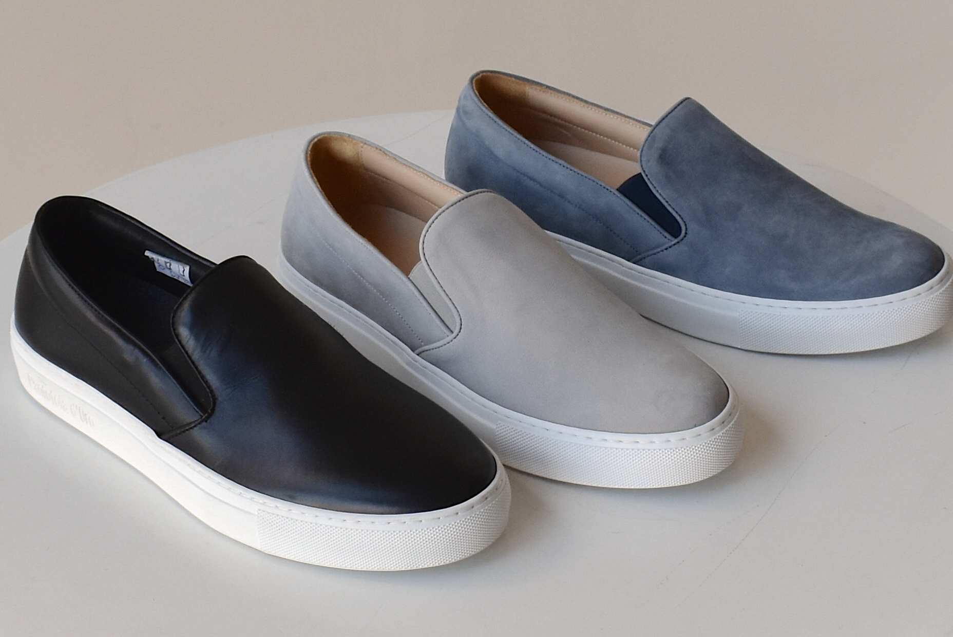 今年評判を呼んだ、レザーのスリッポン。至ってシンプルな見た目ですが、足を包み込むような履き心地は、特筆すべきものがあります。やっぱり一度、足を通しにお越しになってください。